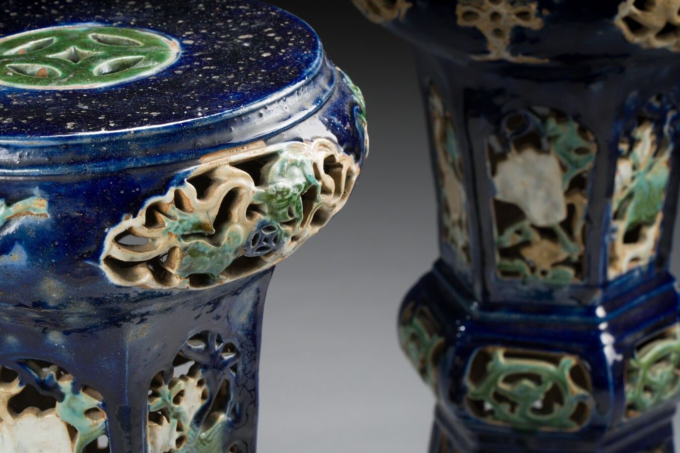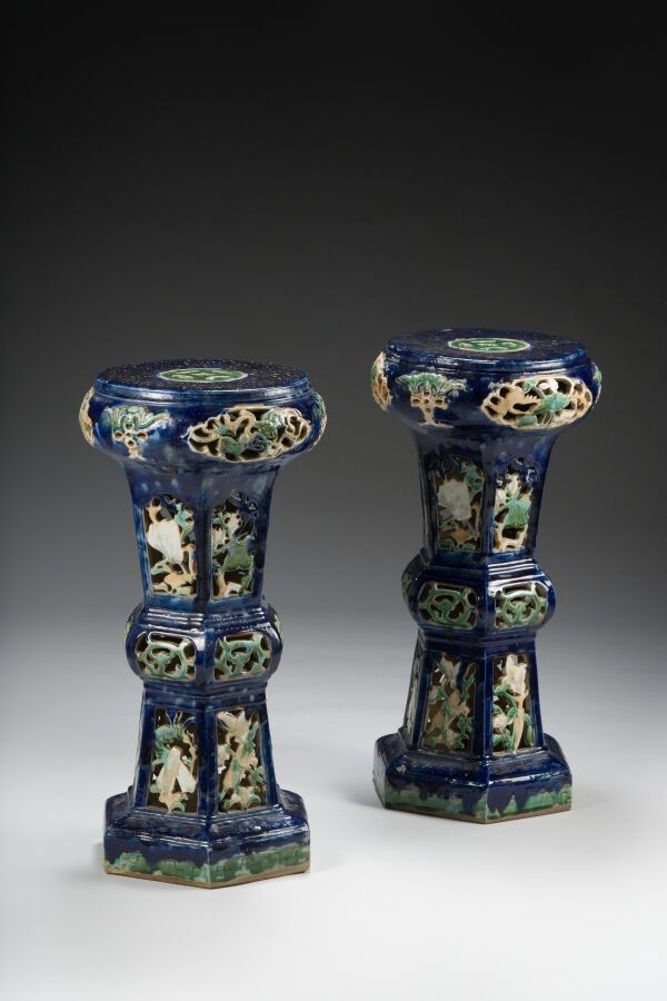 192. CHINA Pair of openwork stoneware saddles decorated with…