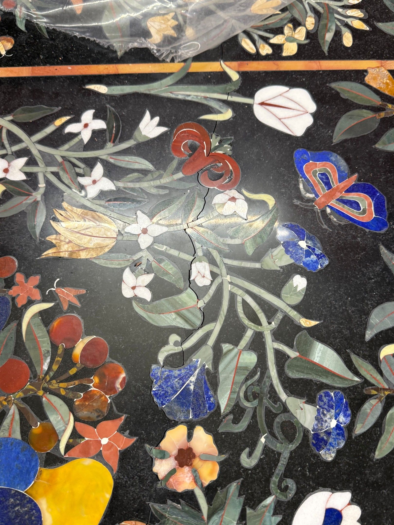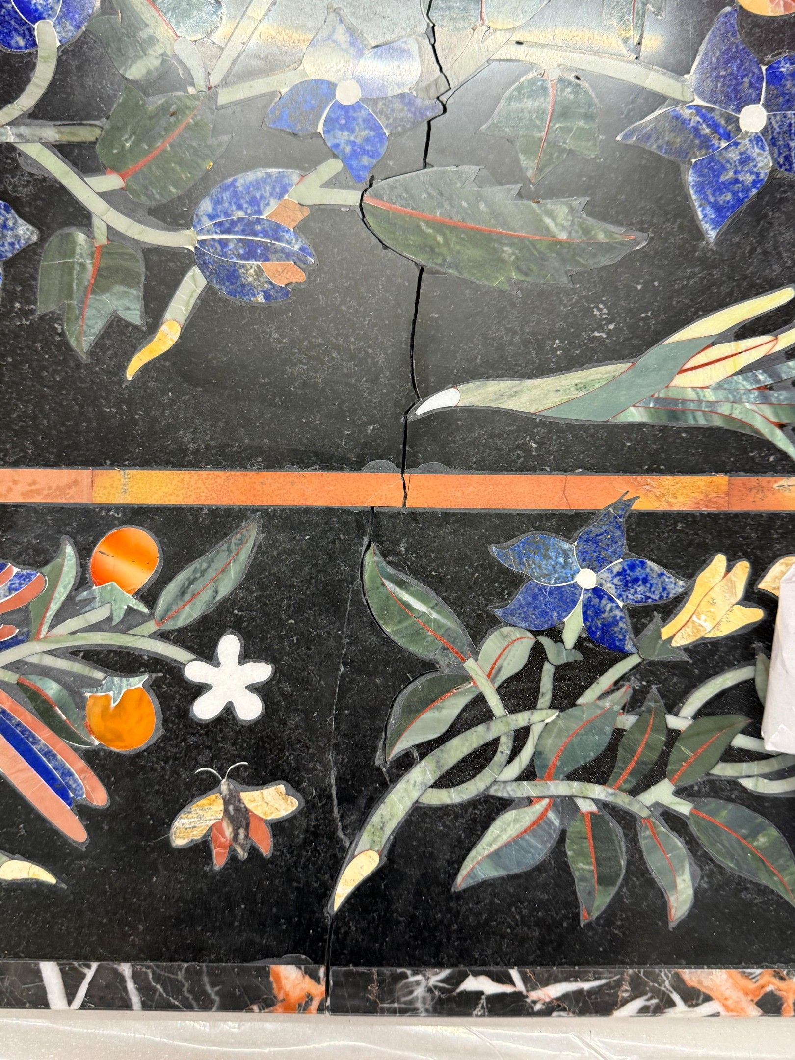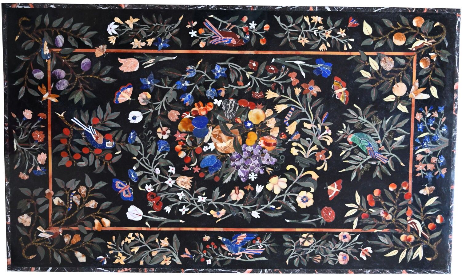 241. Rectangular tray in marquetry of hard stones