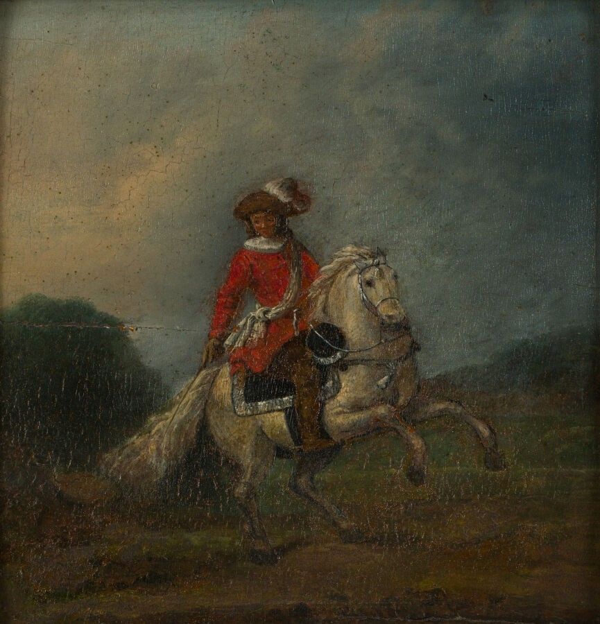 Portrait of a Rider on Horseback at a Halt in a Landscape