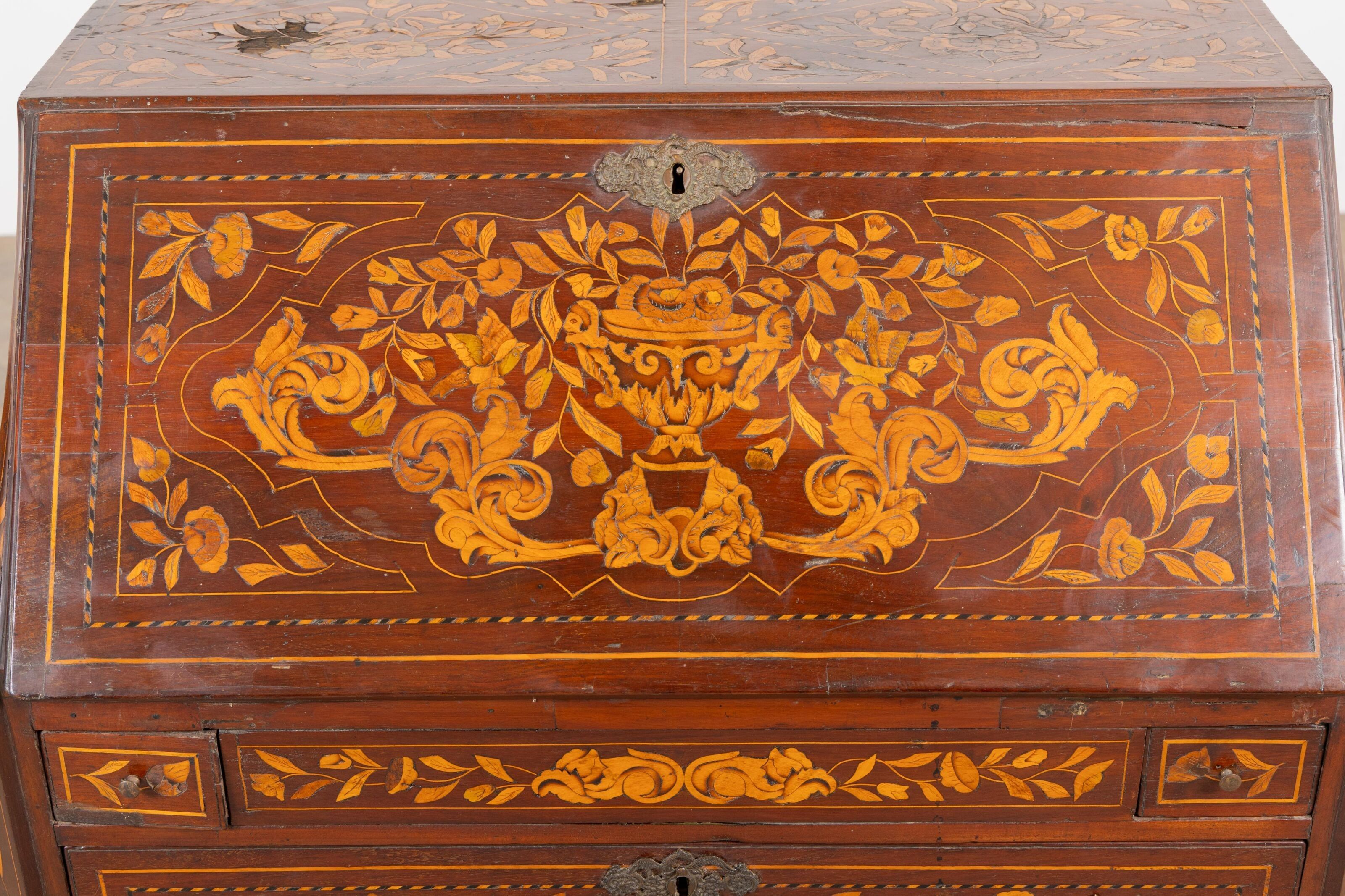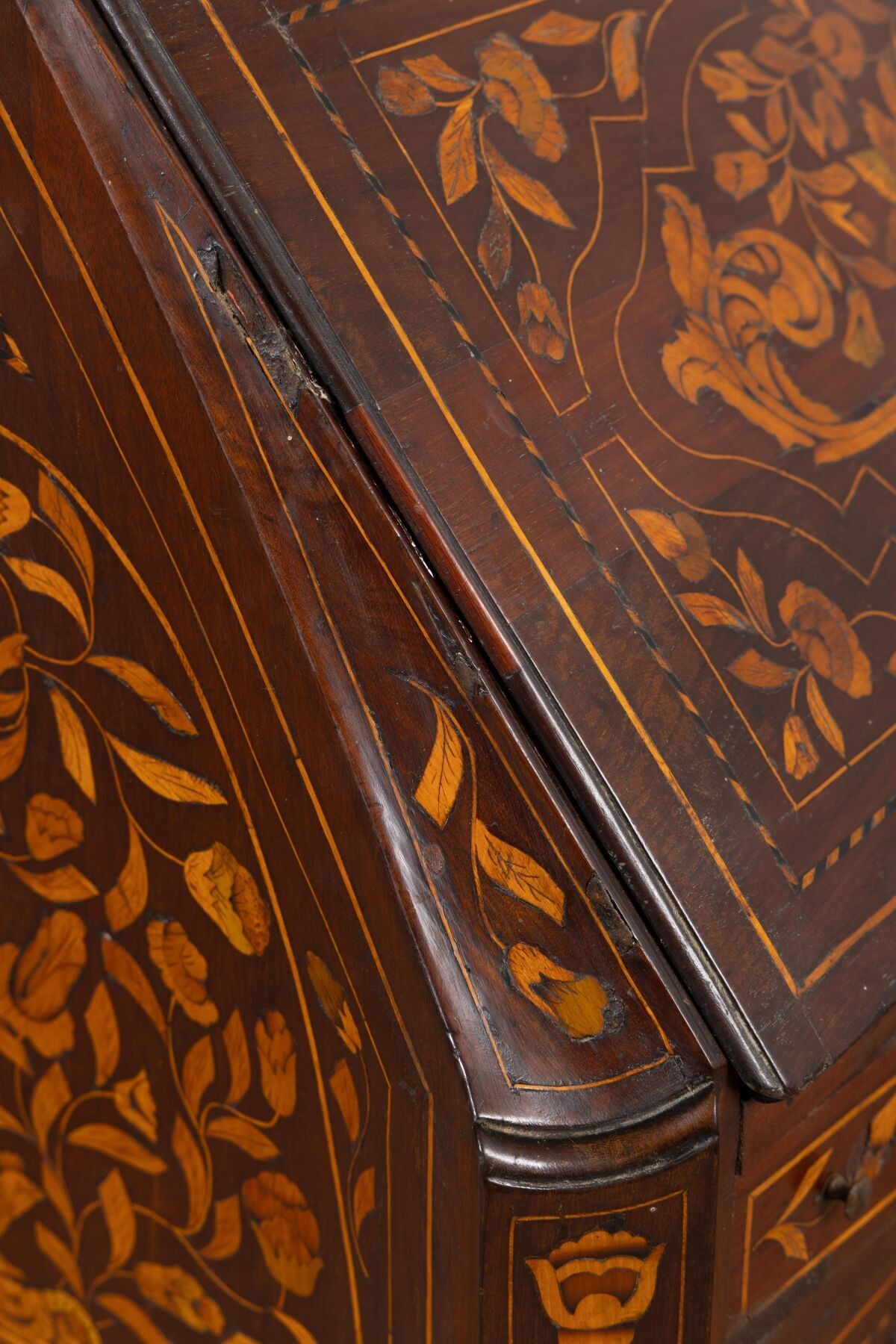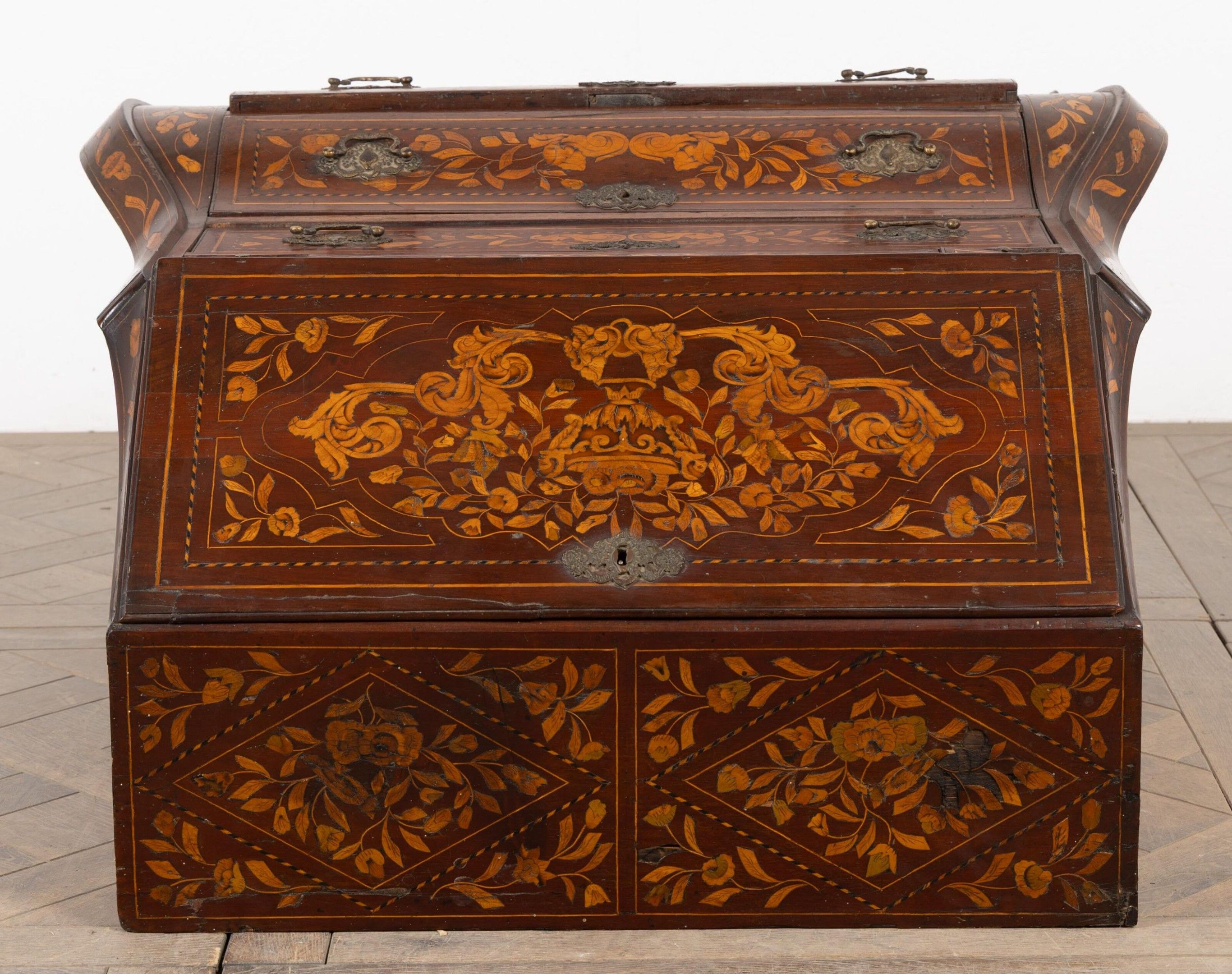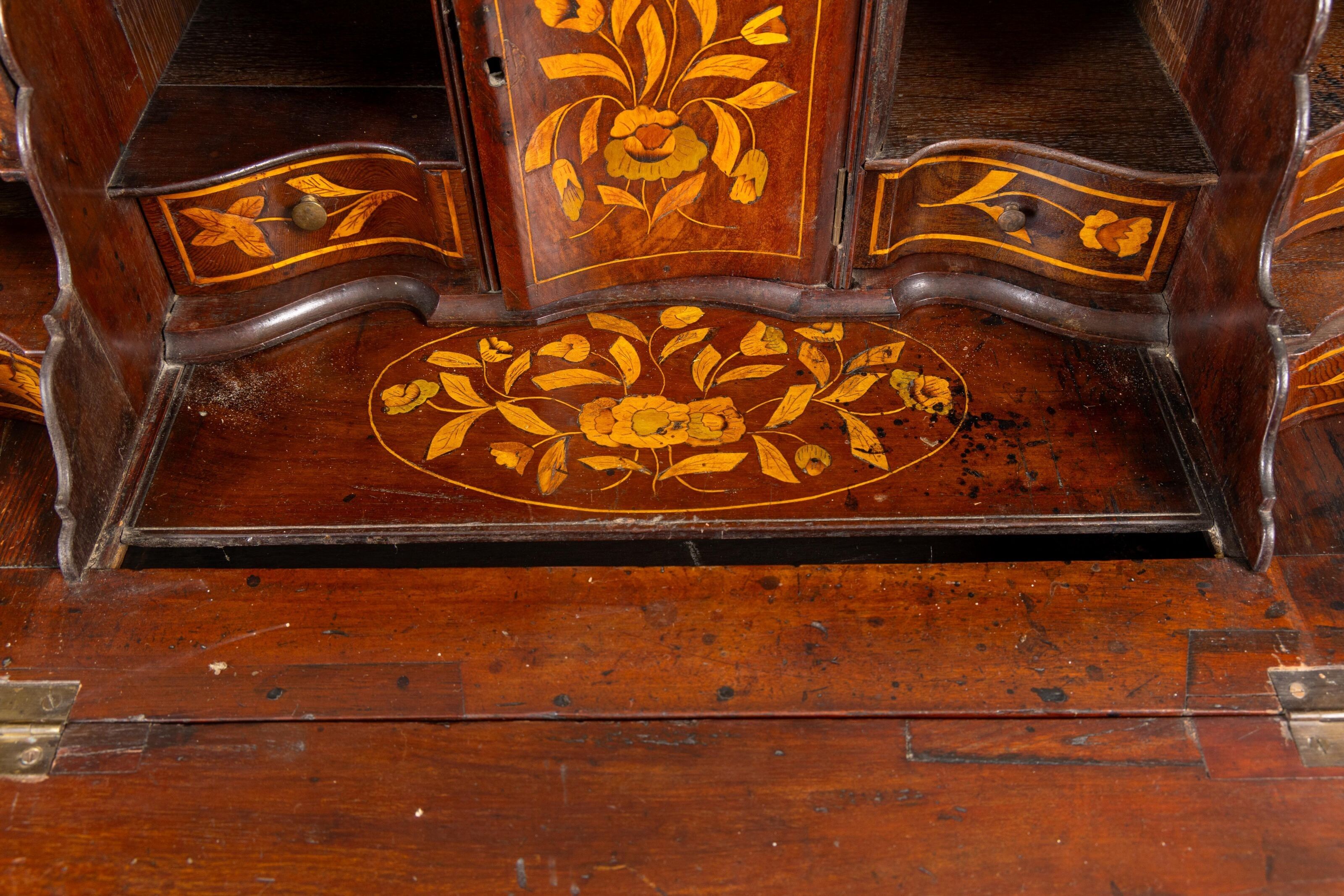 It opens with a flap revealing compartments and drawers and three lower drawers.