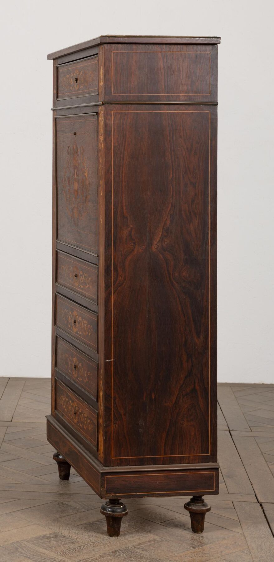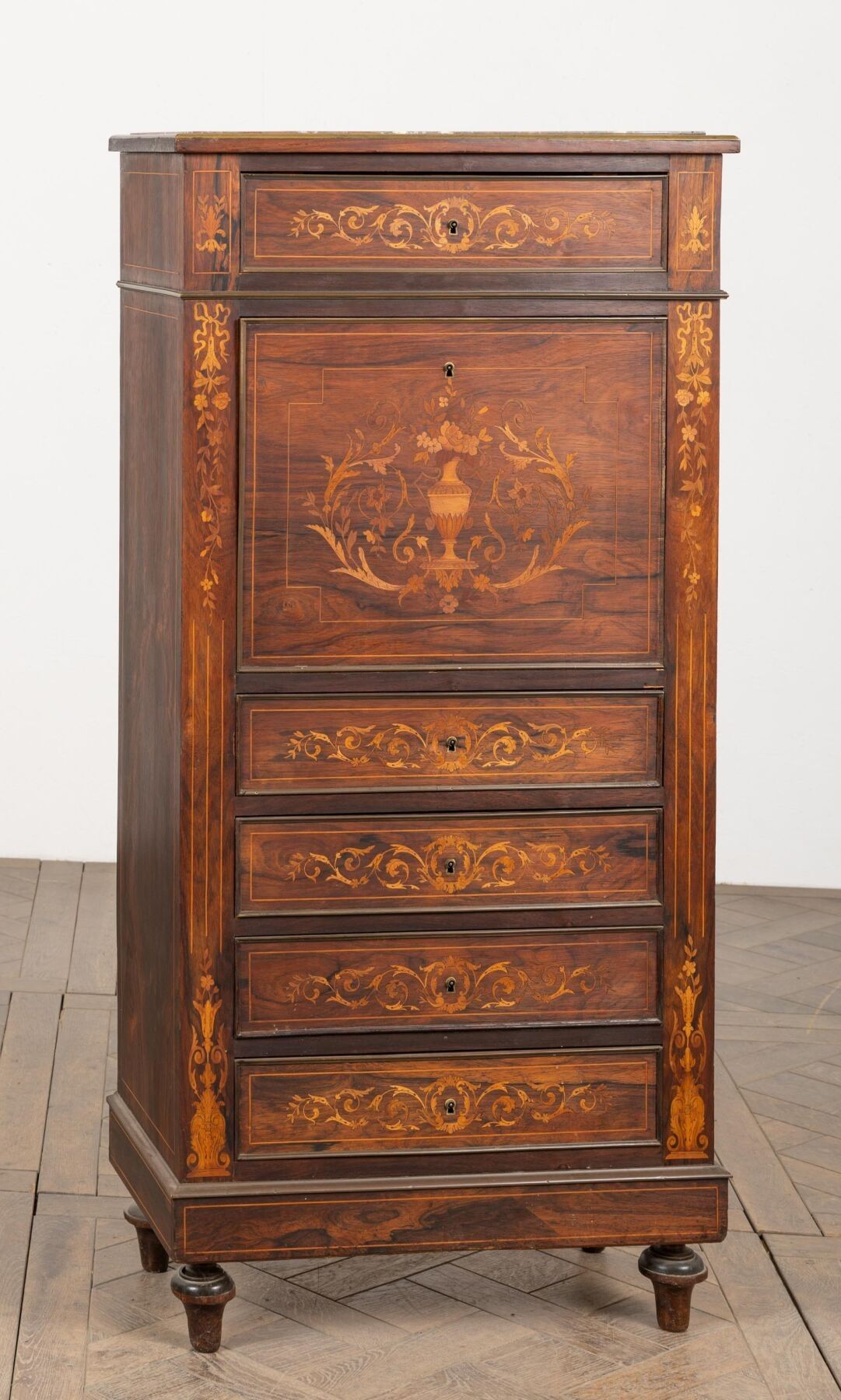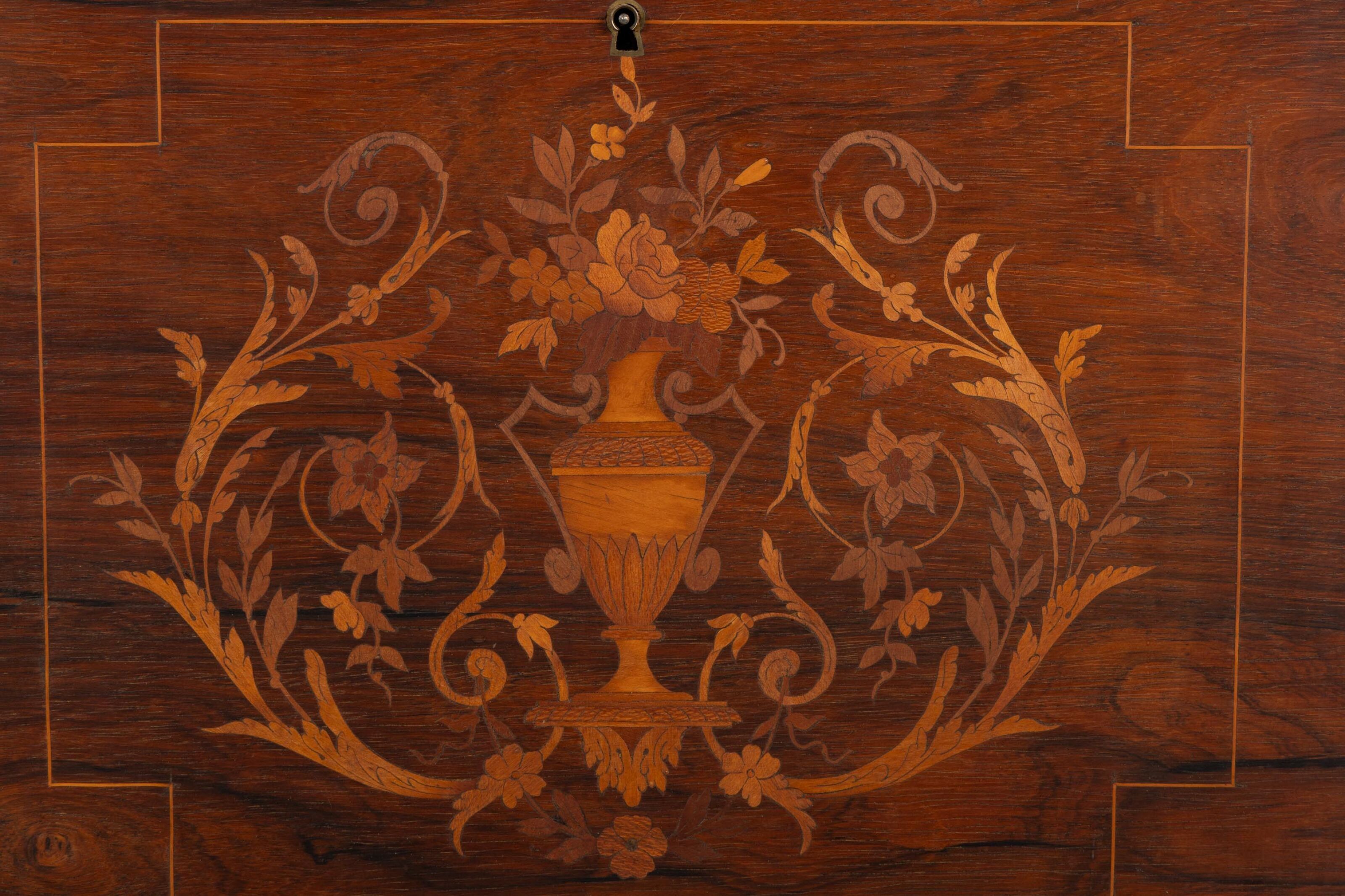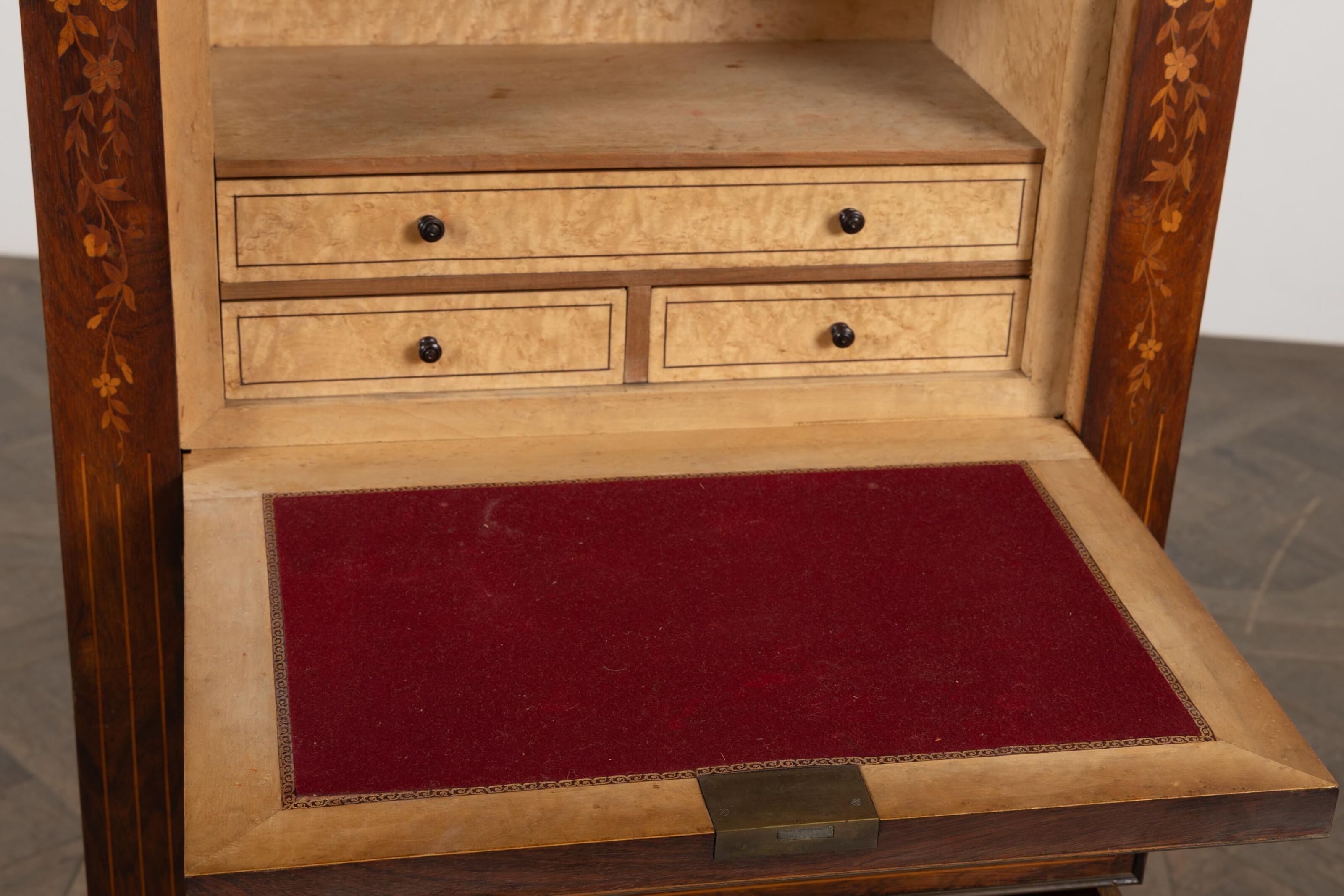 Lady's writing desk in rosewood veneer and light wood marquetry.