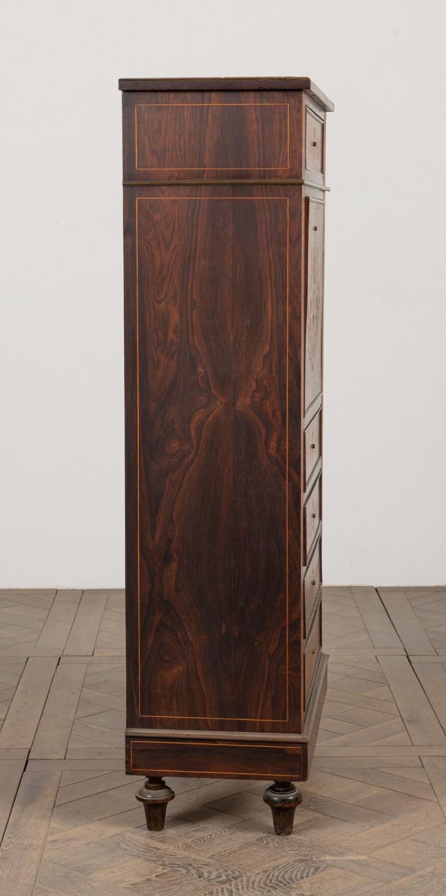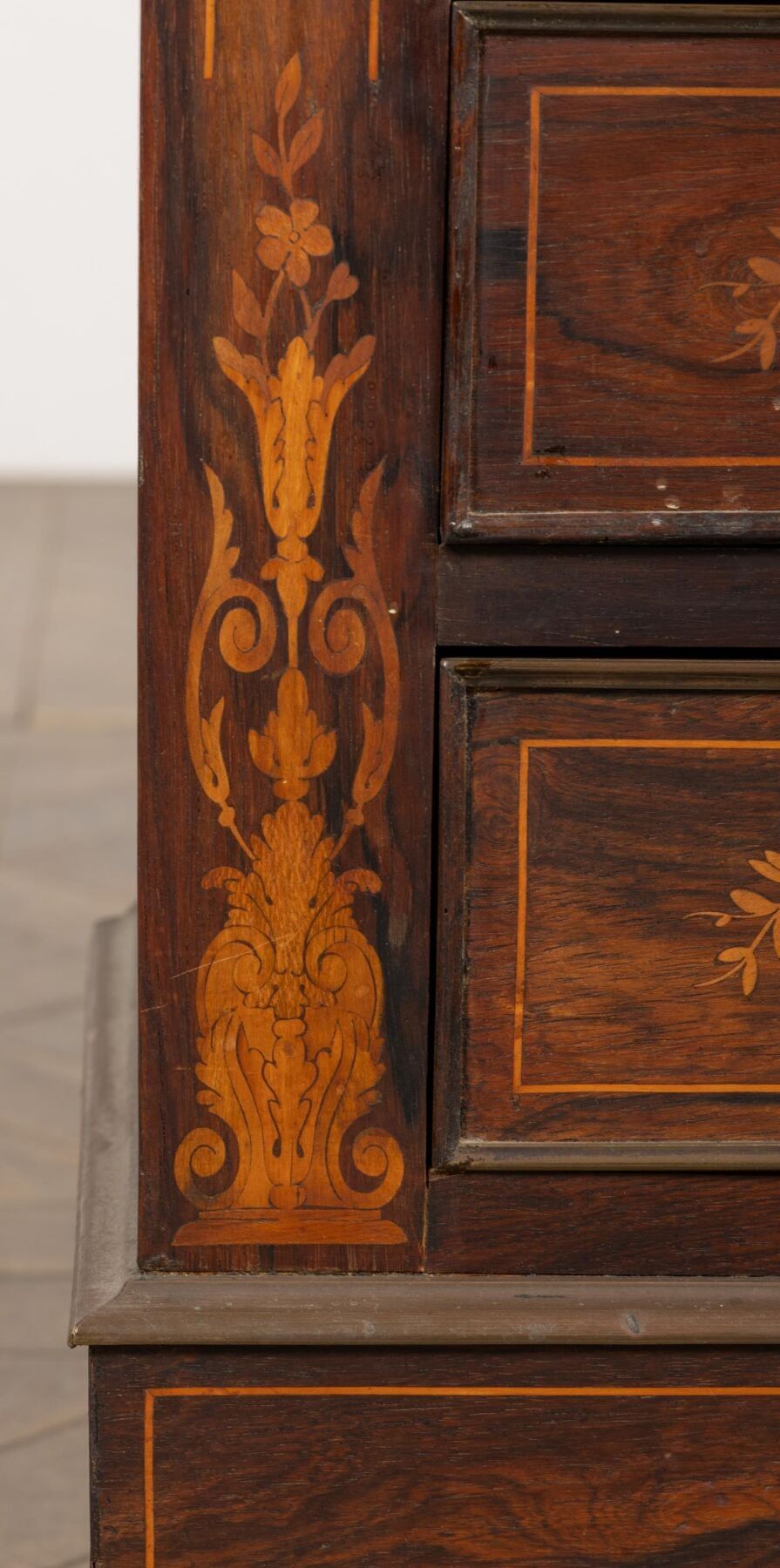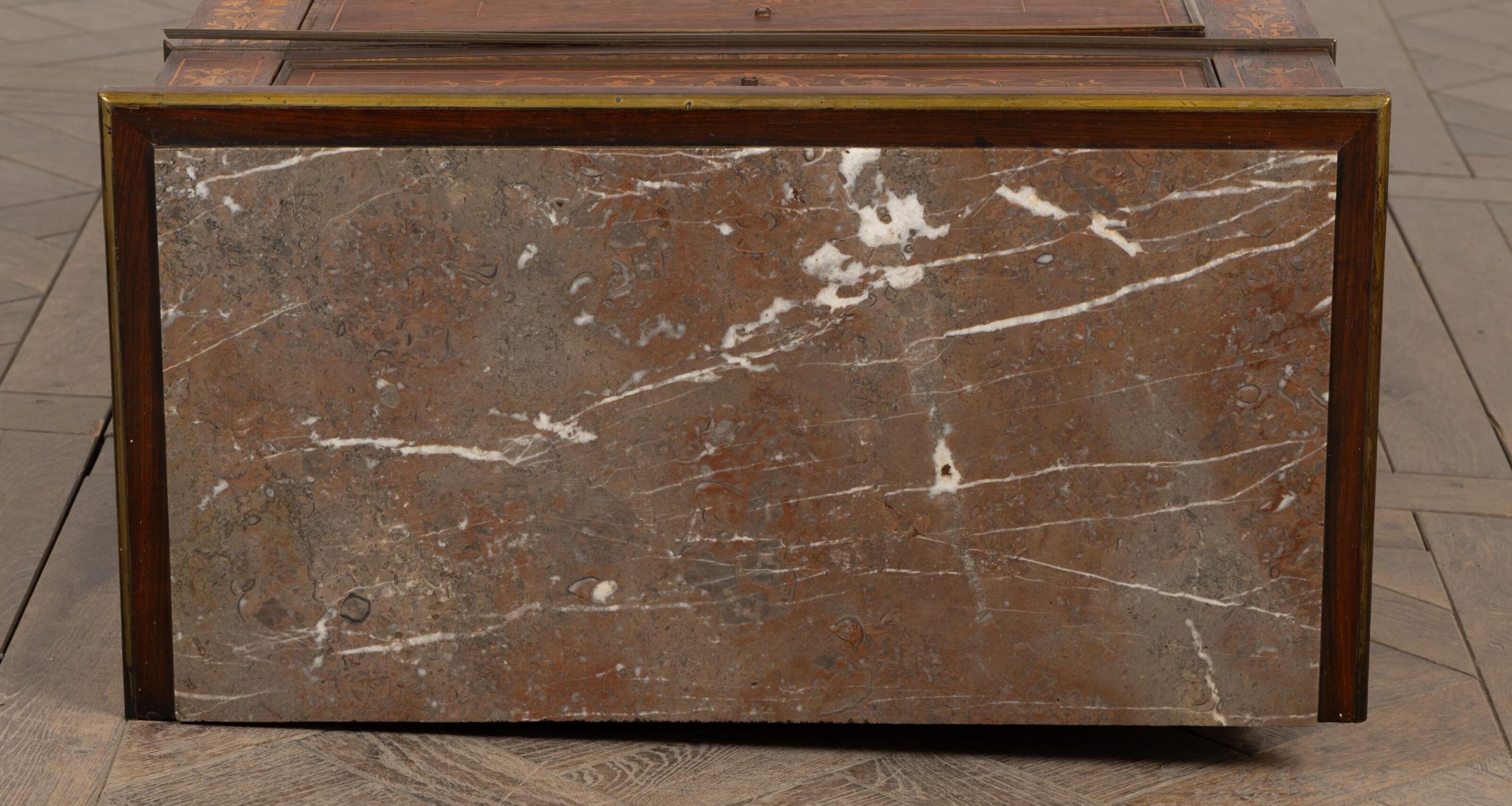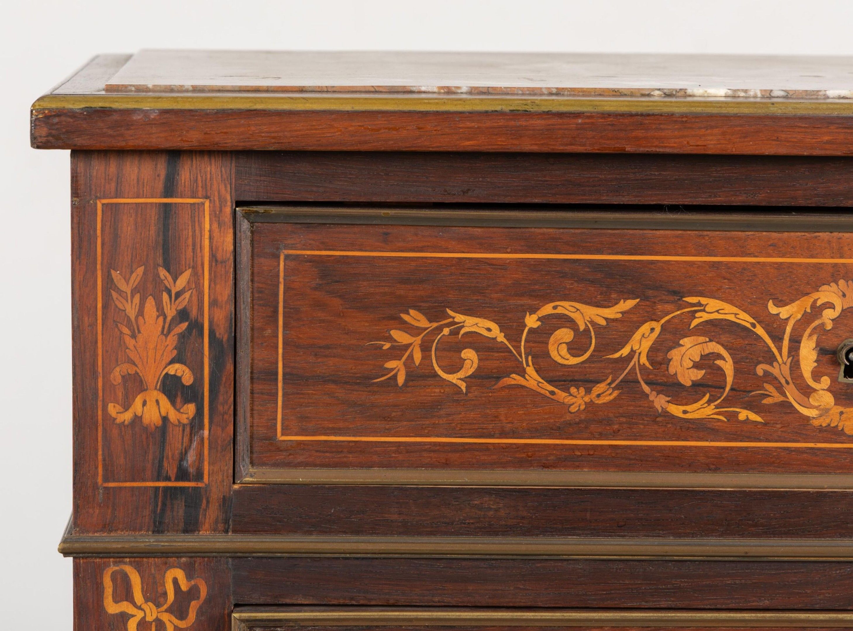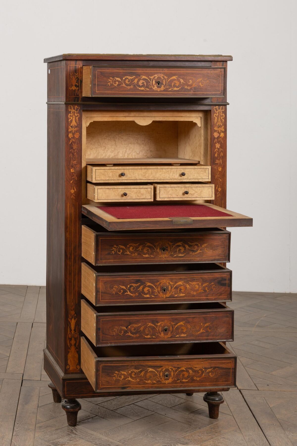 Lady's writing desk in rosewood veneer and light wood marquetry.