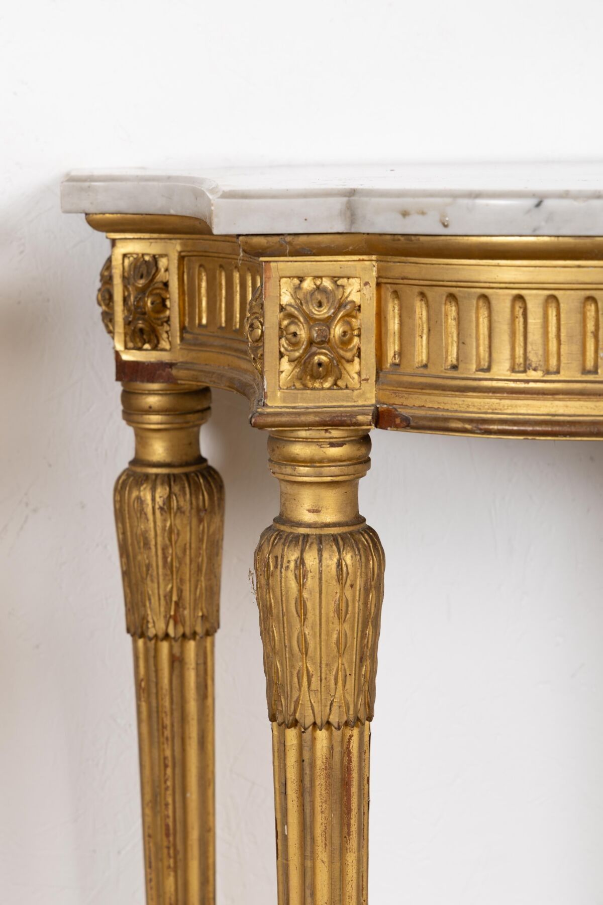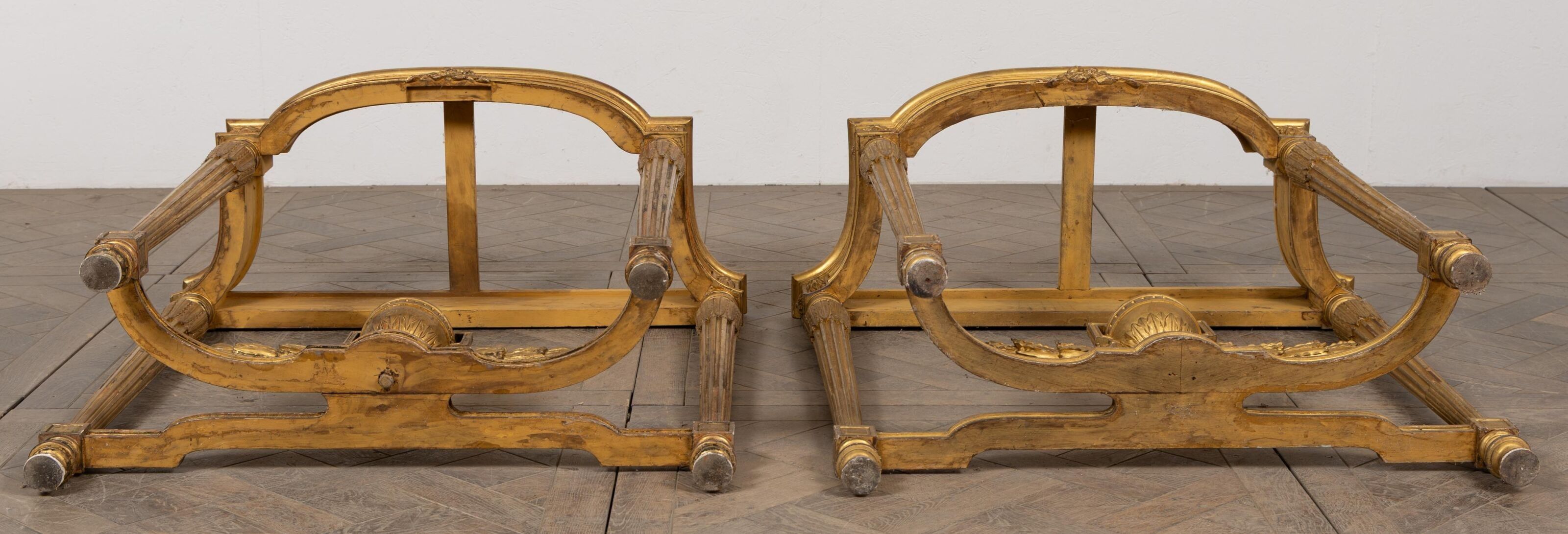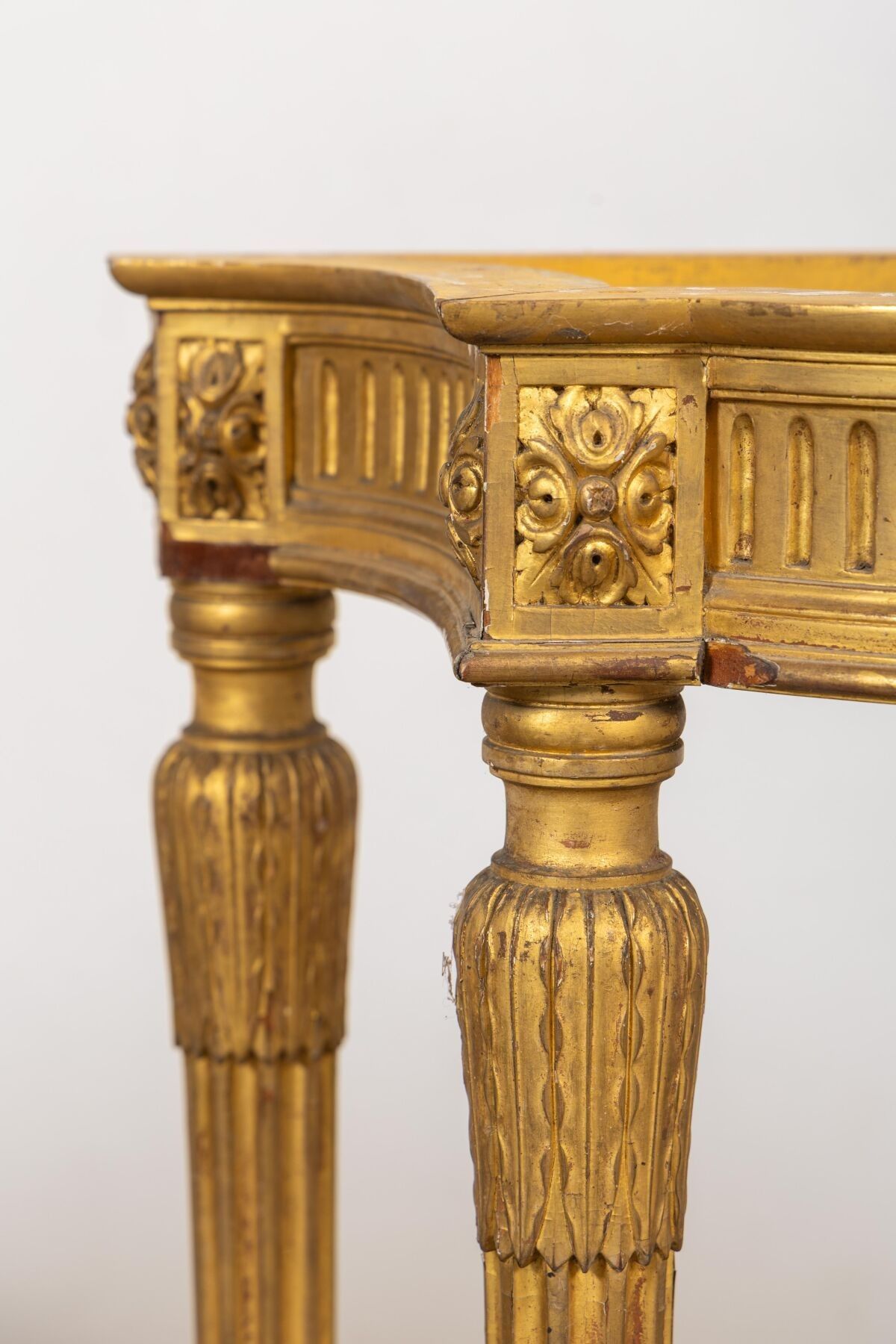 Pair of carved and gilded wood consoles, the fluted legs lin…