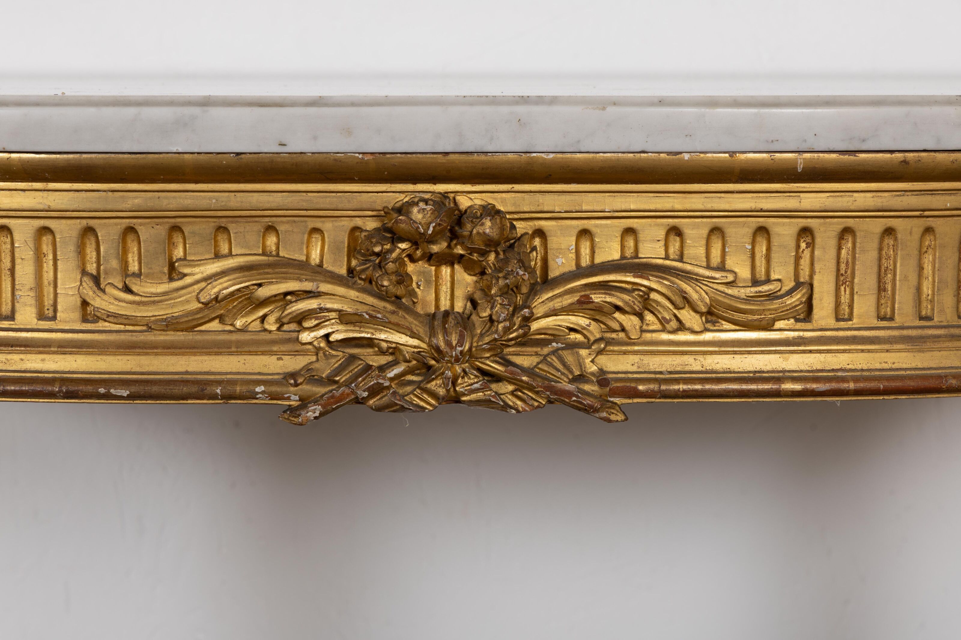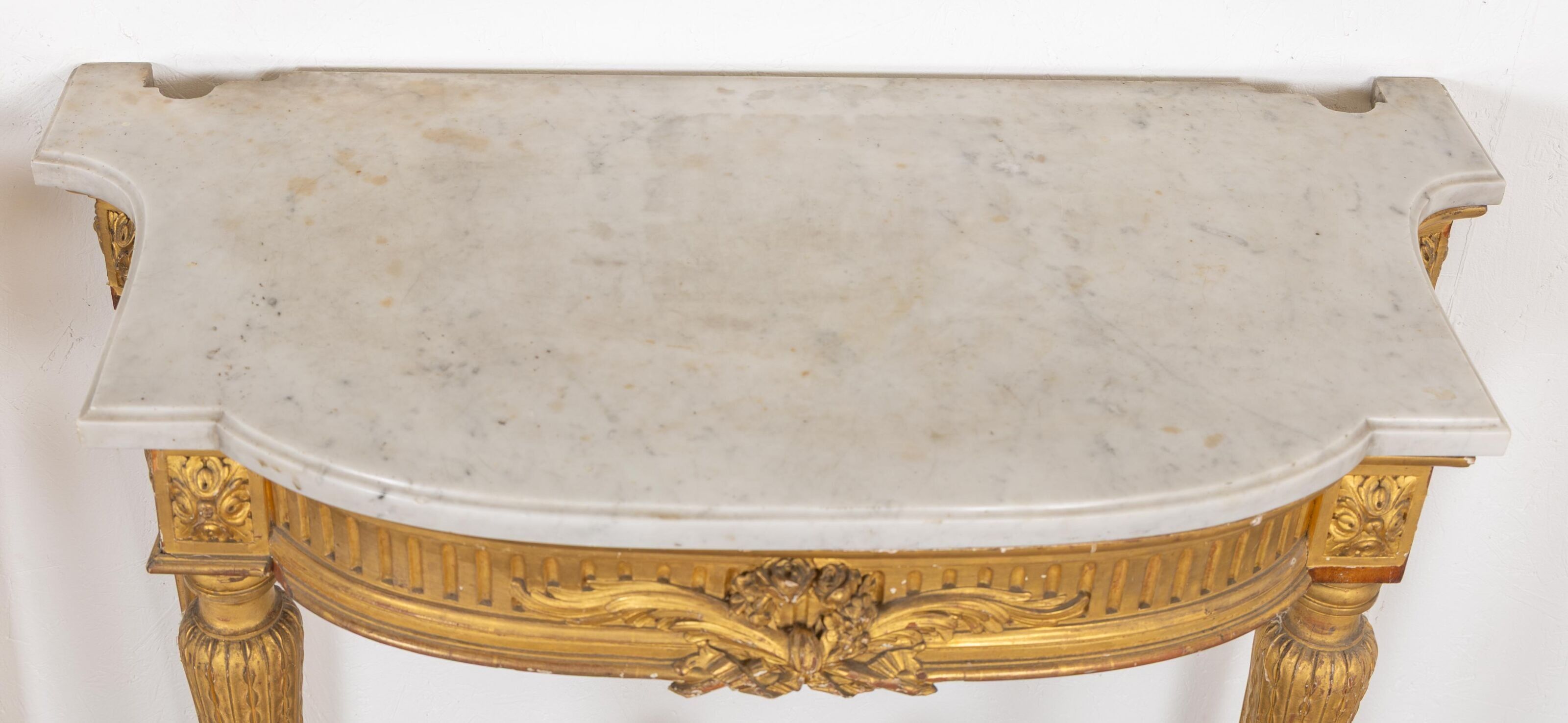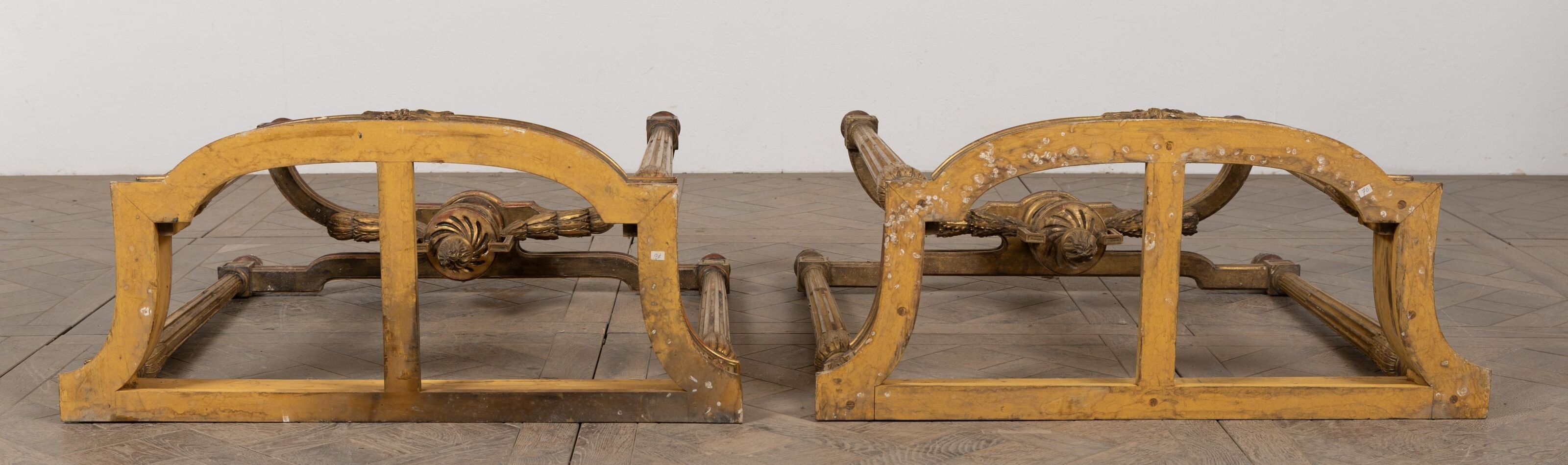 Pair of carved and gilded wood consoles, the fluted legs lin…