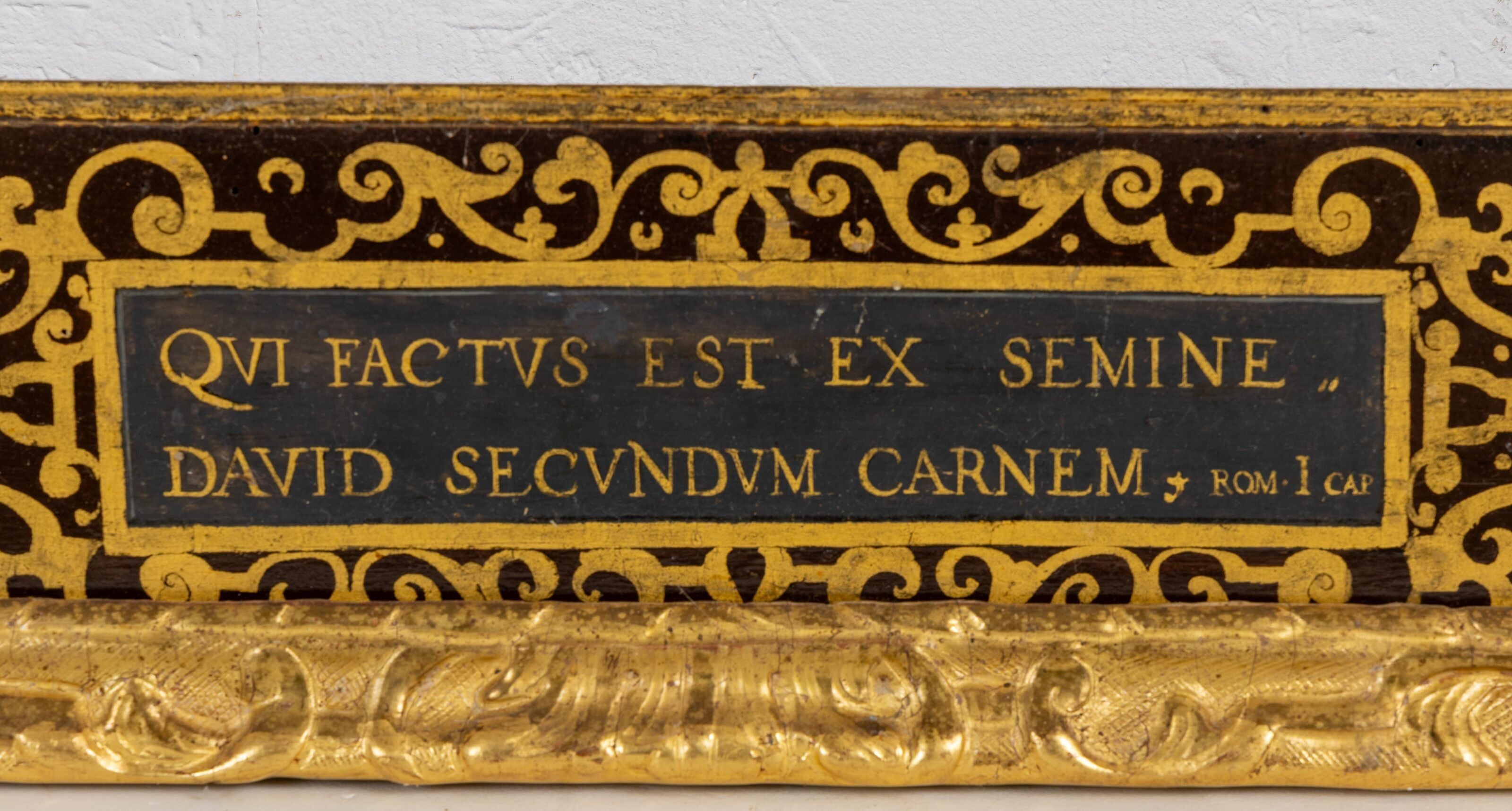 The whole richly decorated with gold mantling and flower vases and Latin inscriptions in cartouches.