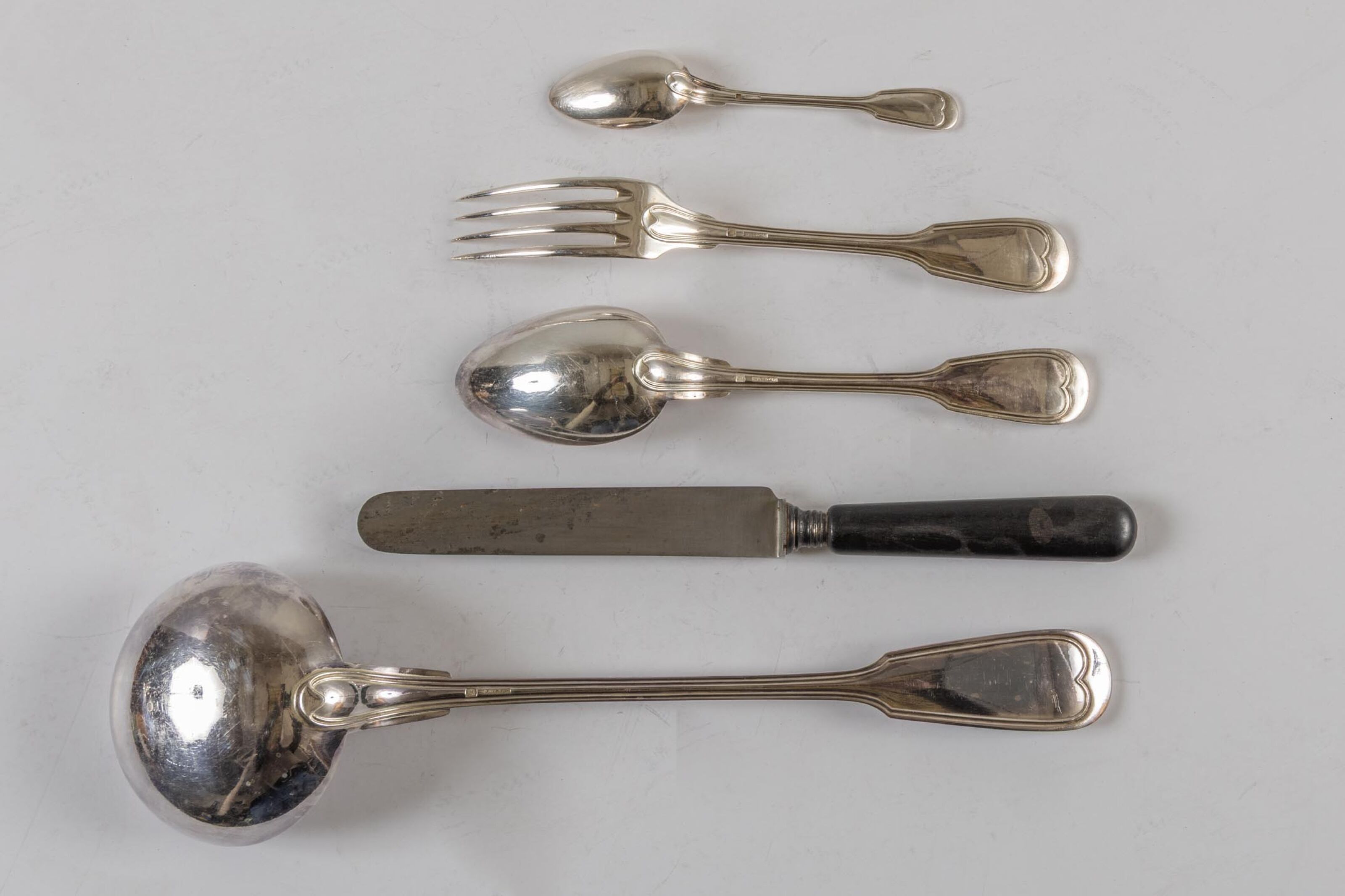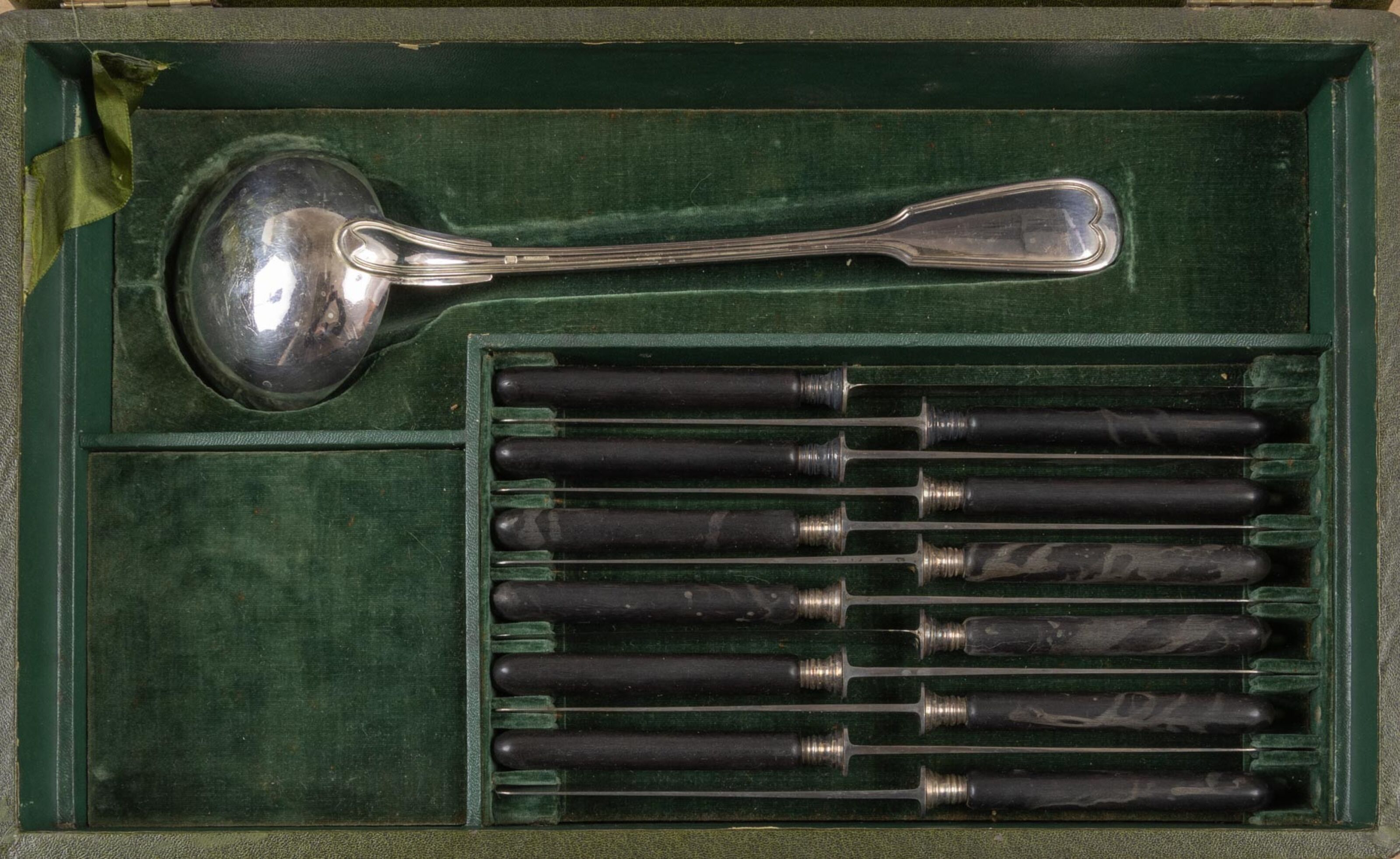 Silver-plated metal set including :