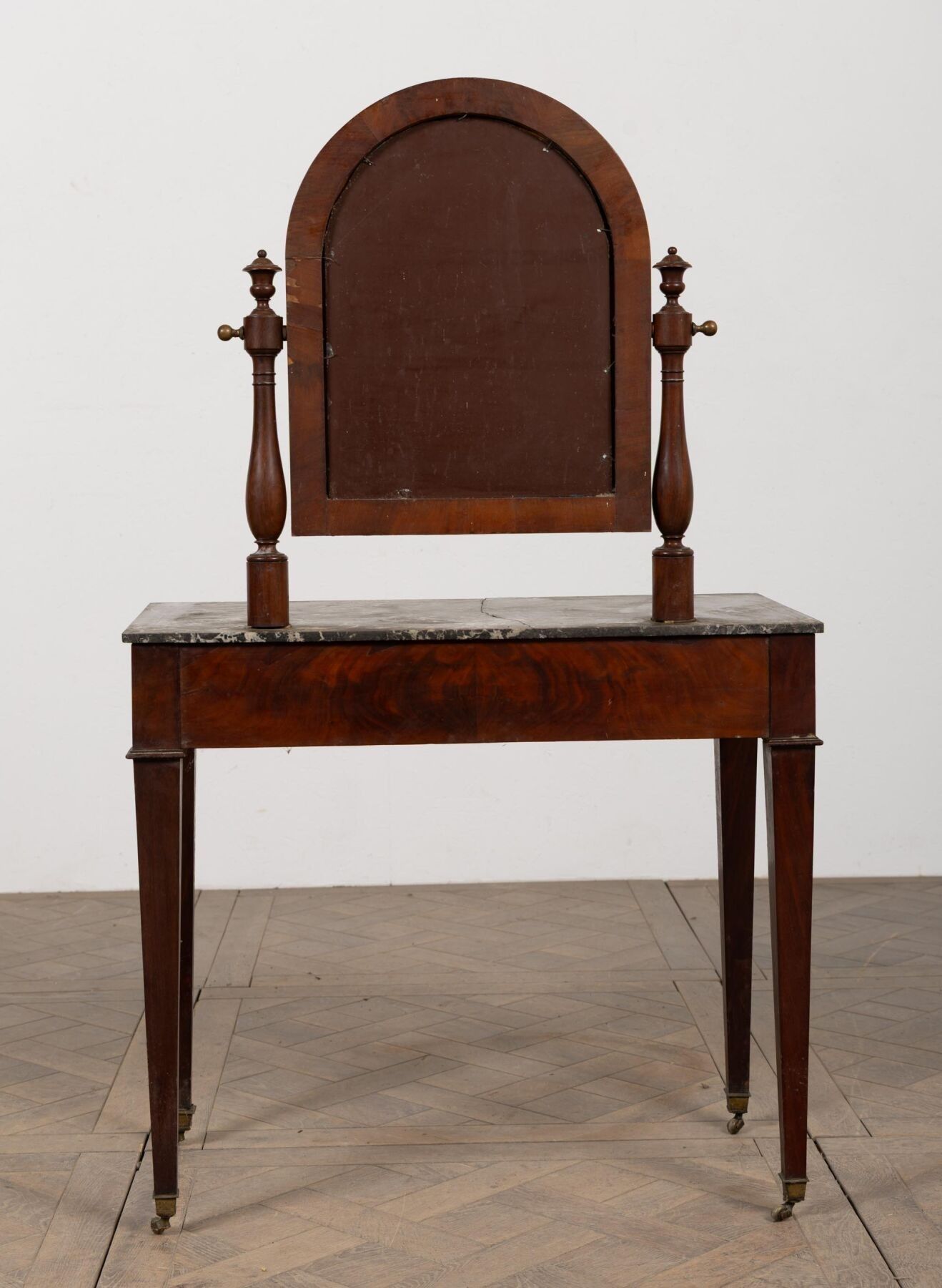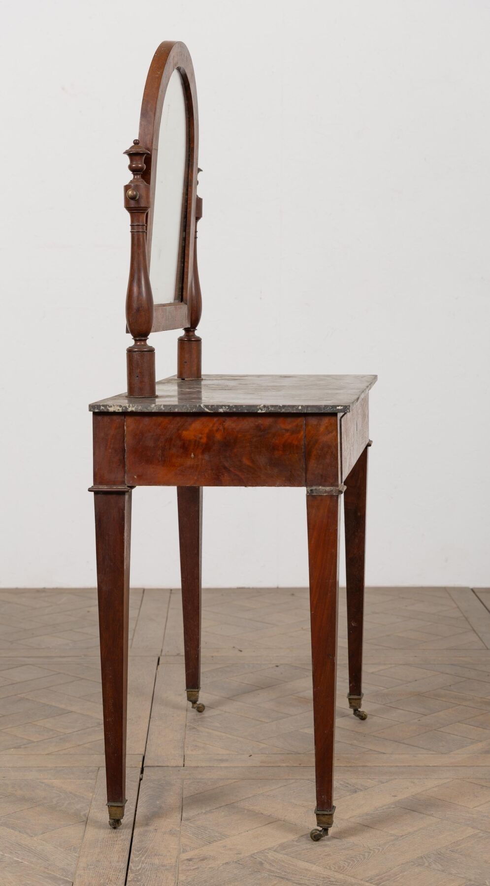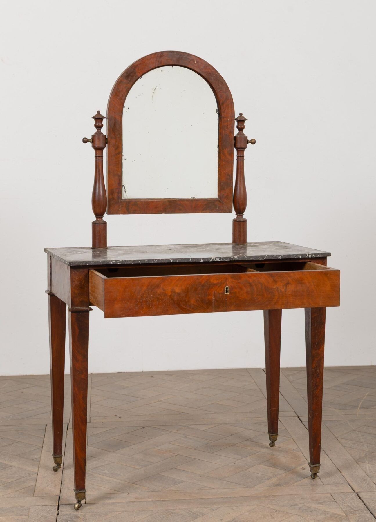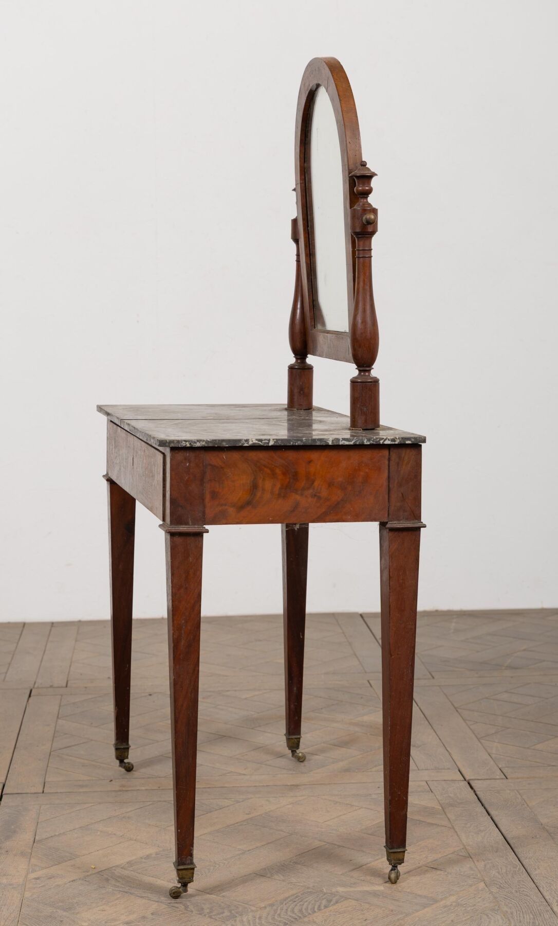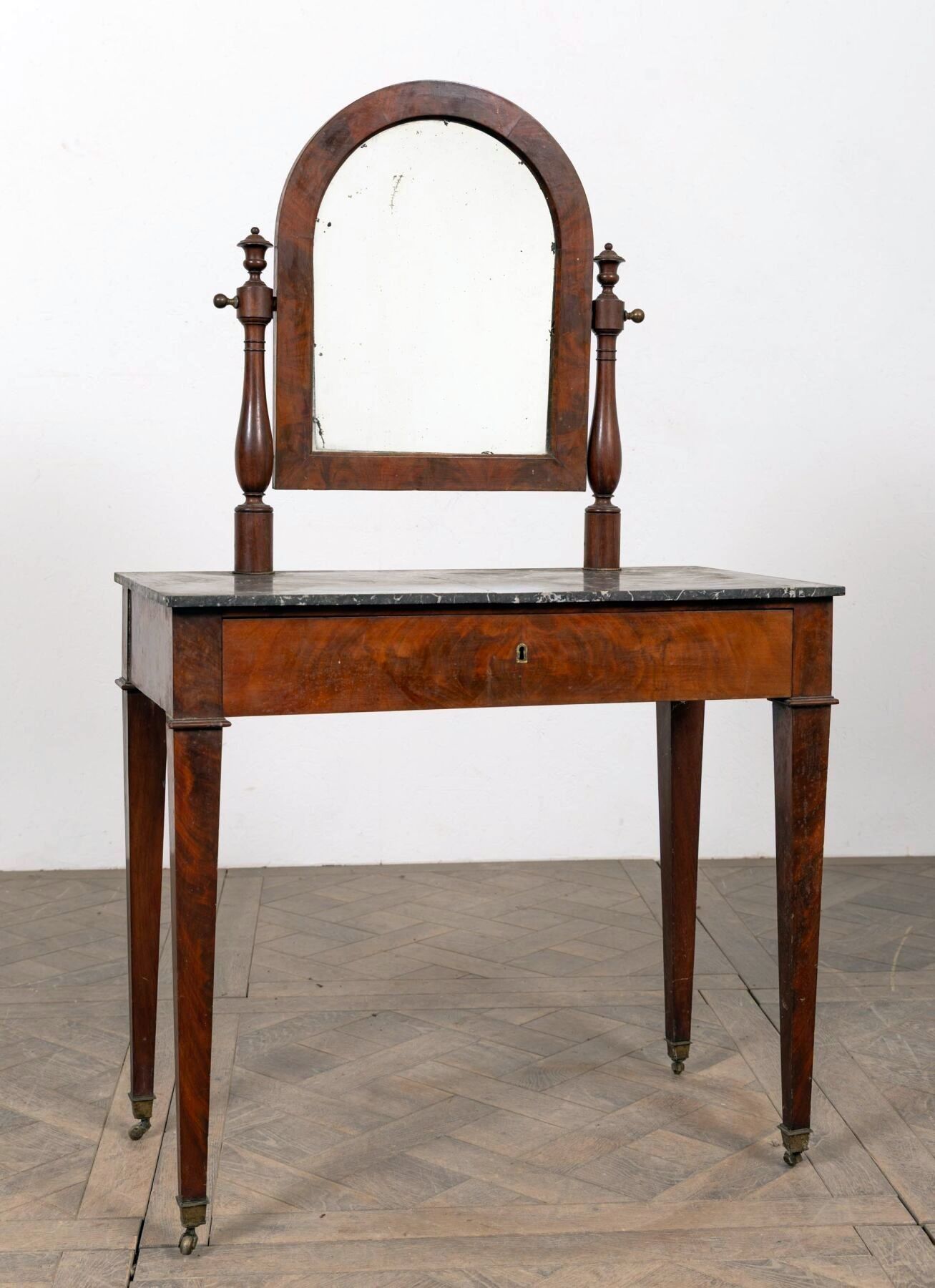 Mahogany and mahogany veneer dressing table, opening with a drawer in the waist.