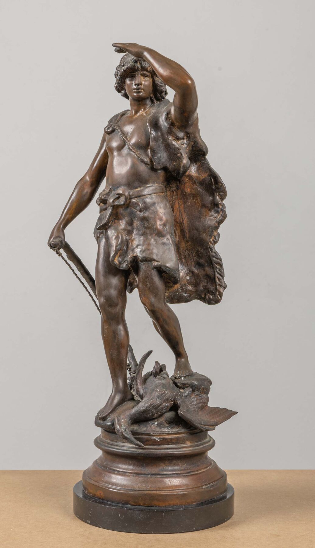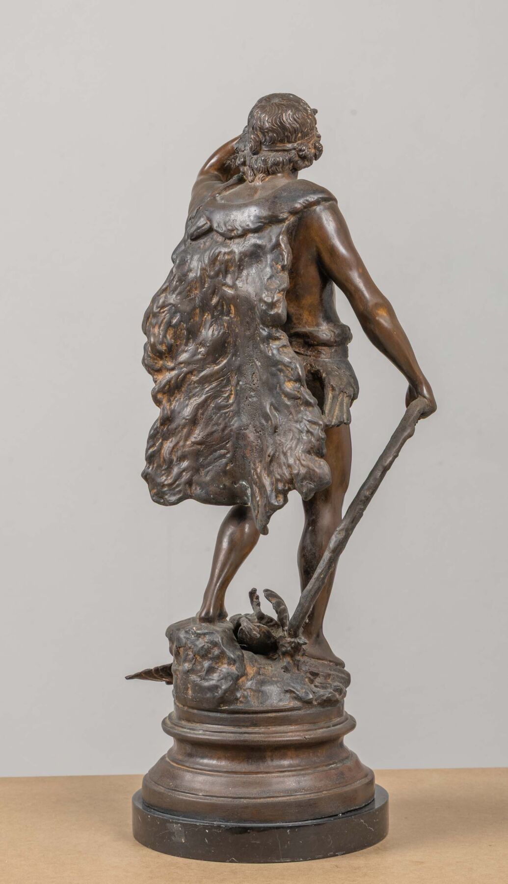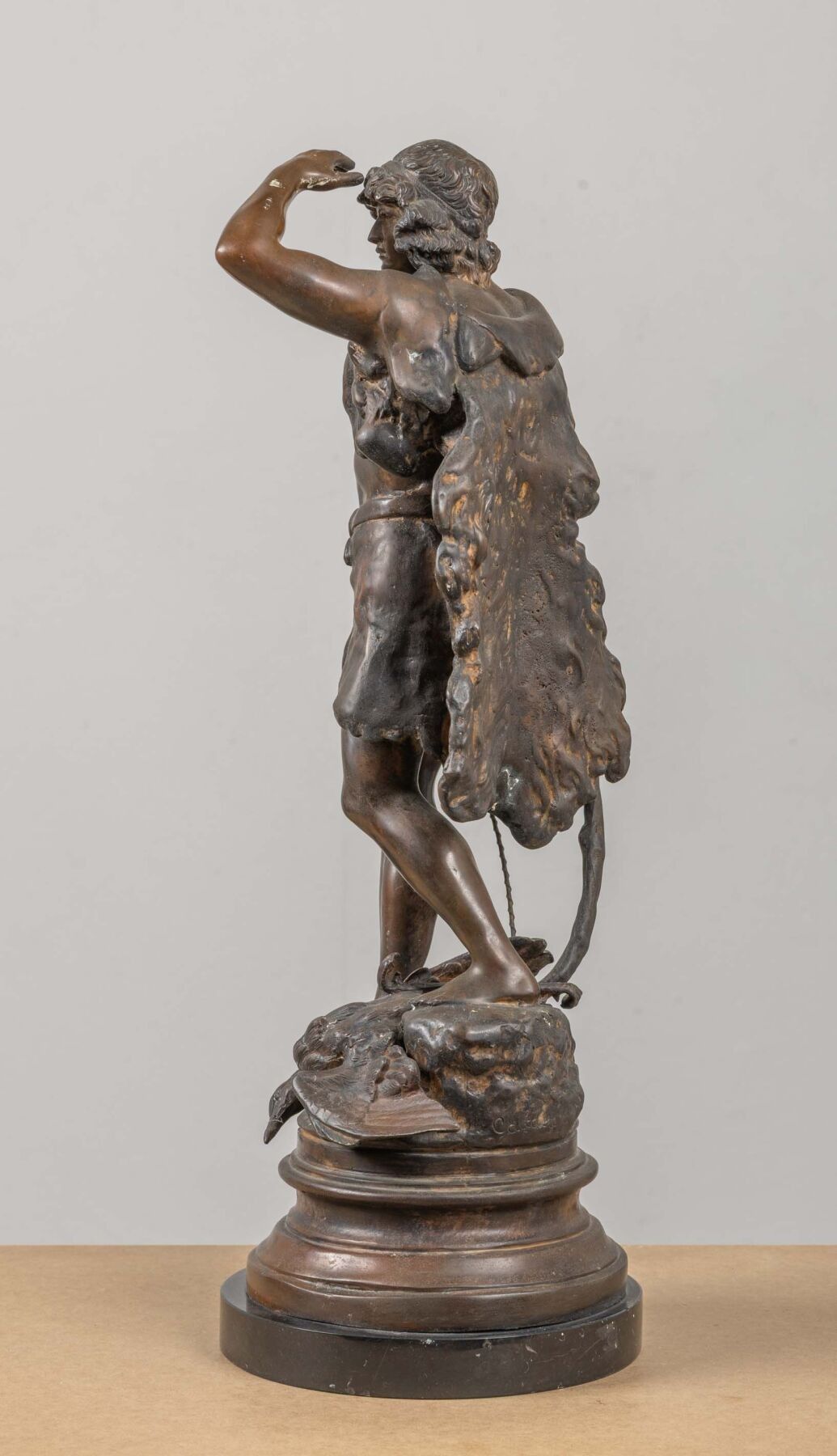 Sculpture in patinated bronze, signed on the back and resting on a circular black marble base.