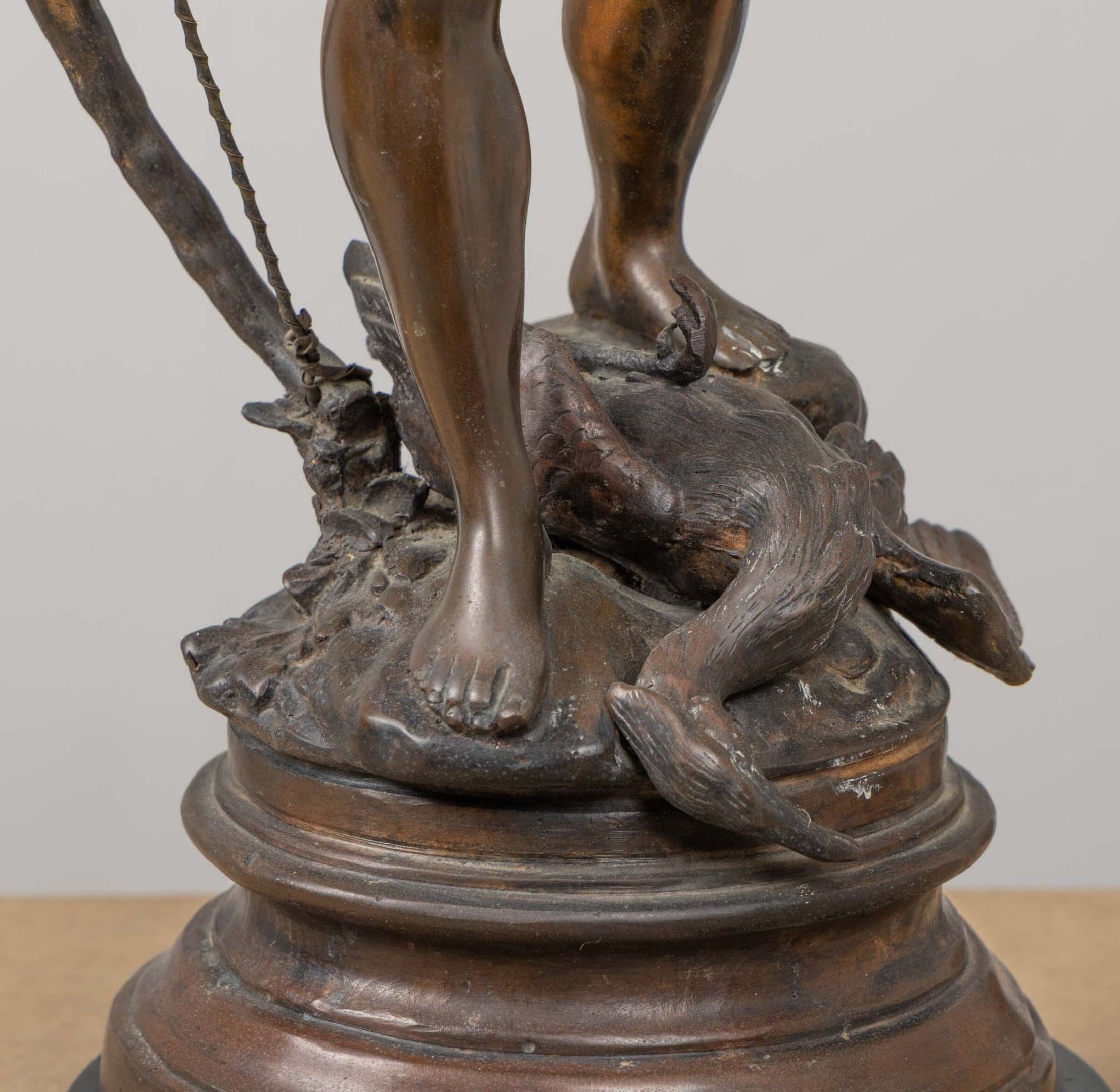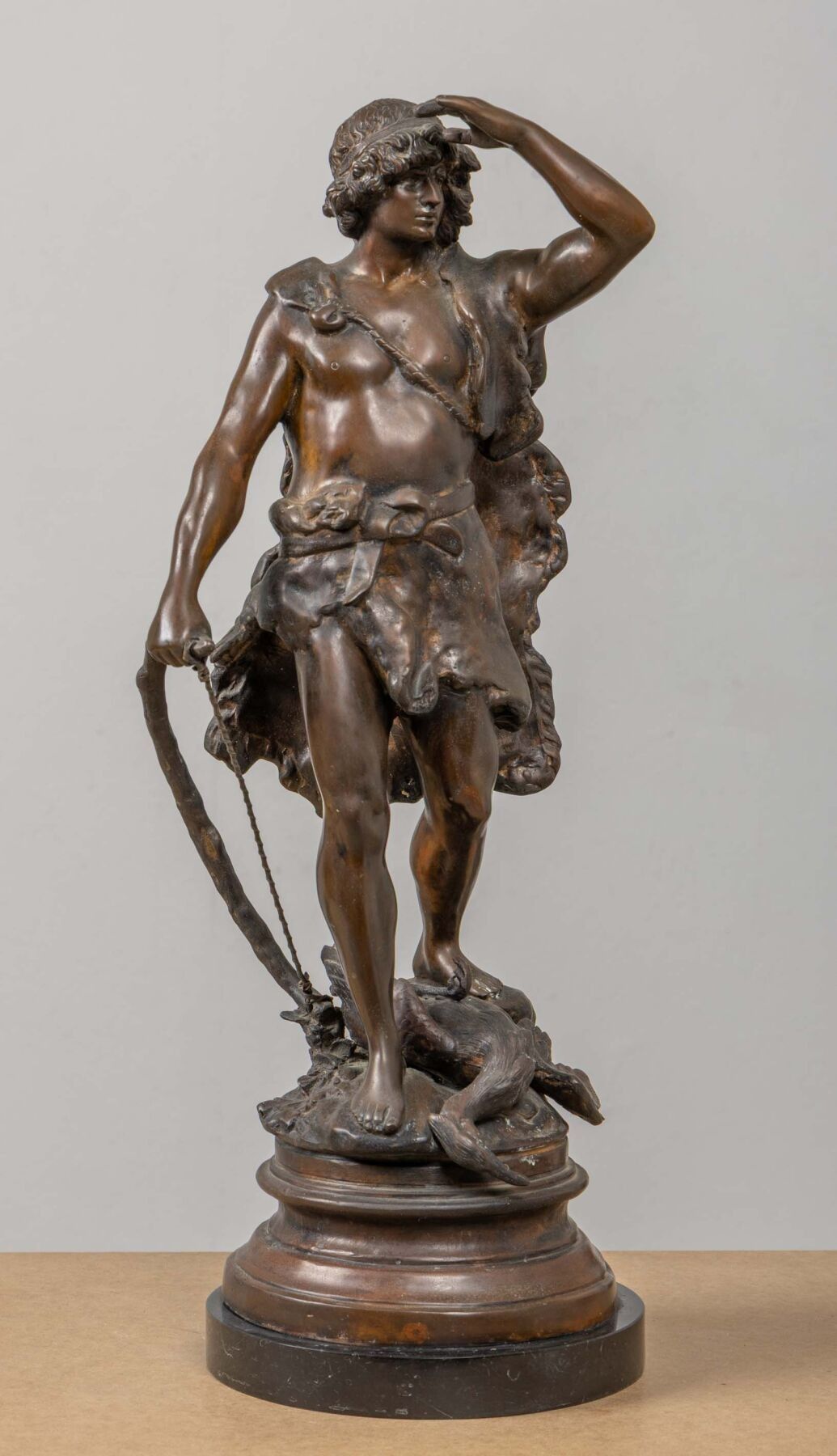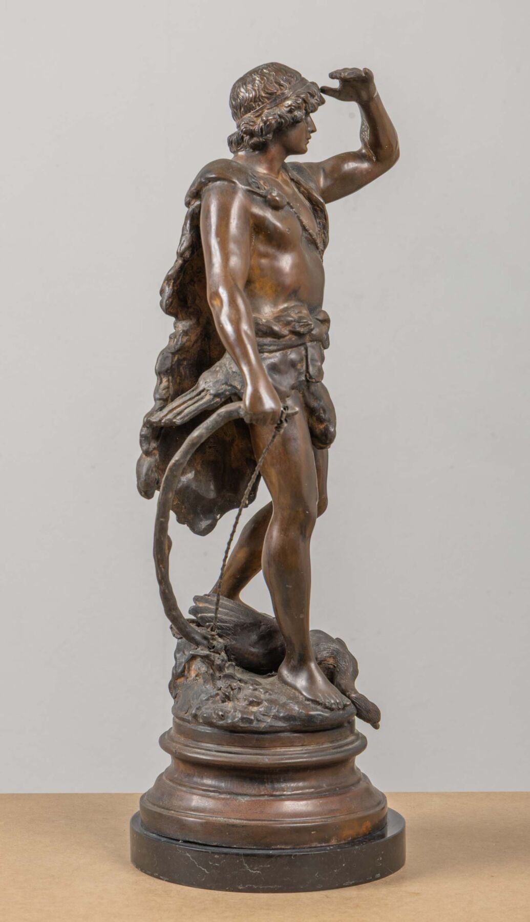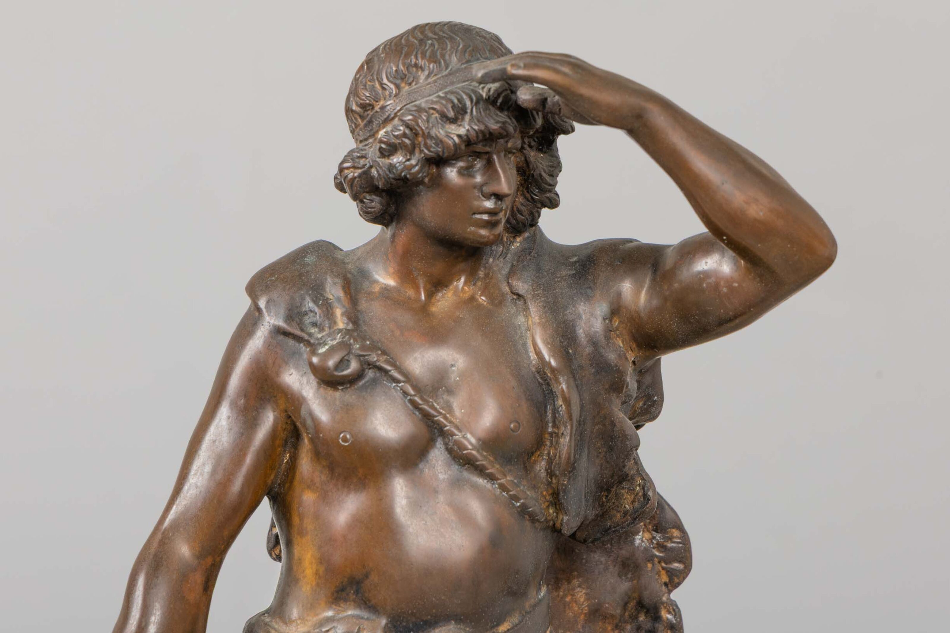 Sculpture in patinated bronze, signed on the back and resting on a circular black marble base.