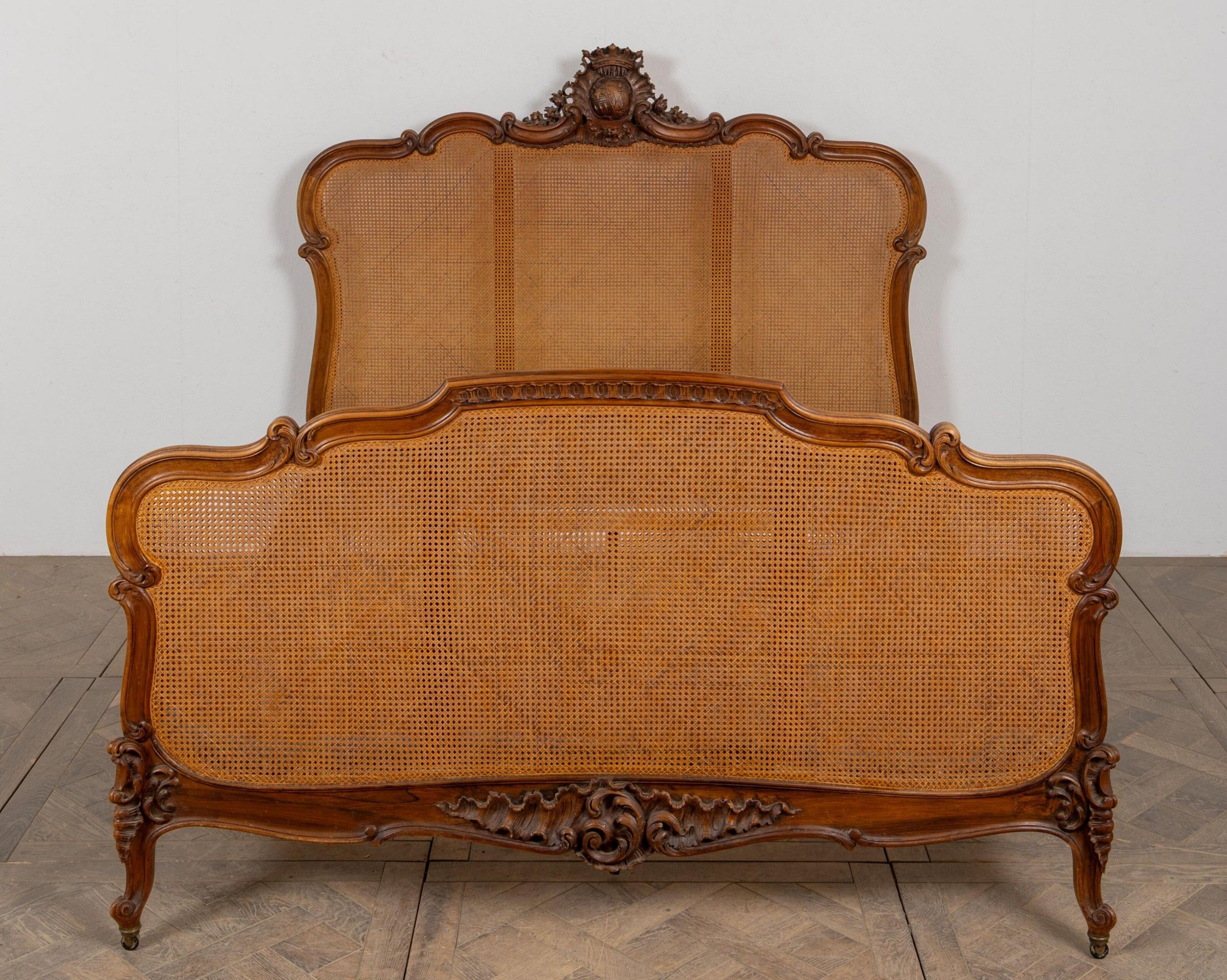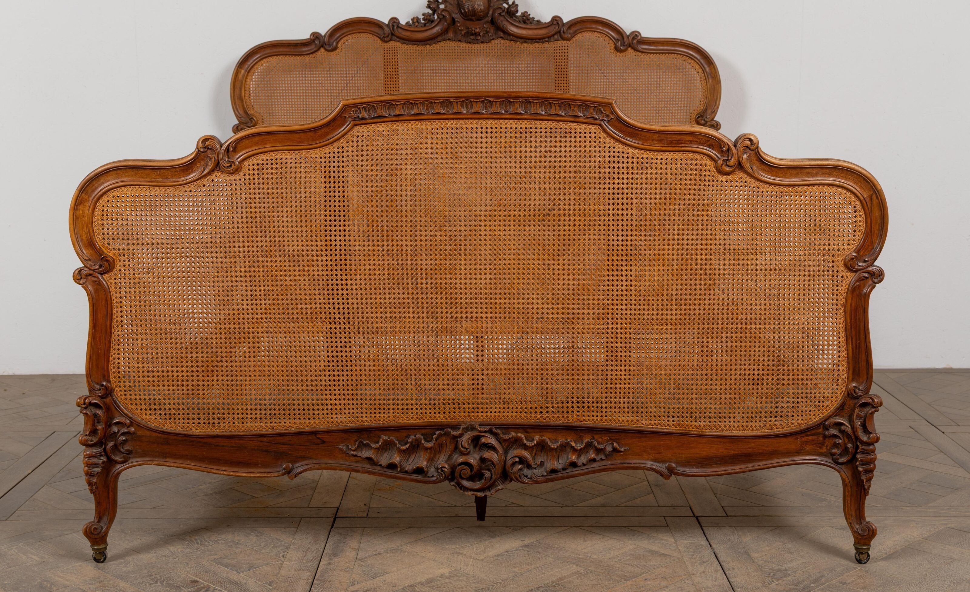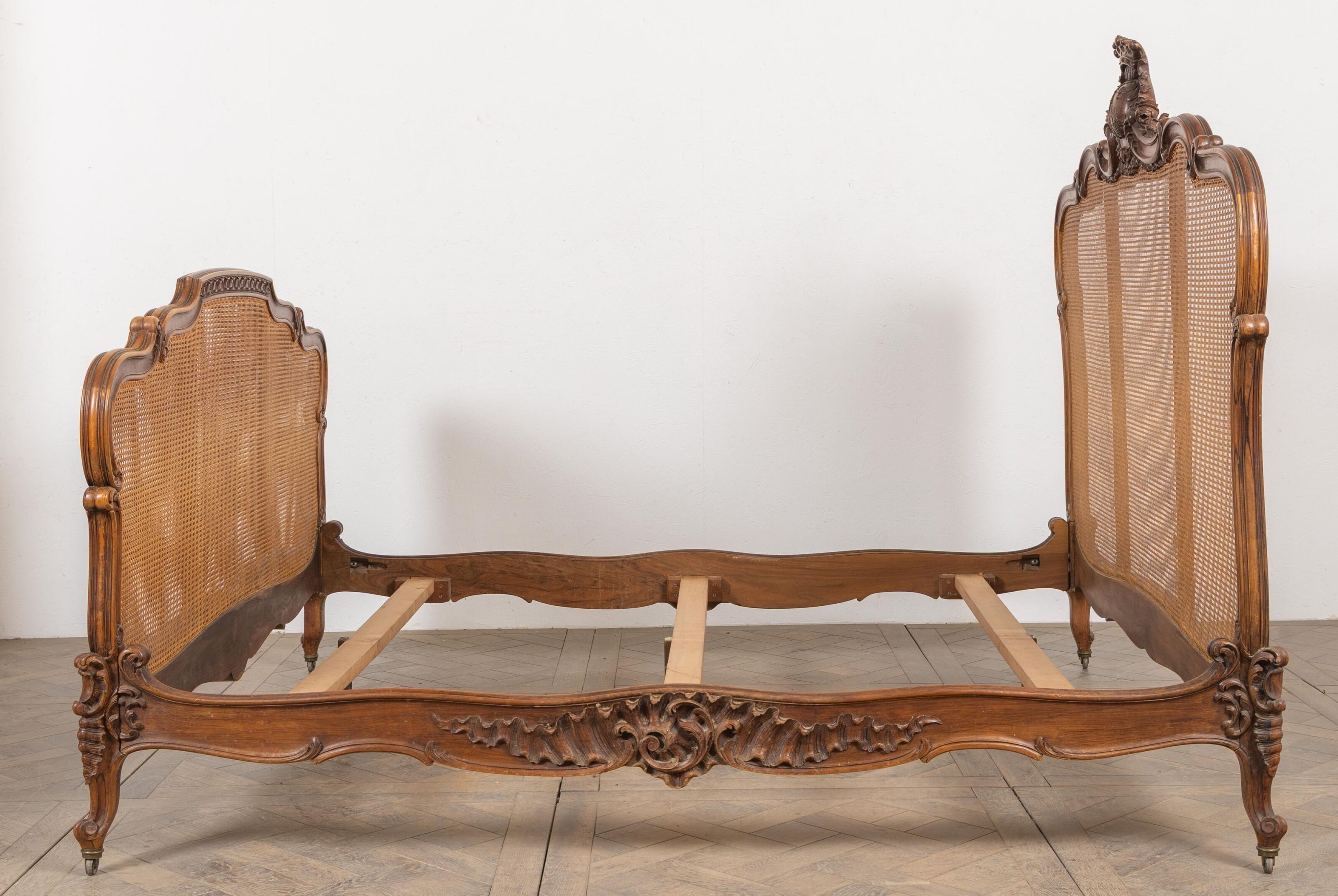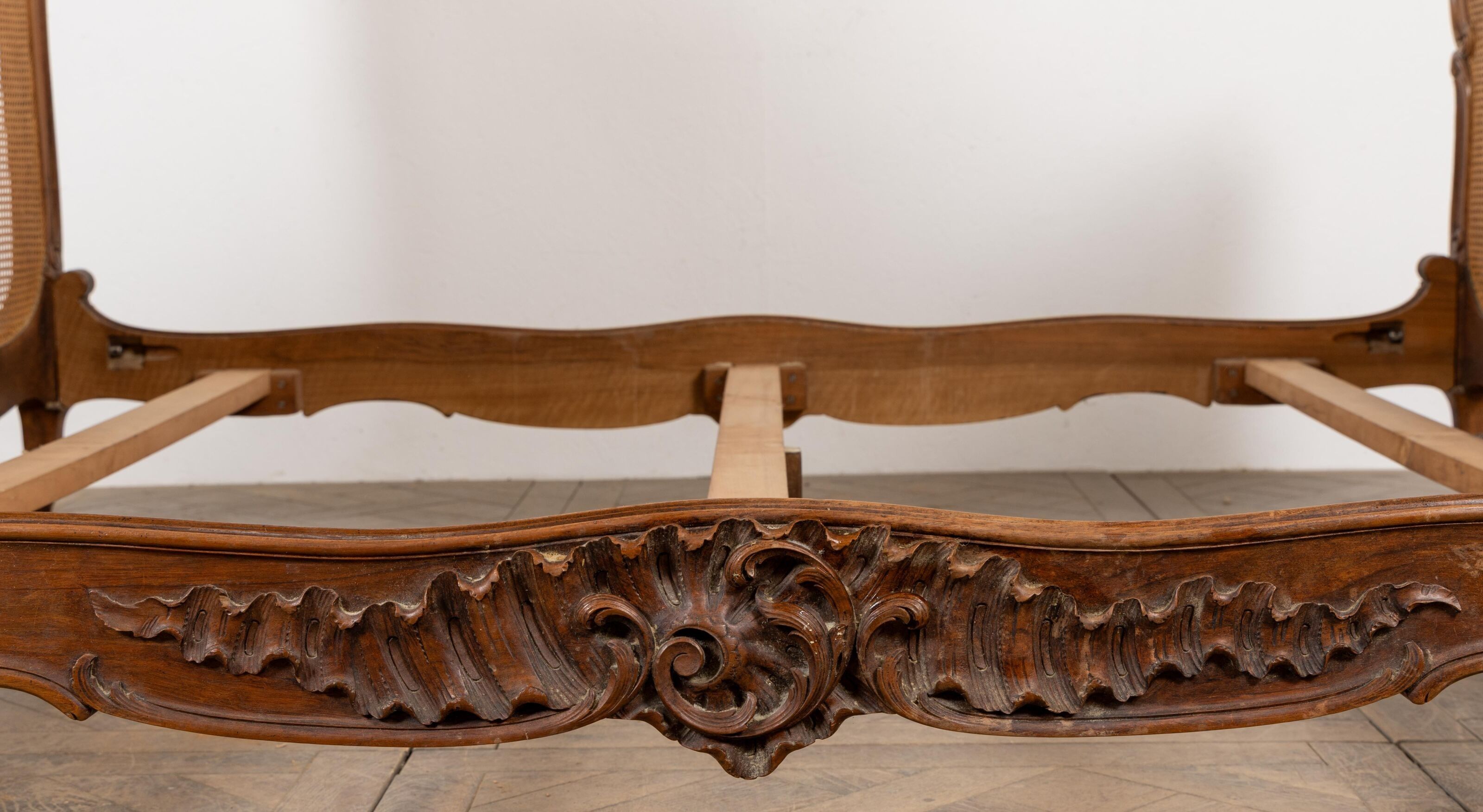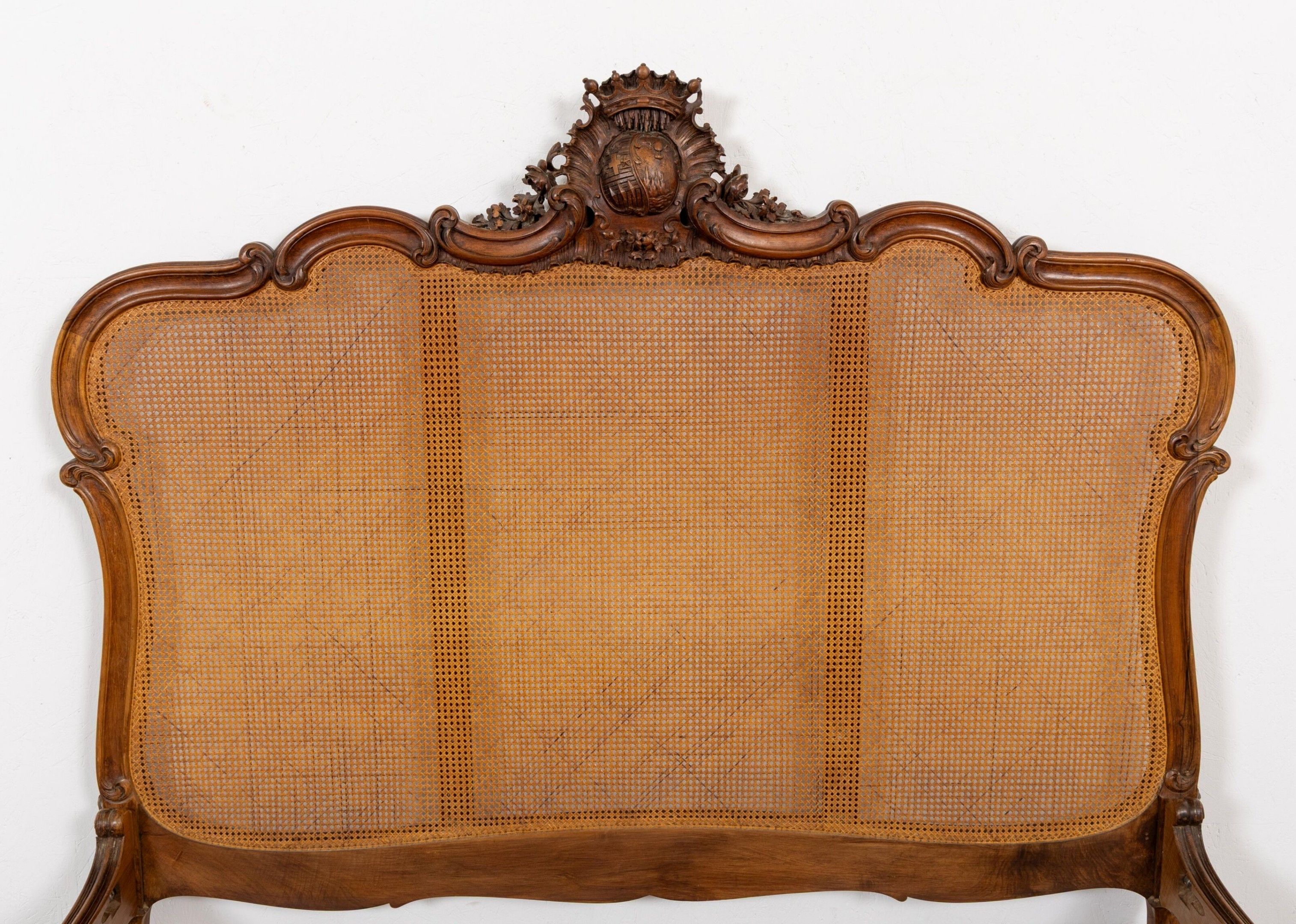Bed in moulded and carved beech, the pediment of the head with the Montgolfier coat of arms.