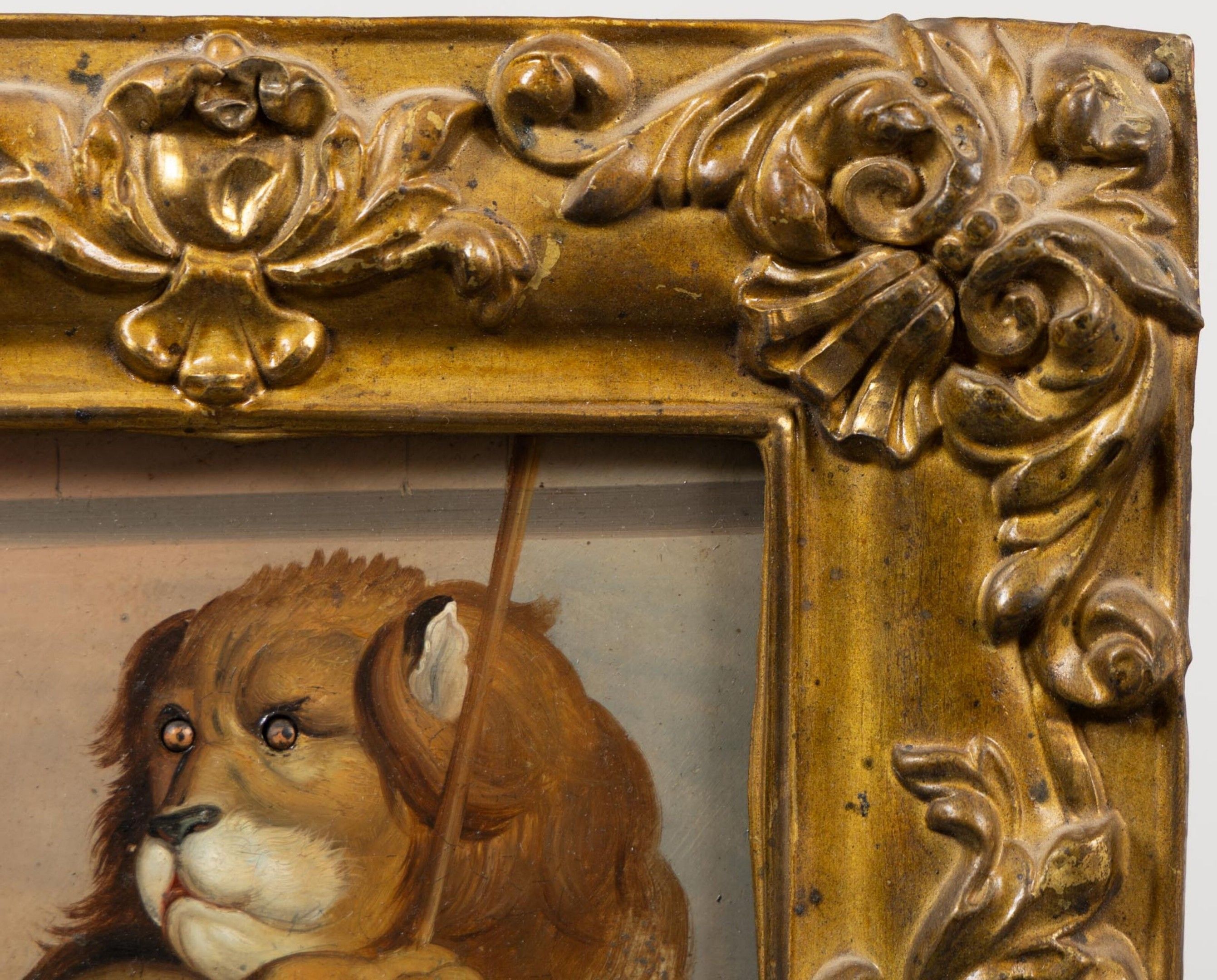 In a repoussé copper frame.