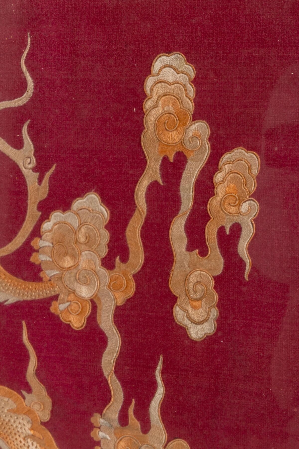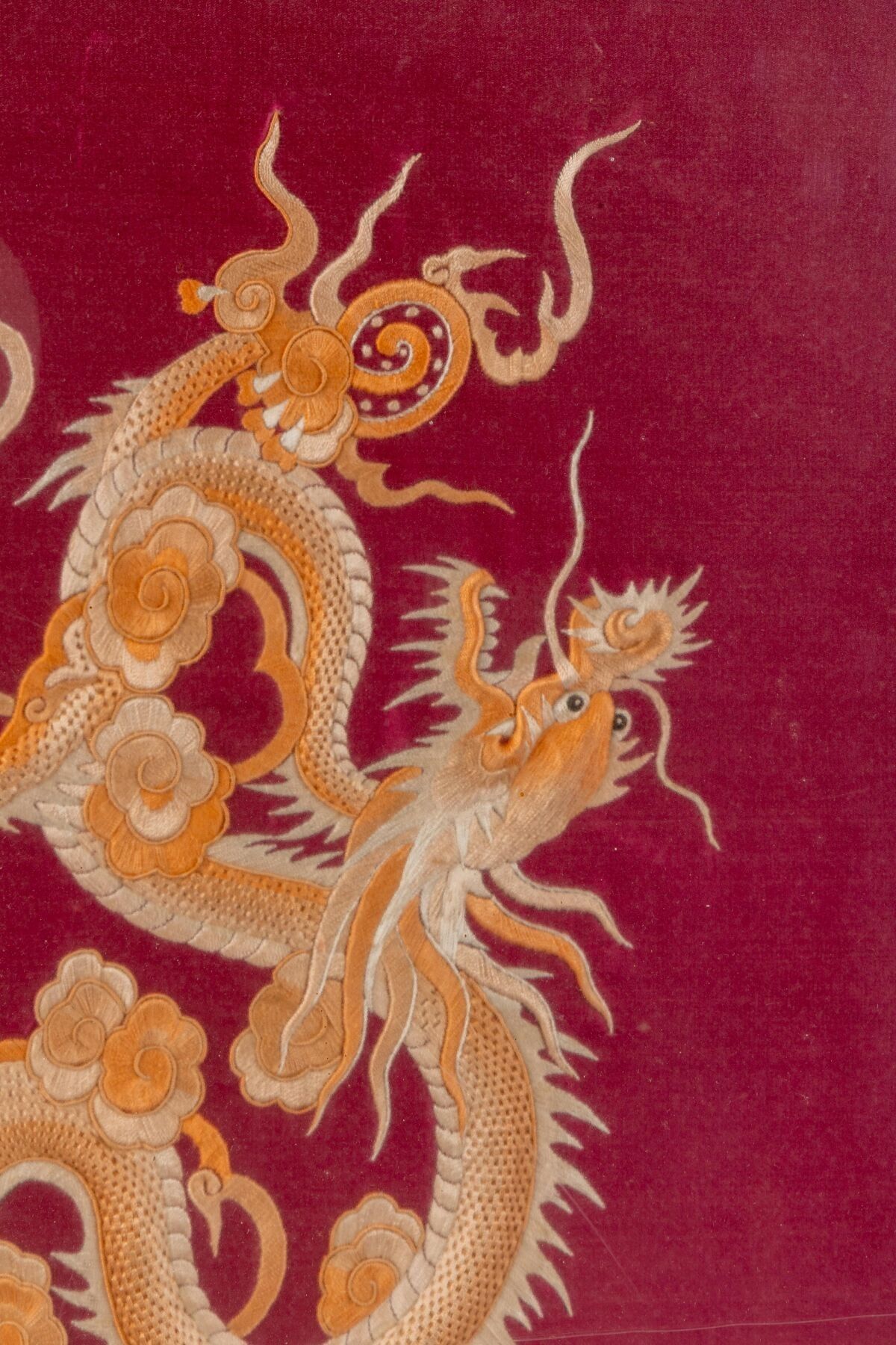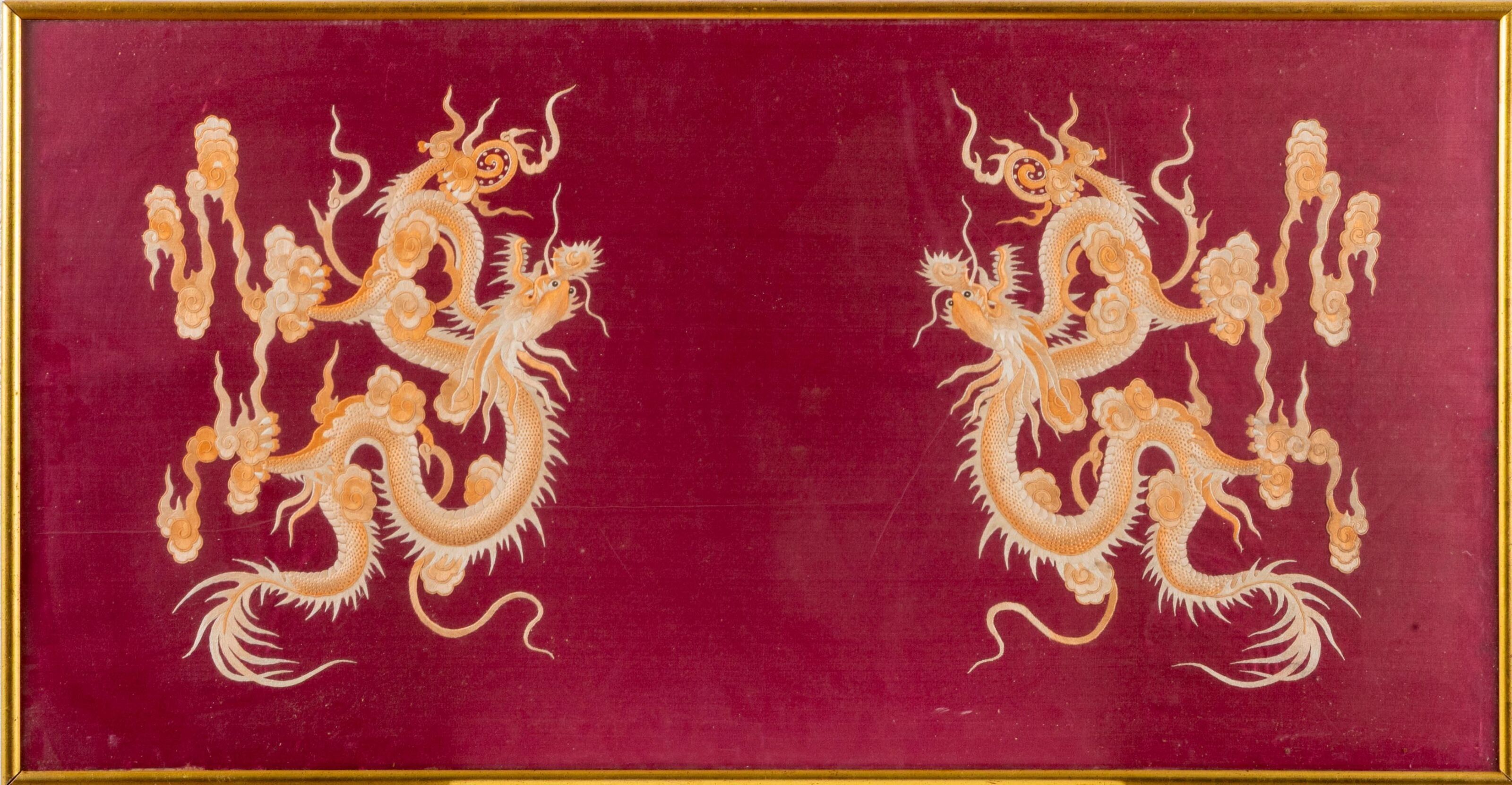CHINA. Two embroidered fabrics, one decorated with dragons o…