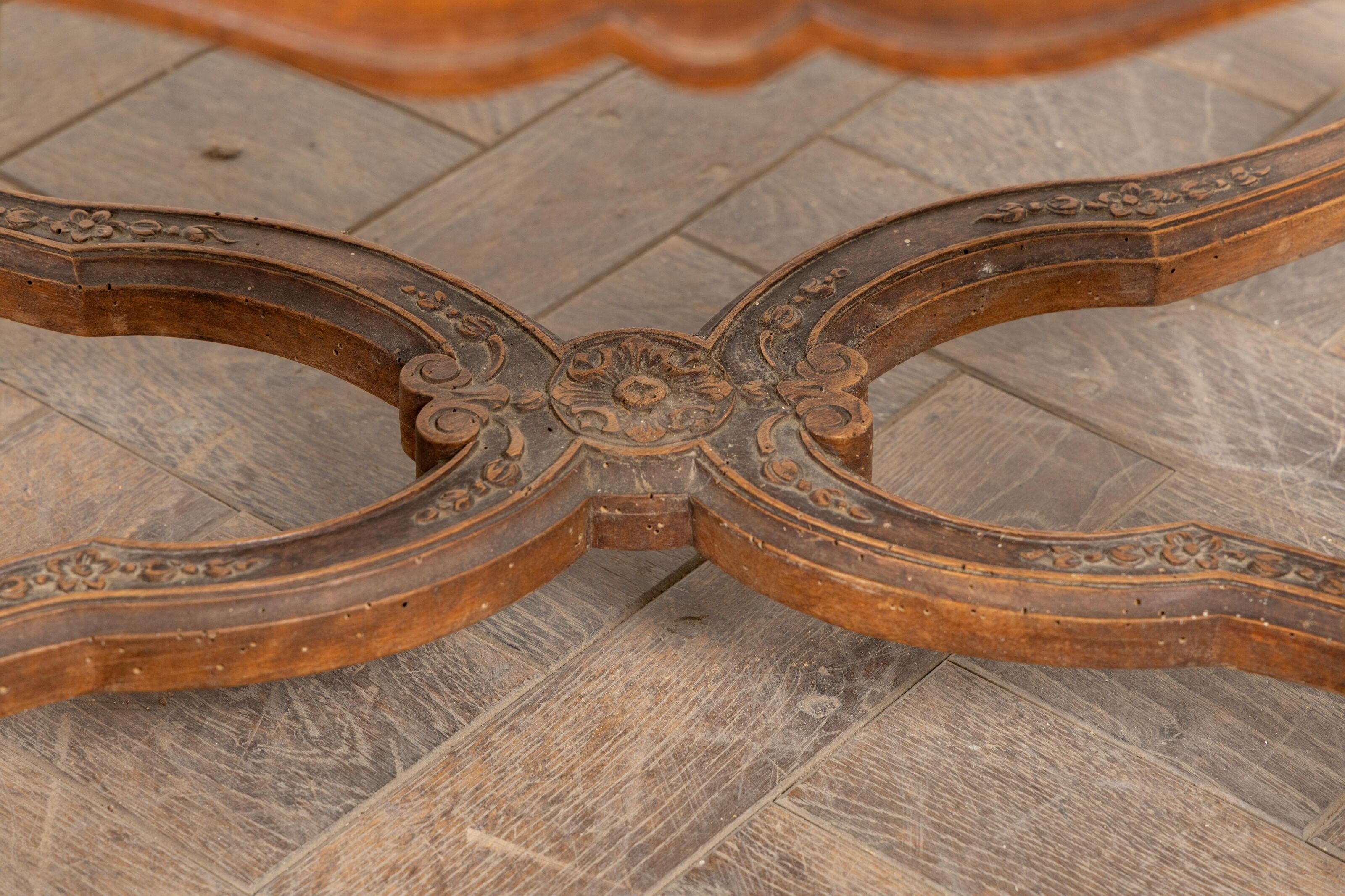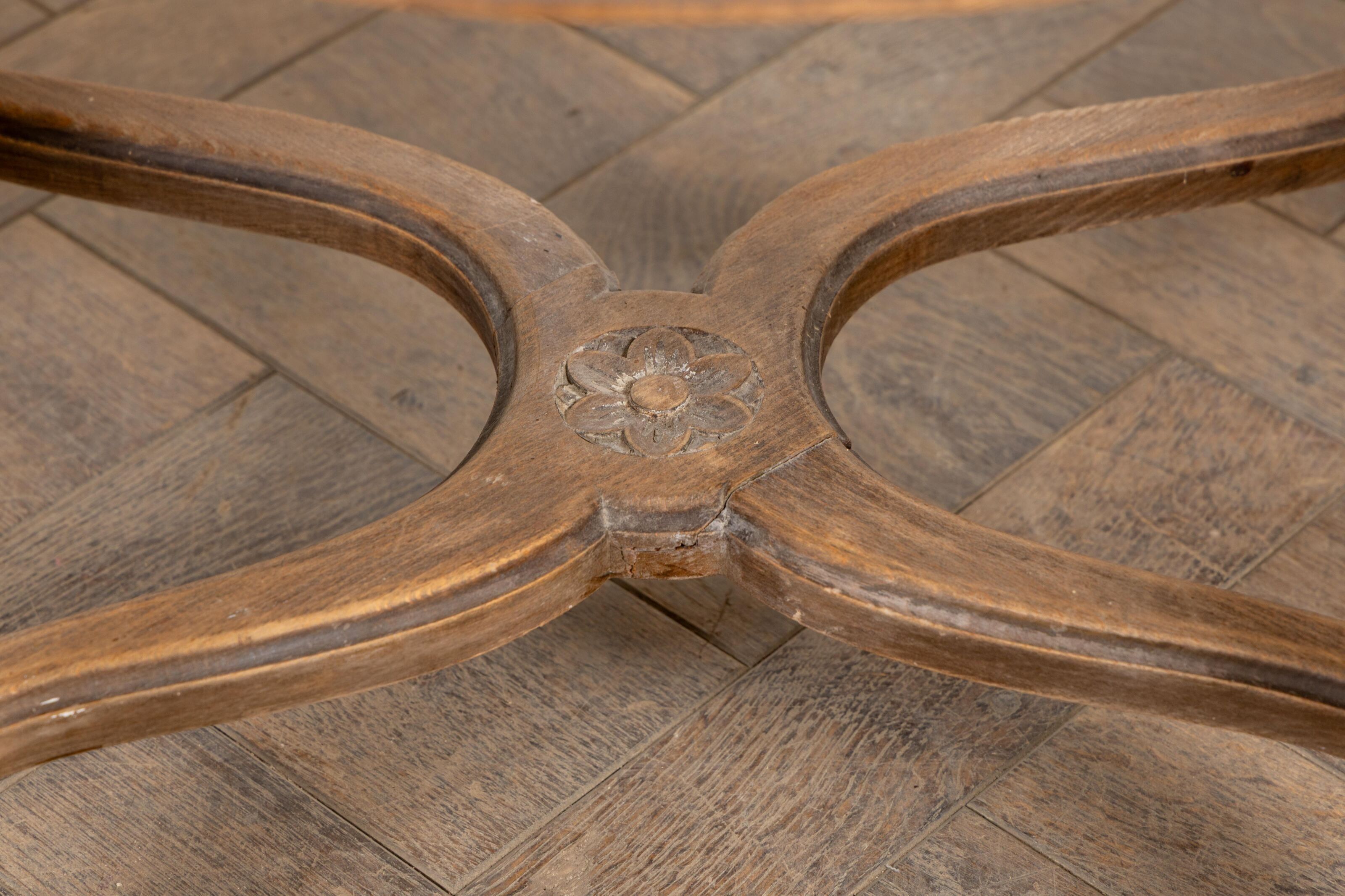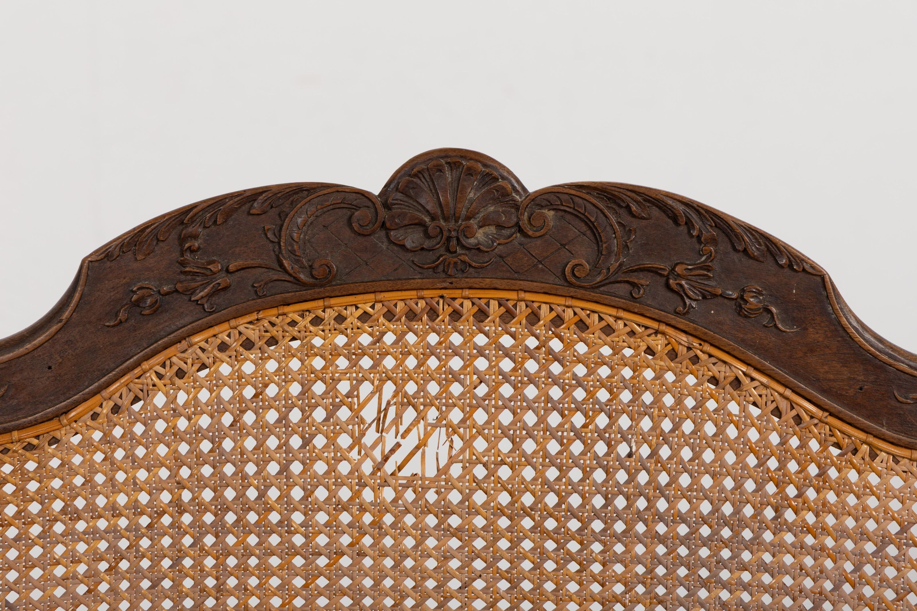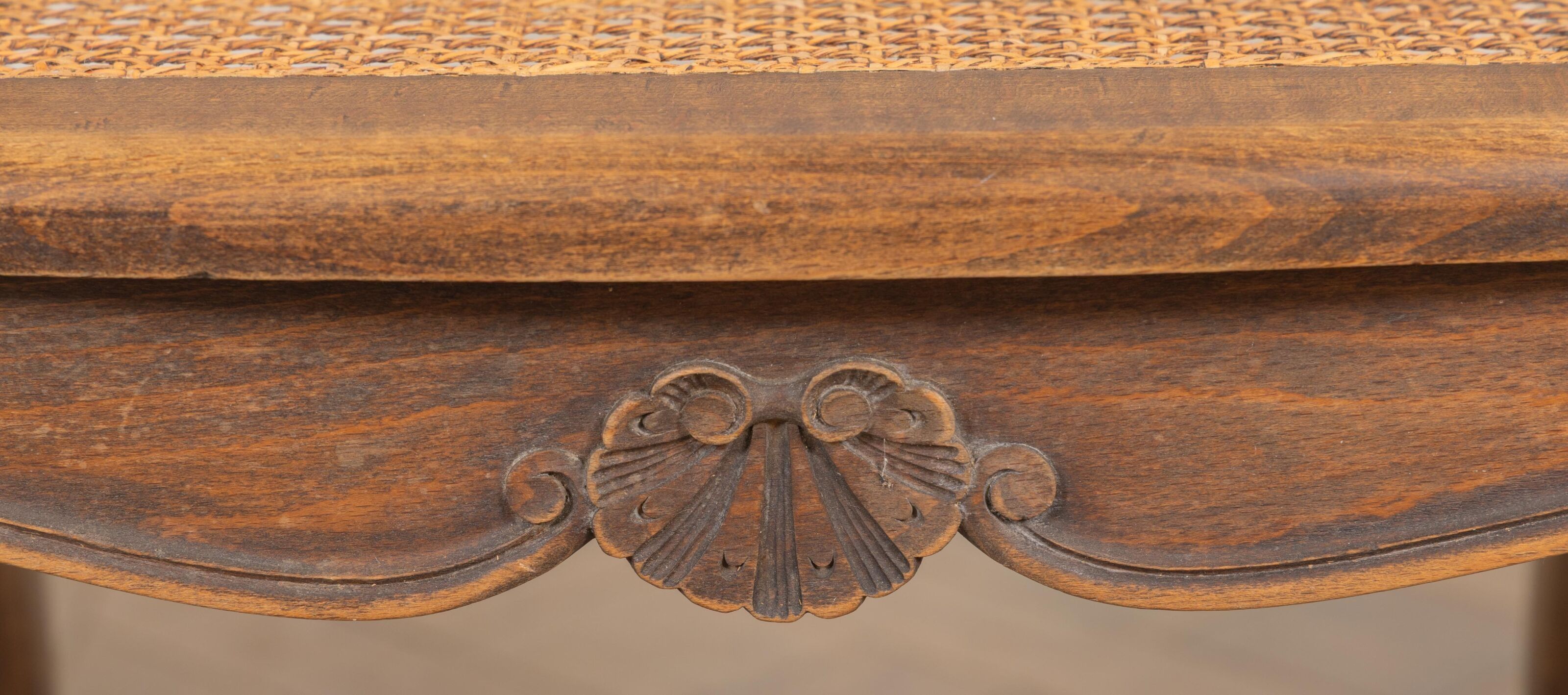 Set of five moulded and carved wooden caned armchairs, comprising two pairs and a single armchair.