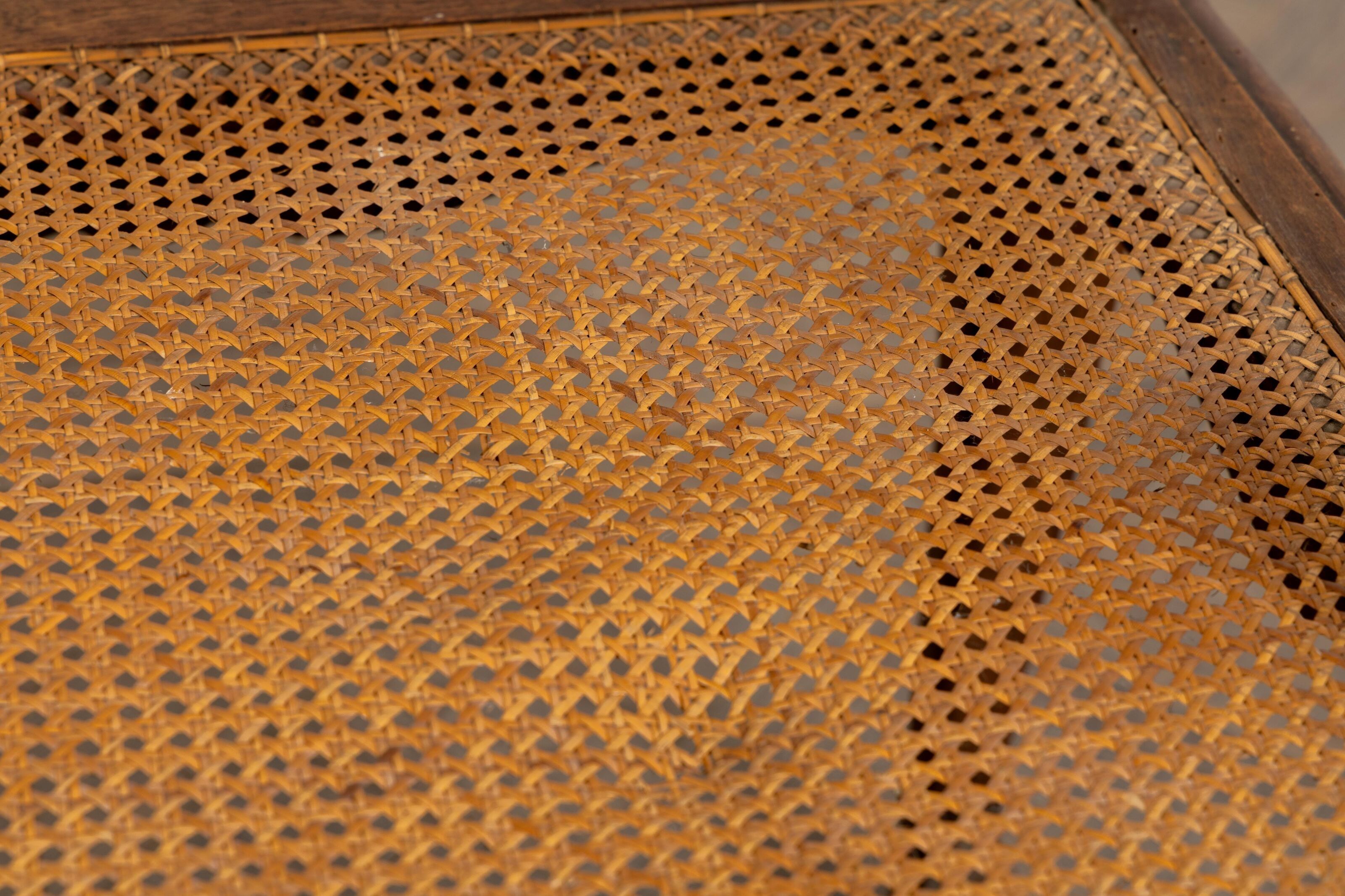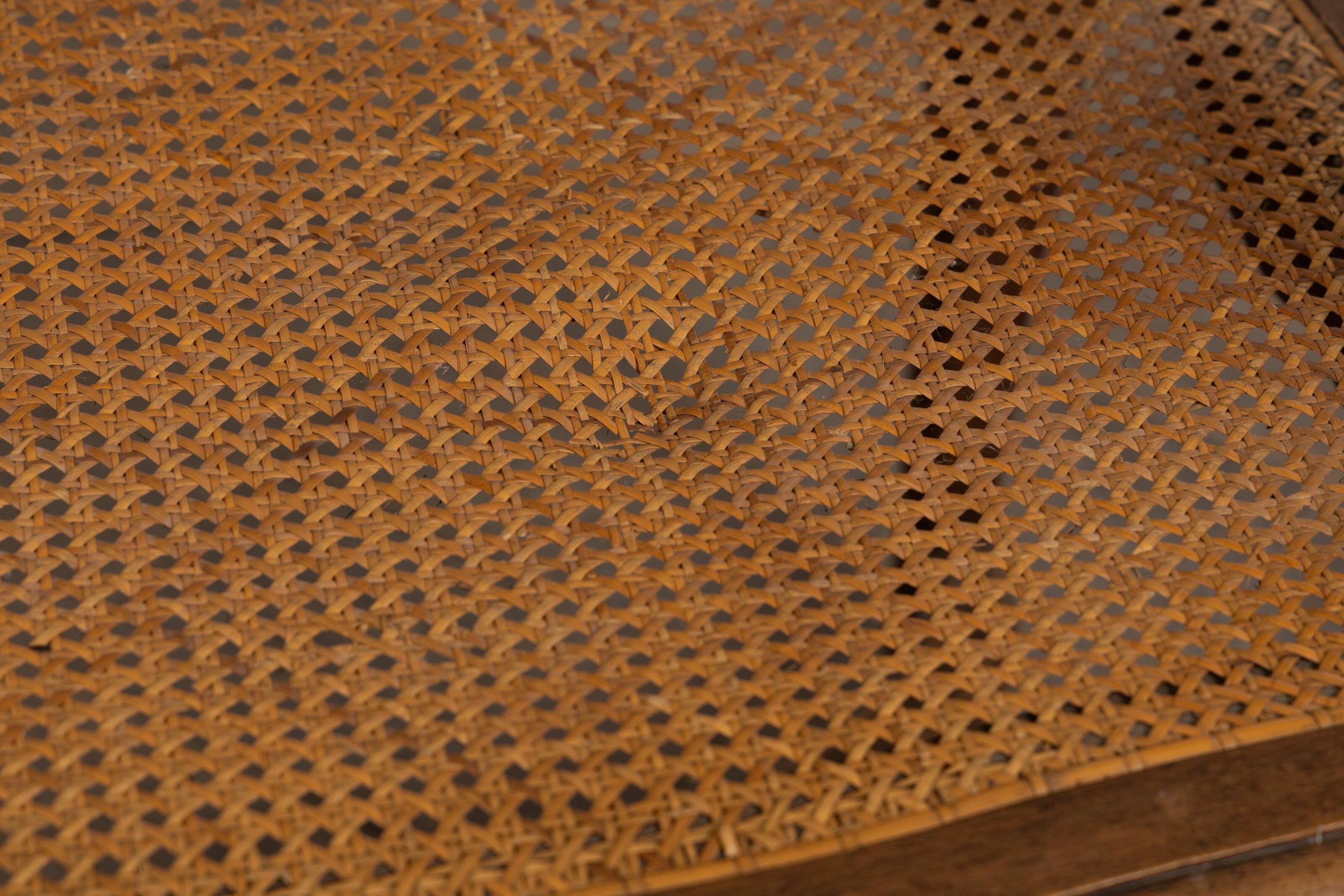 H_95.5 cm W_64.5 cm D_60 cm to H_100.5 cm W_59.5 cm D_64 cm, one with an accident to the caning on the back and seat.