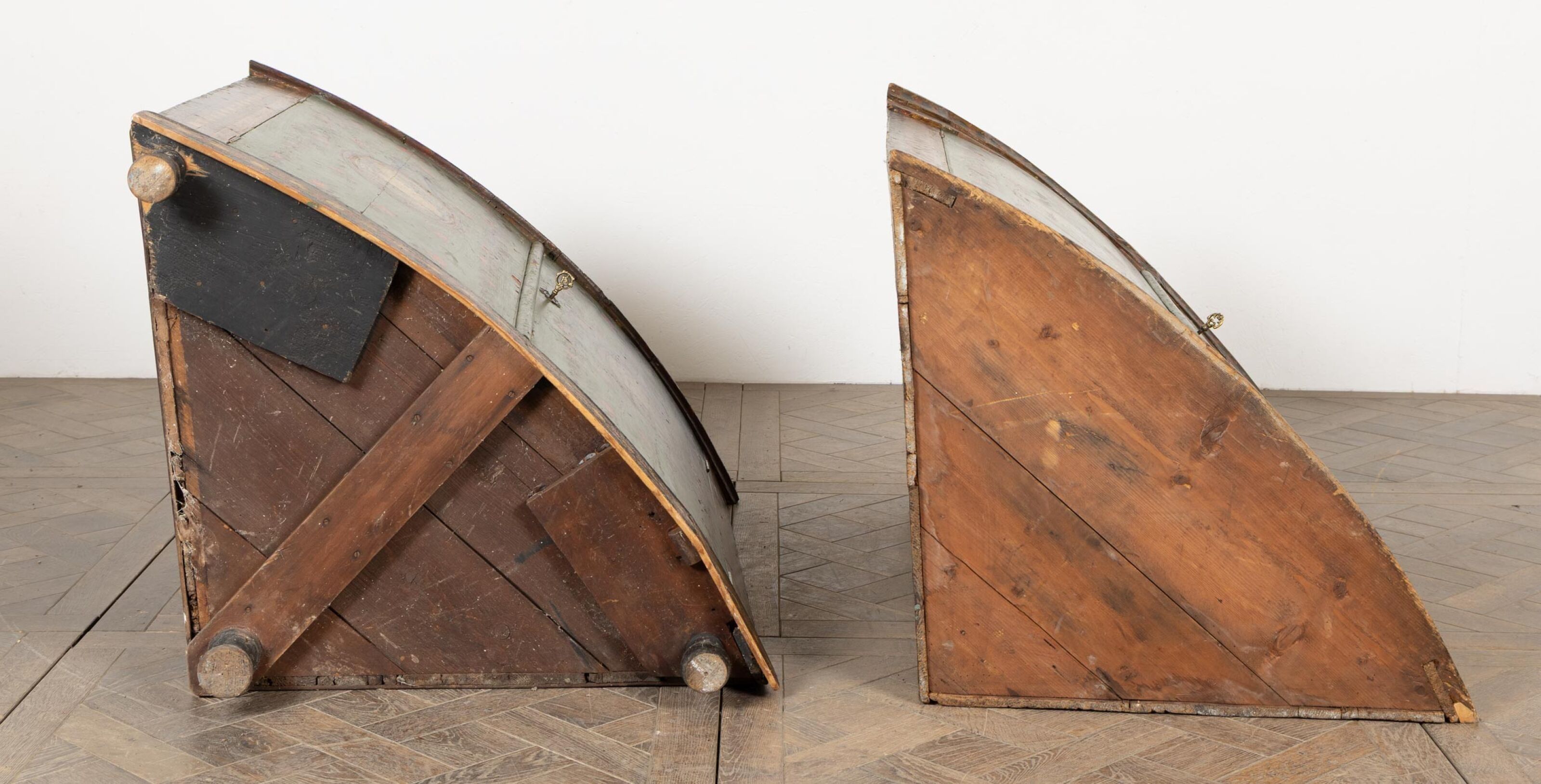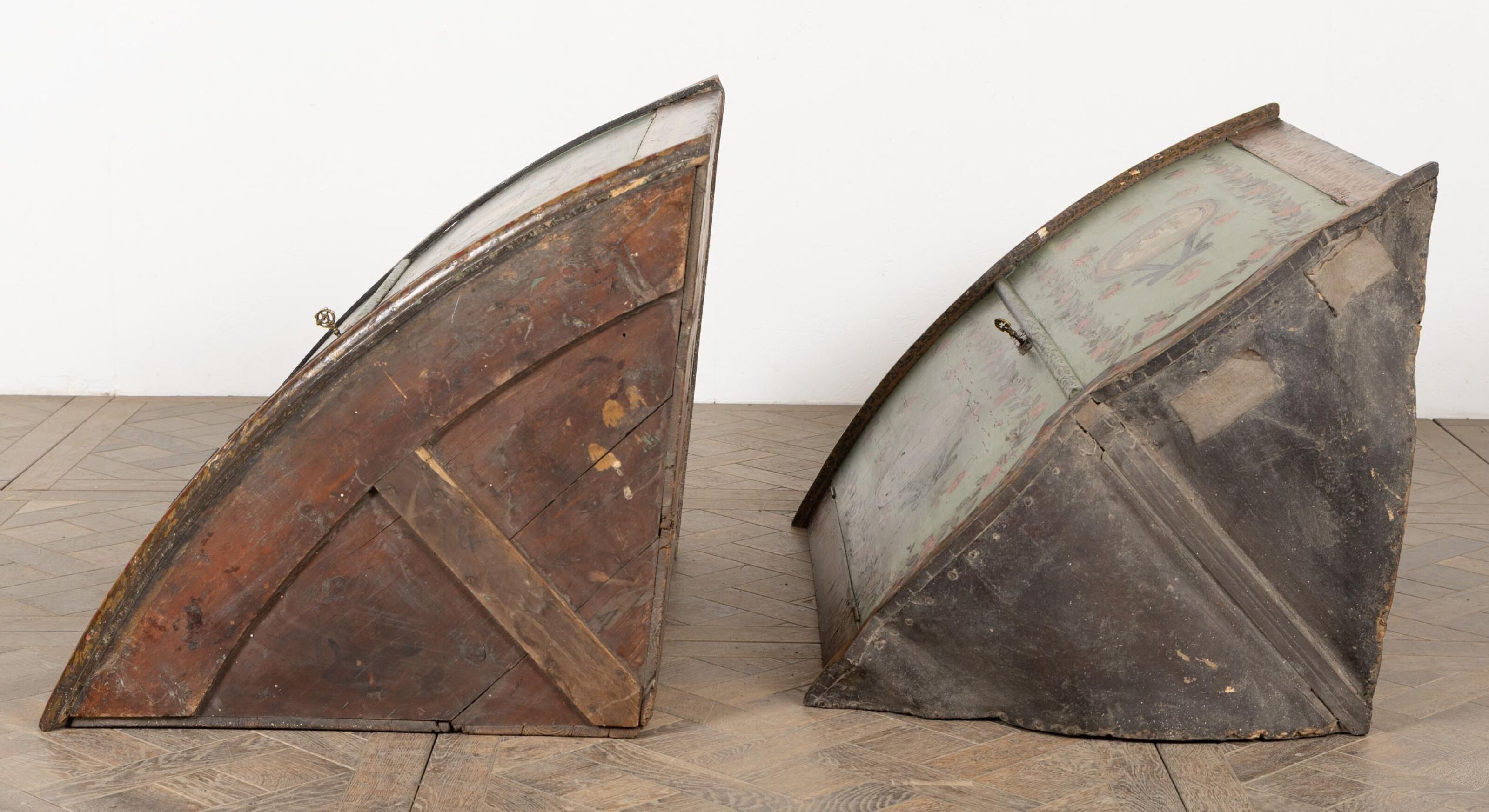 A two-part moulded wooden cove with painted decoration of la…
