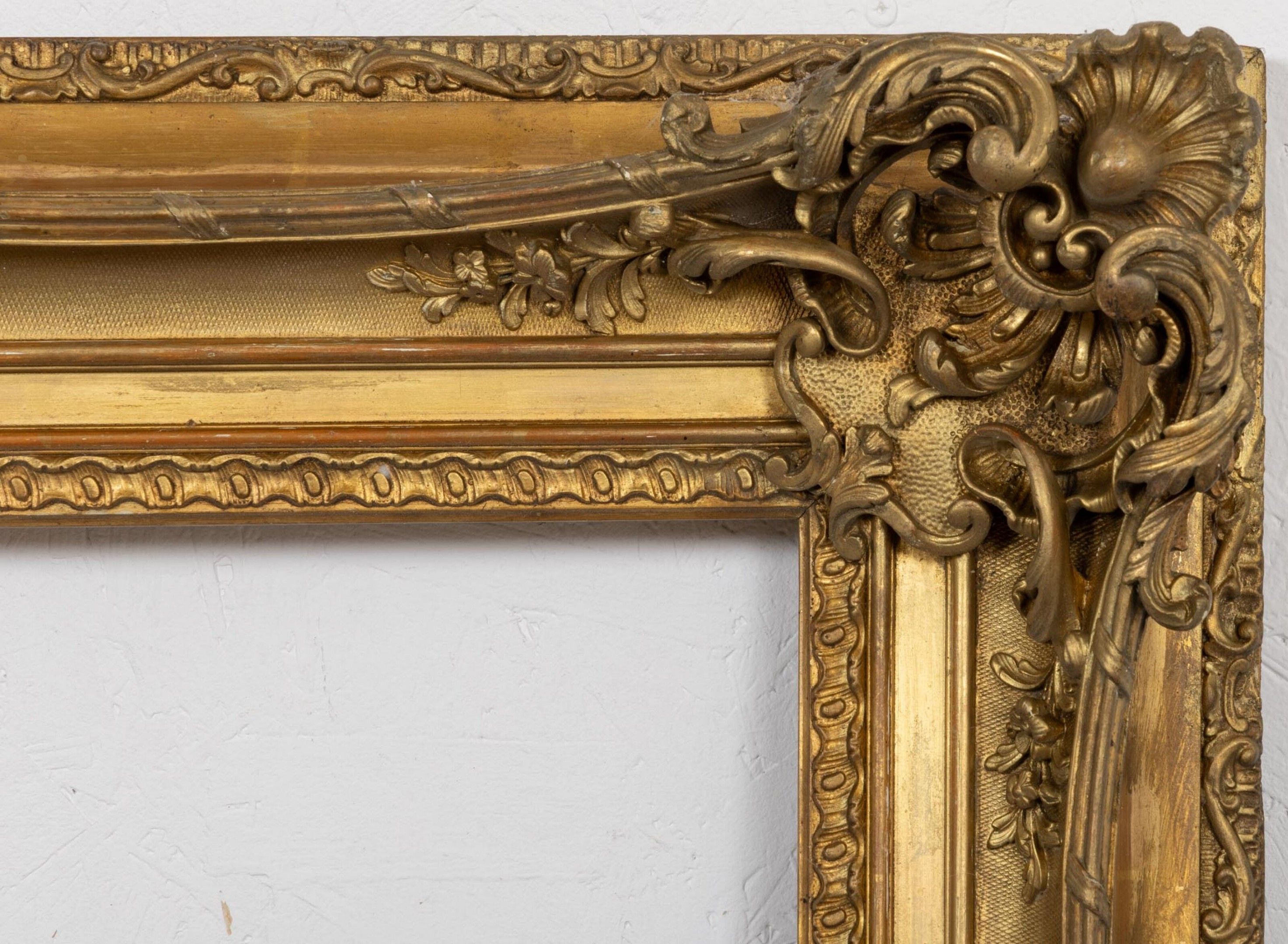 A large gilded stucco and wood frame.