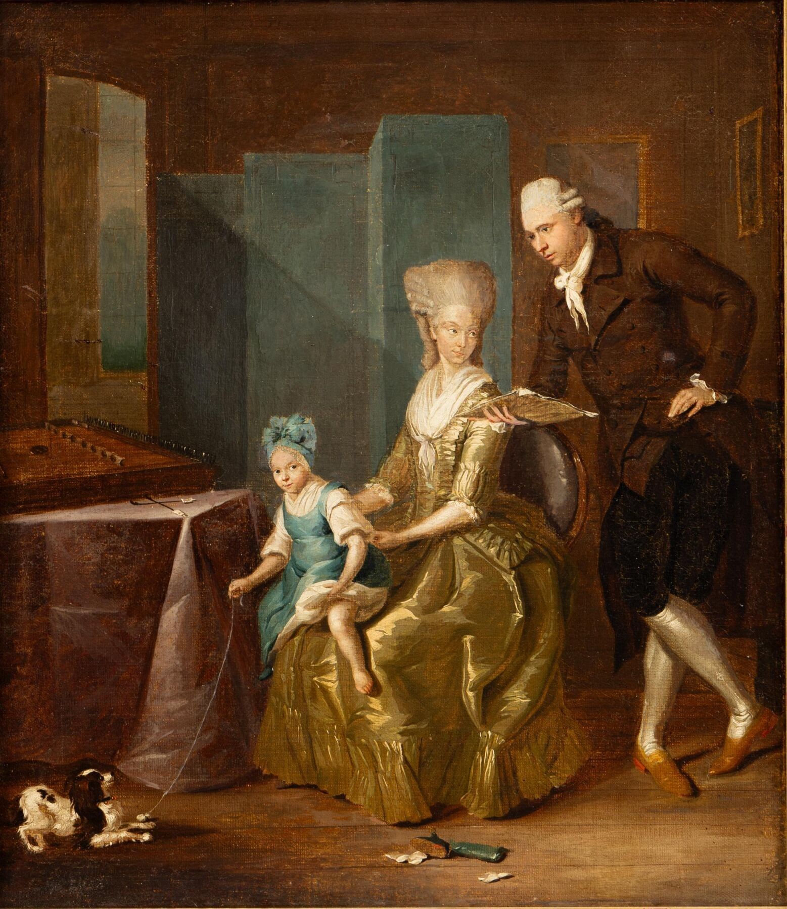 Family scene with dog and screen.