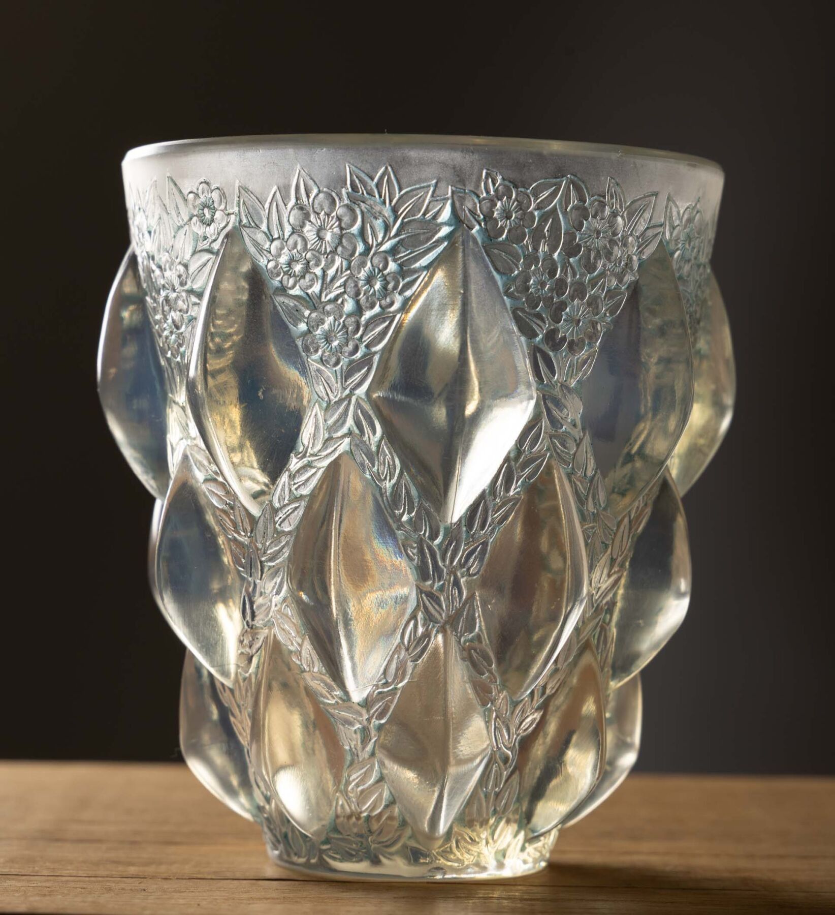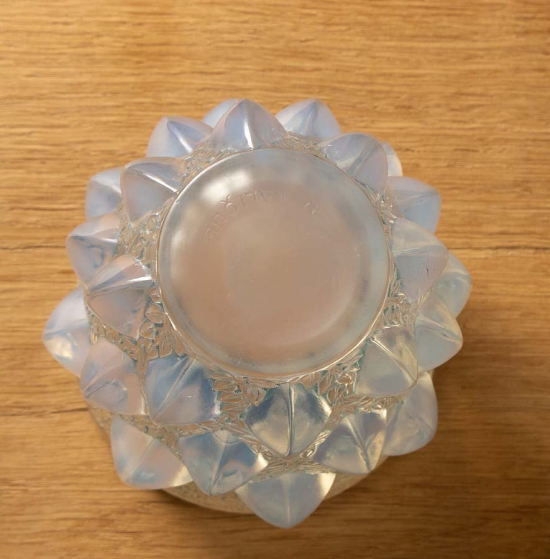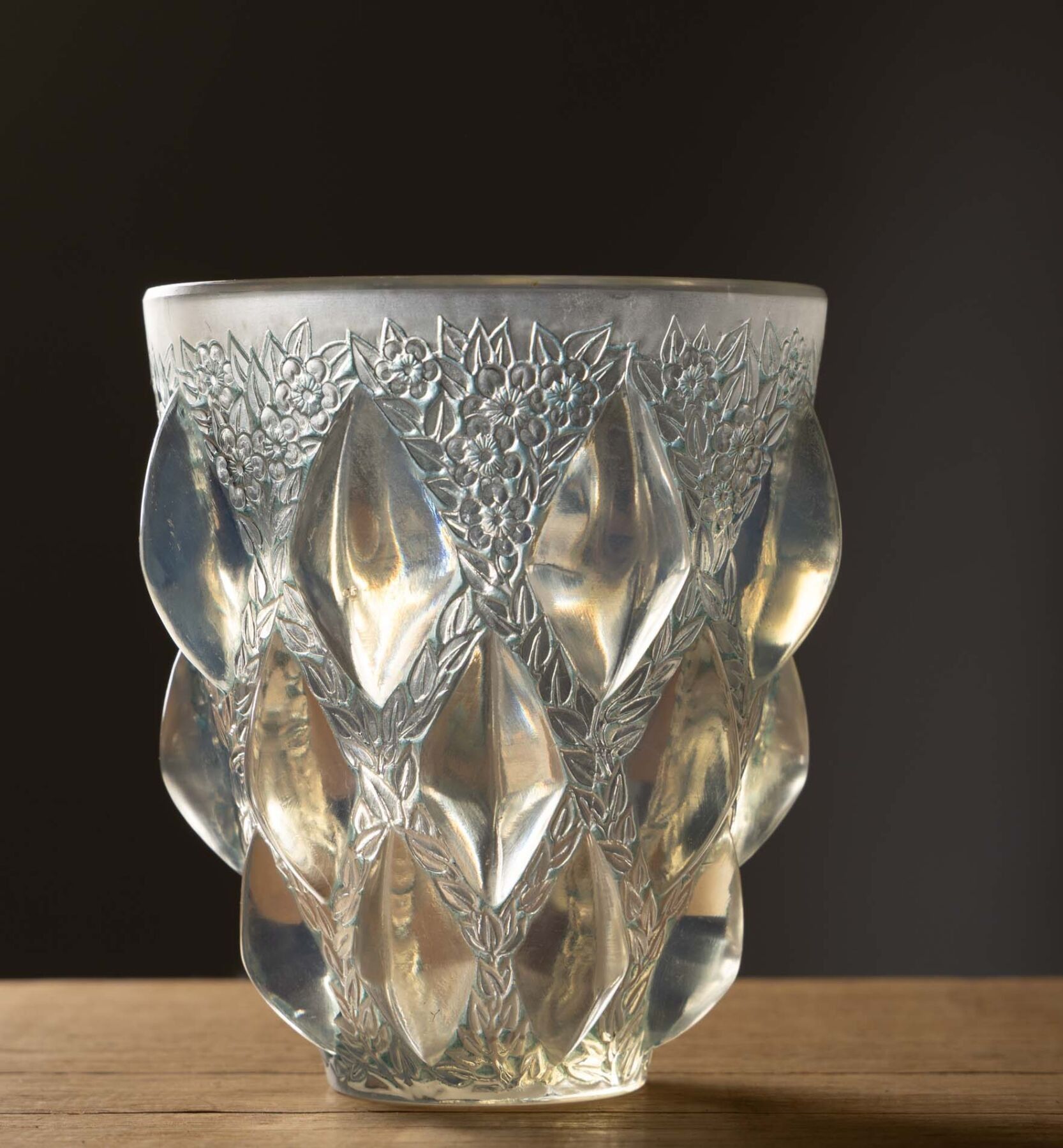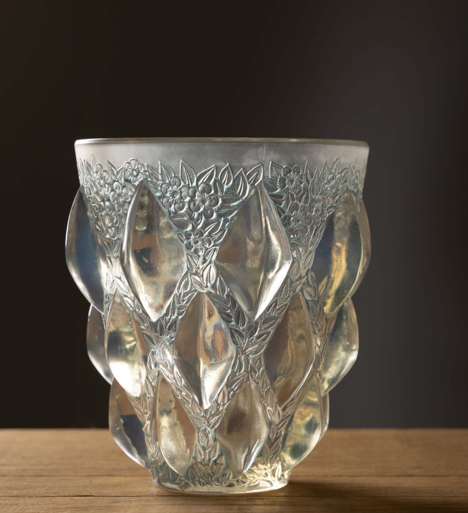 René LALIQUE. Rampillon, the model created on 8 March 1927. Pressed moulded glass vase, partially frosted. Signed R. Lalique on the reverse. H_12,8 cm D_12 cm