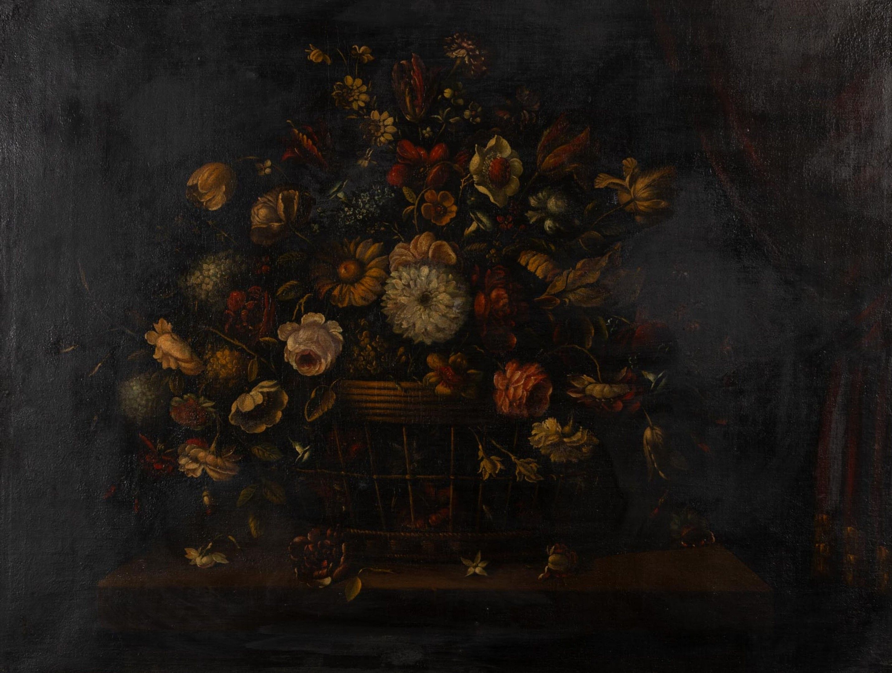 Oil on canvas, lined.