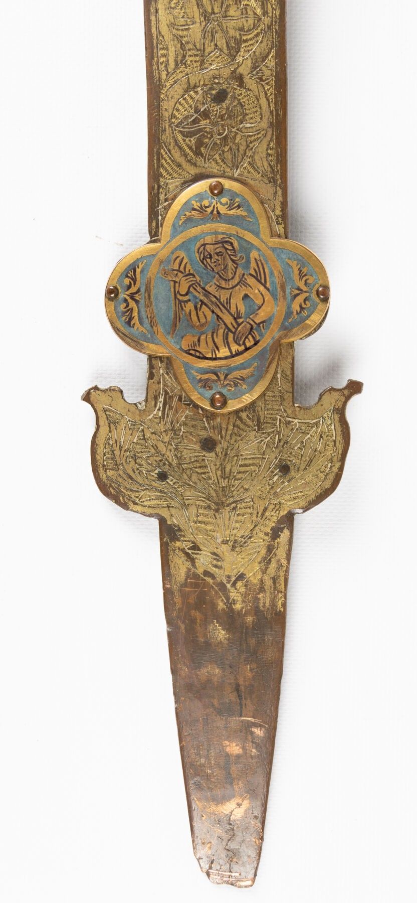 The decoration consists of engraved plant motifs that cover the entire surface of the cross on both sides.