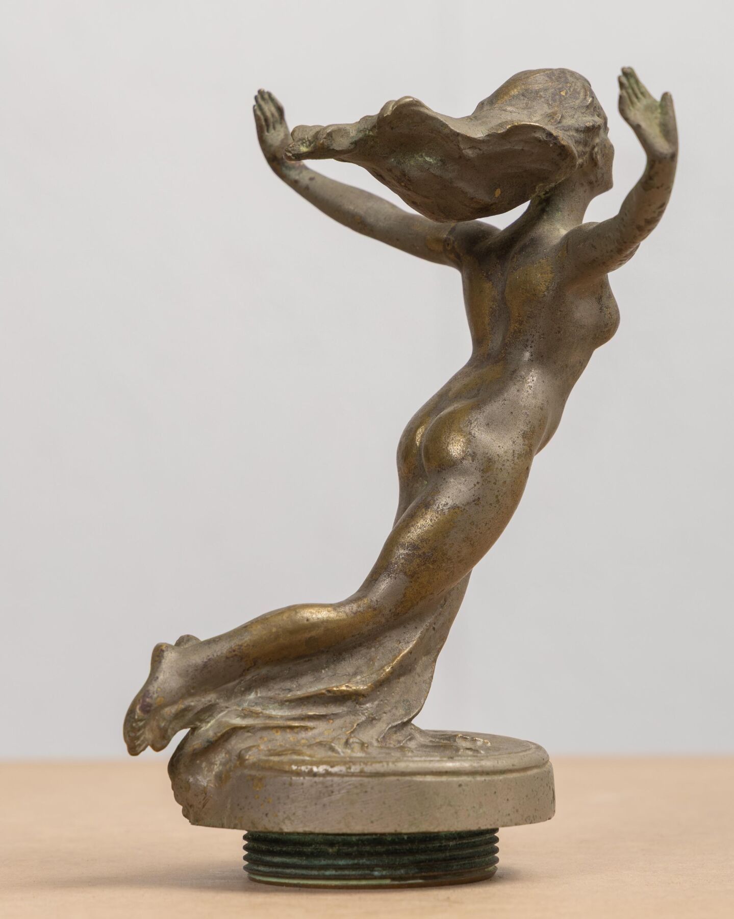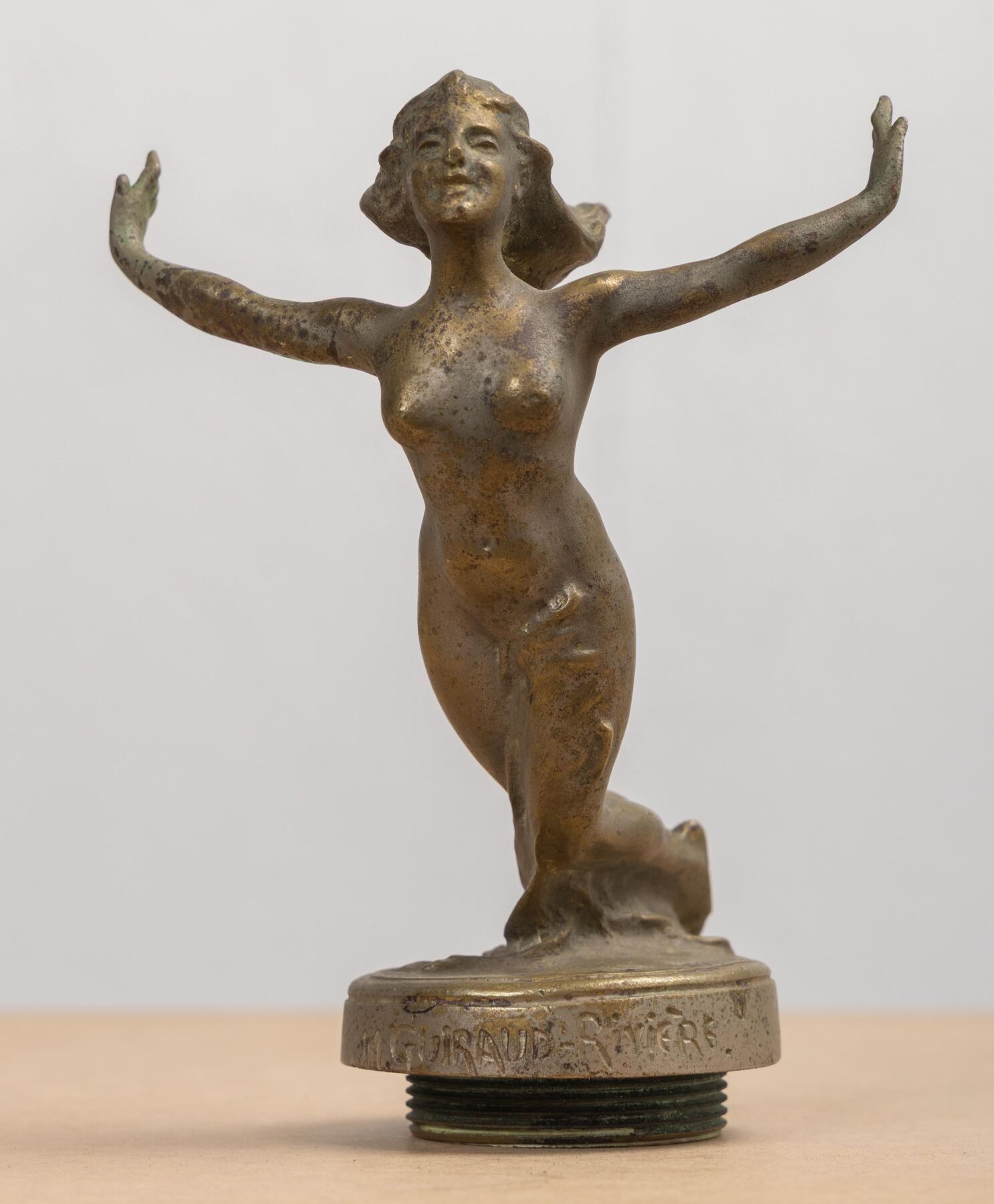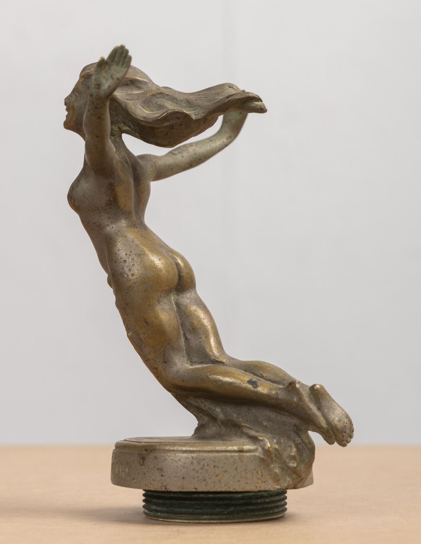 Automobile mascot featuring a nude woman with her arms outstretched.