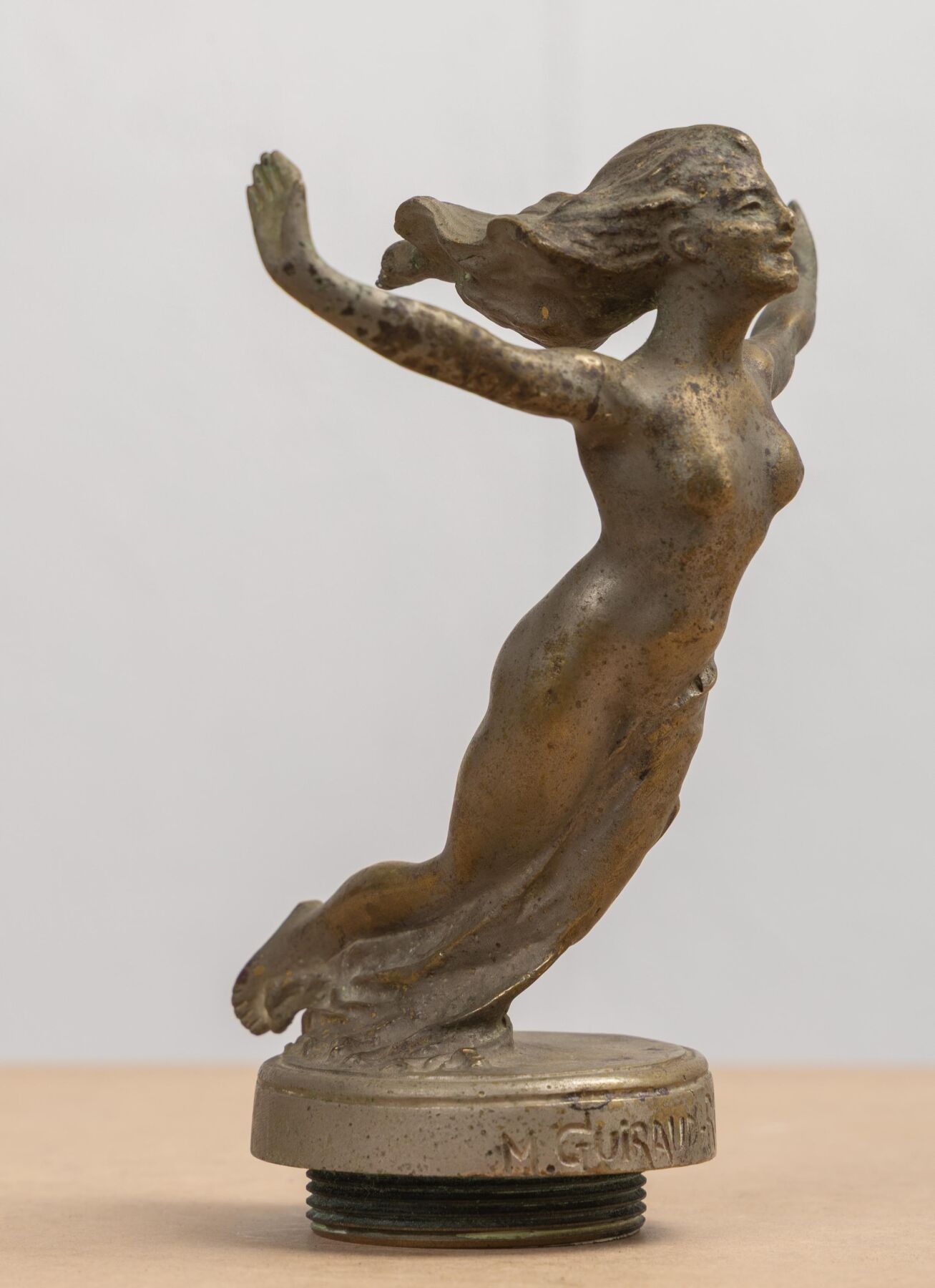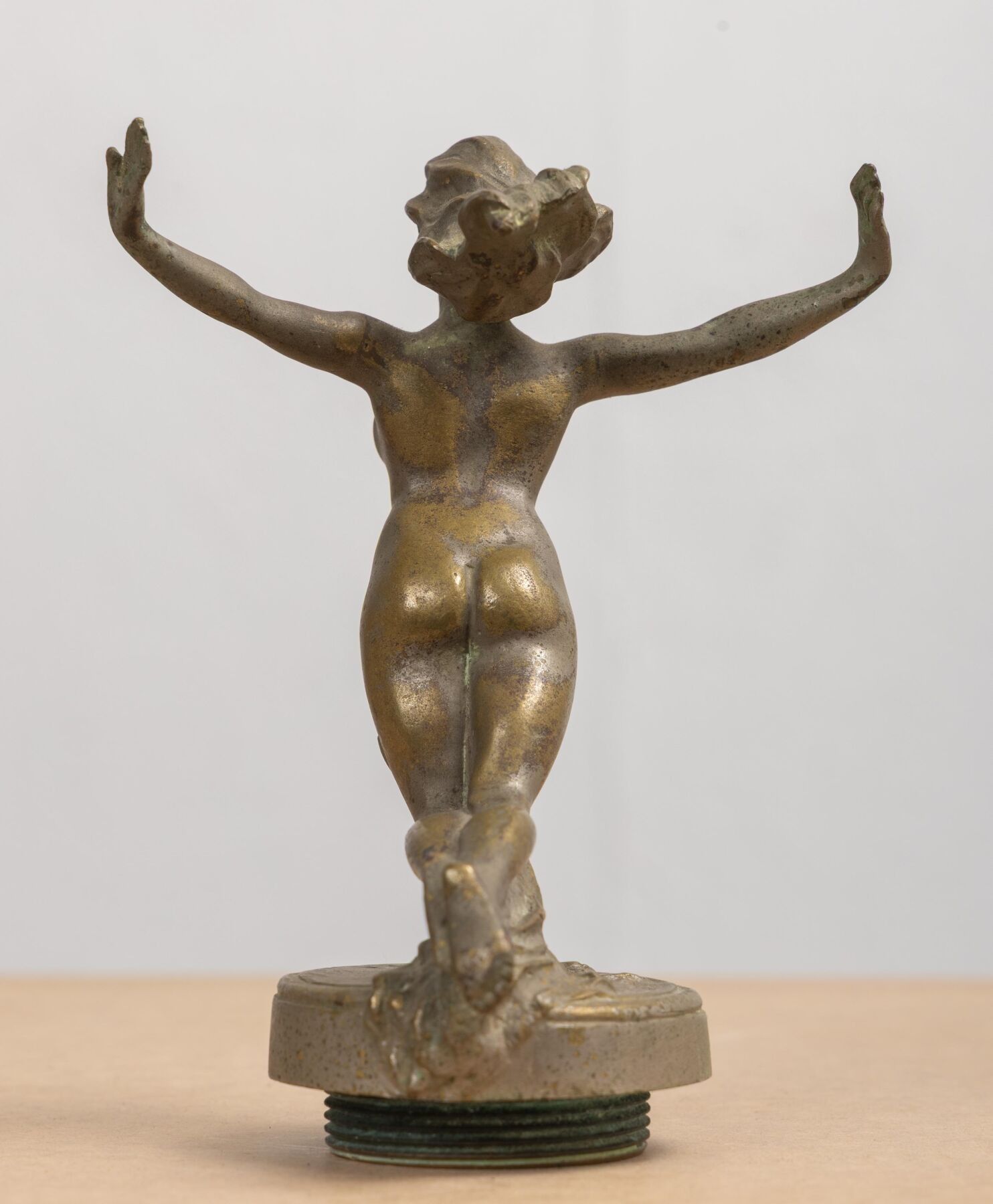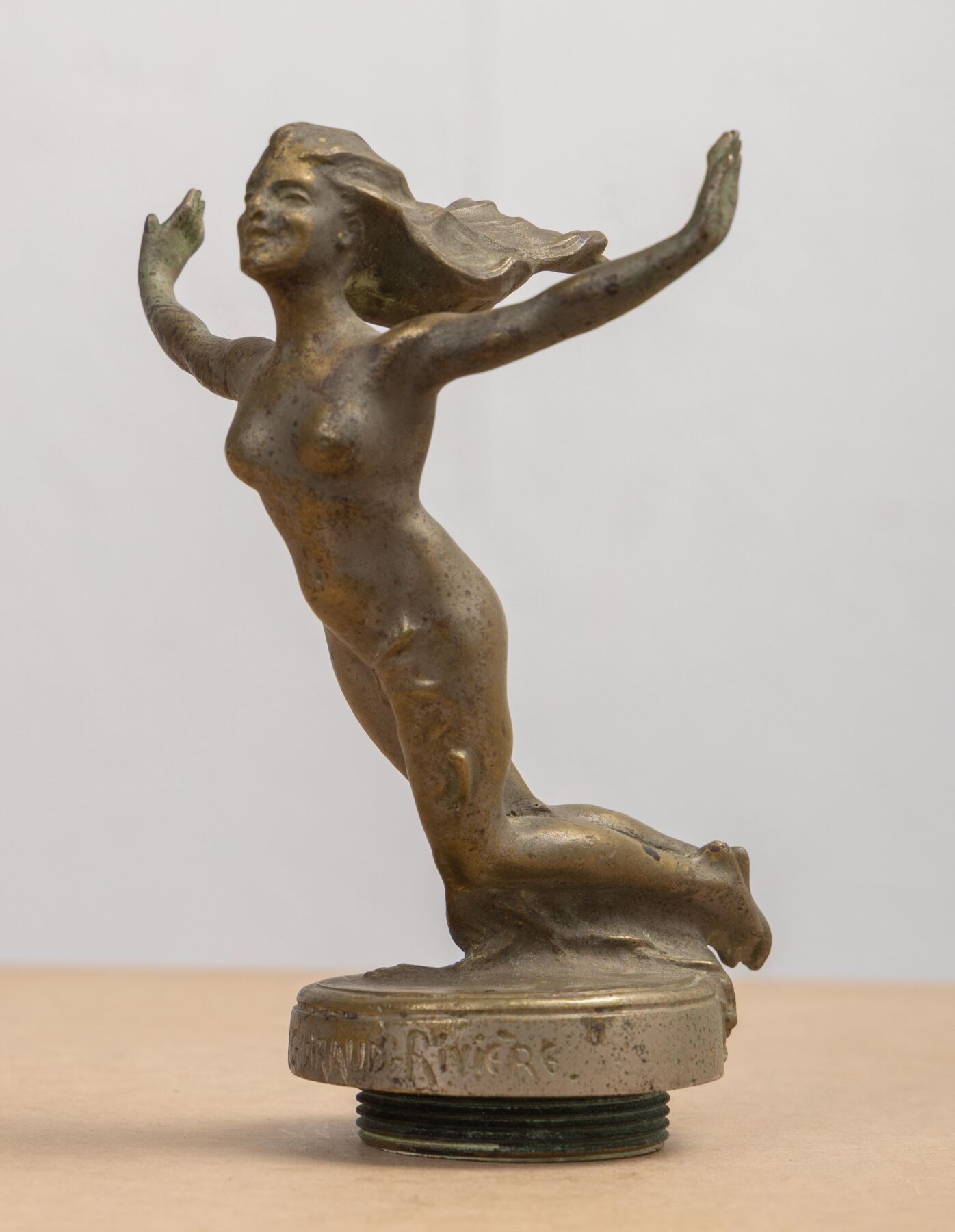 Automobile mascot featuring a nude woman with her arms outstretched.