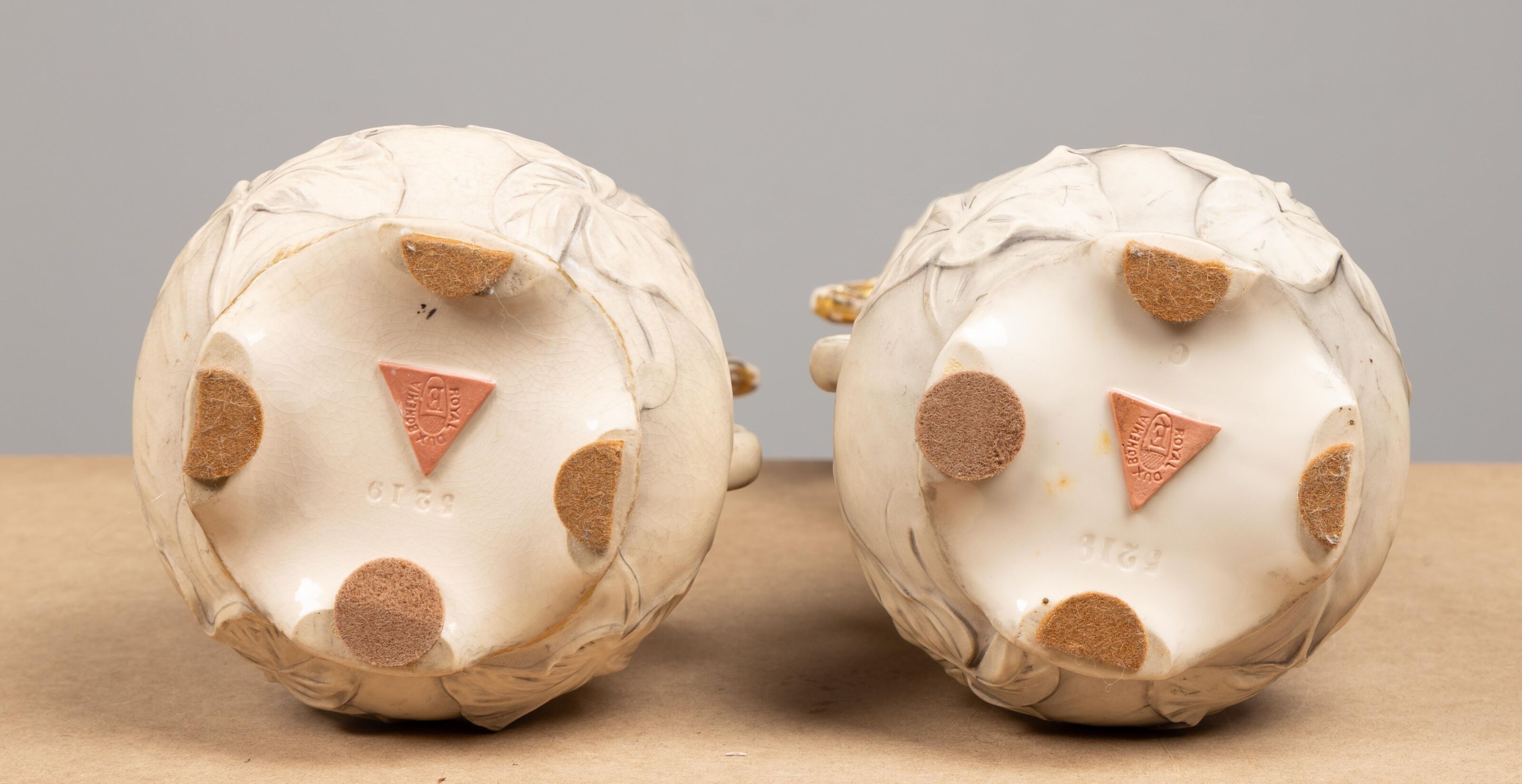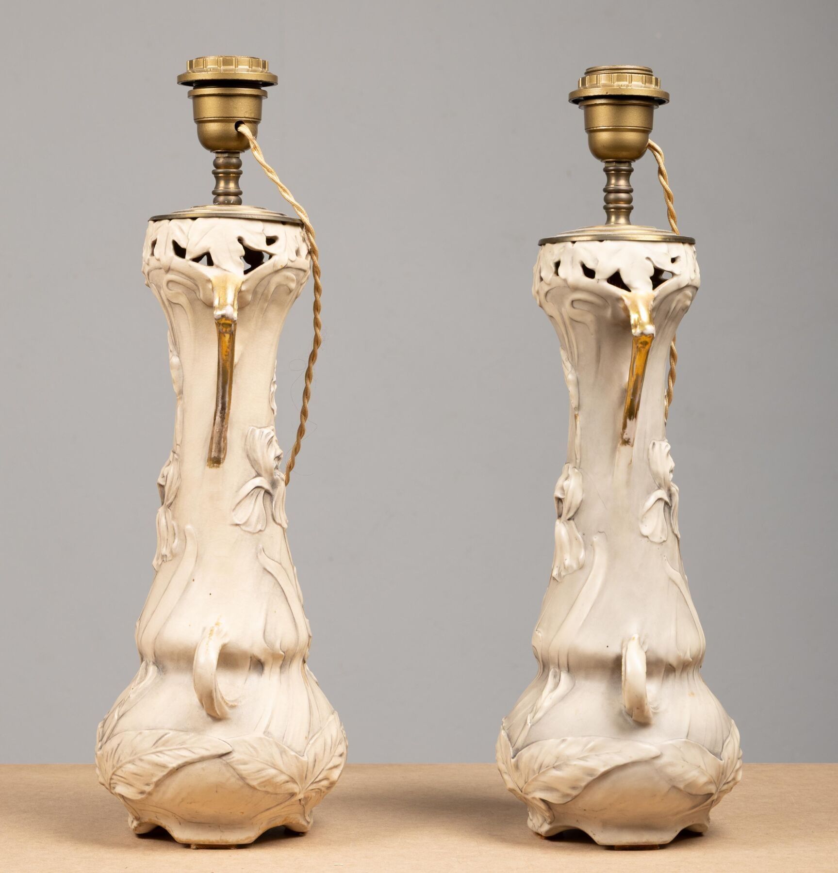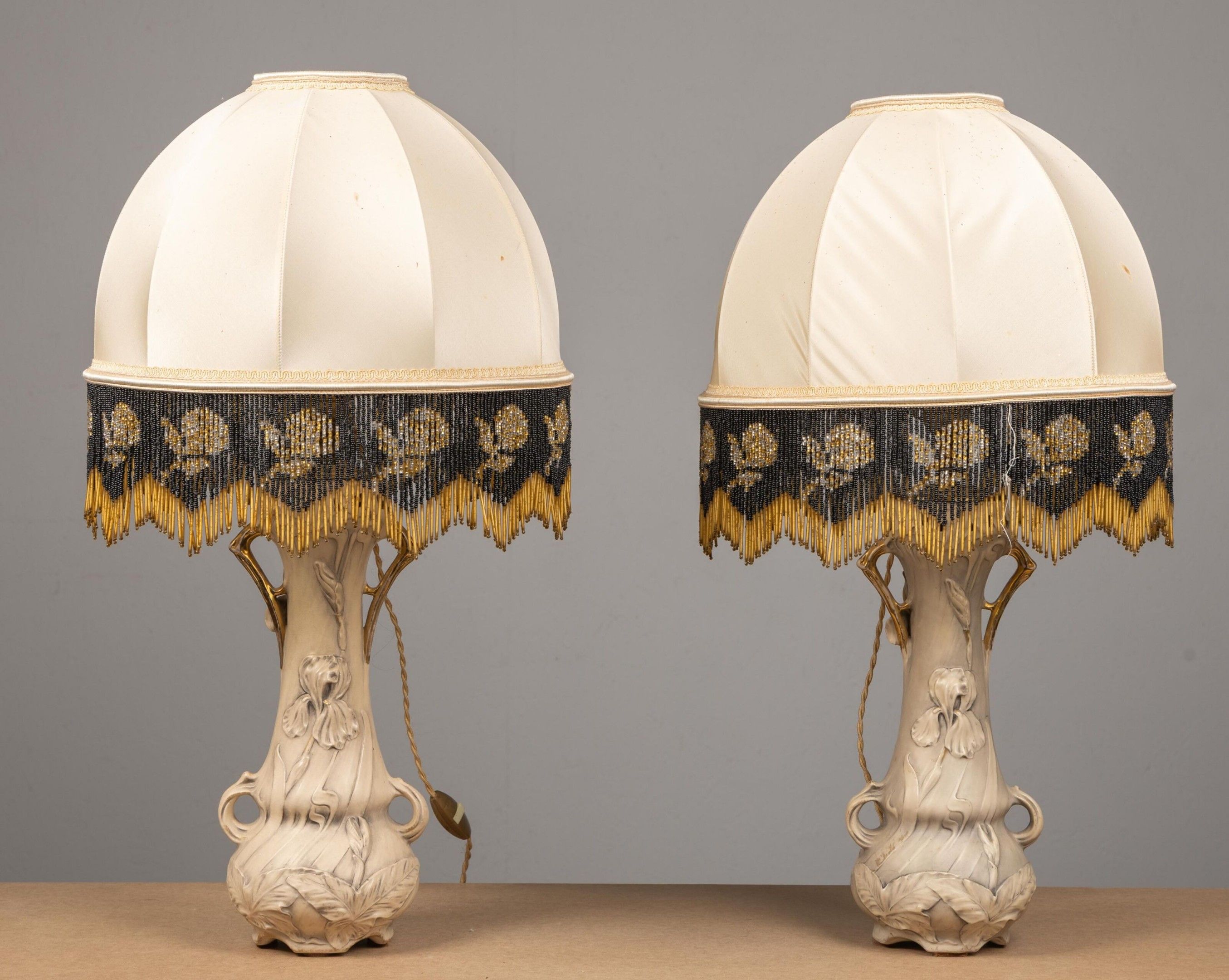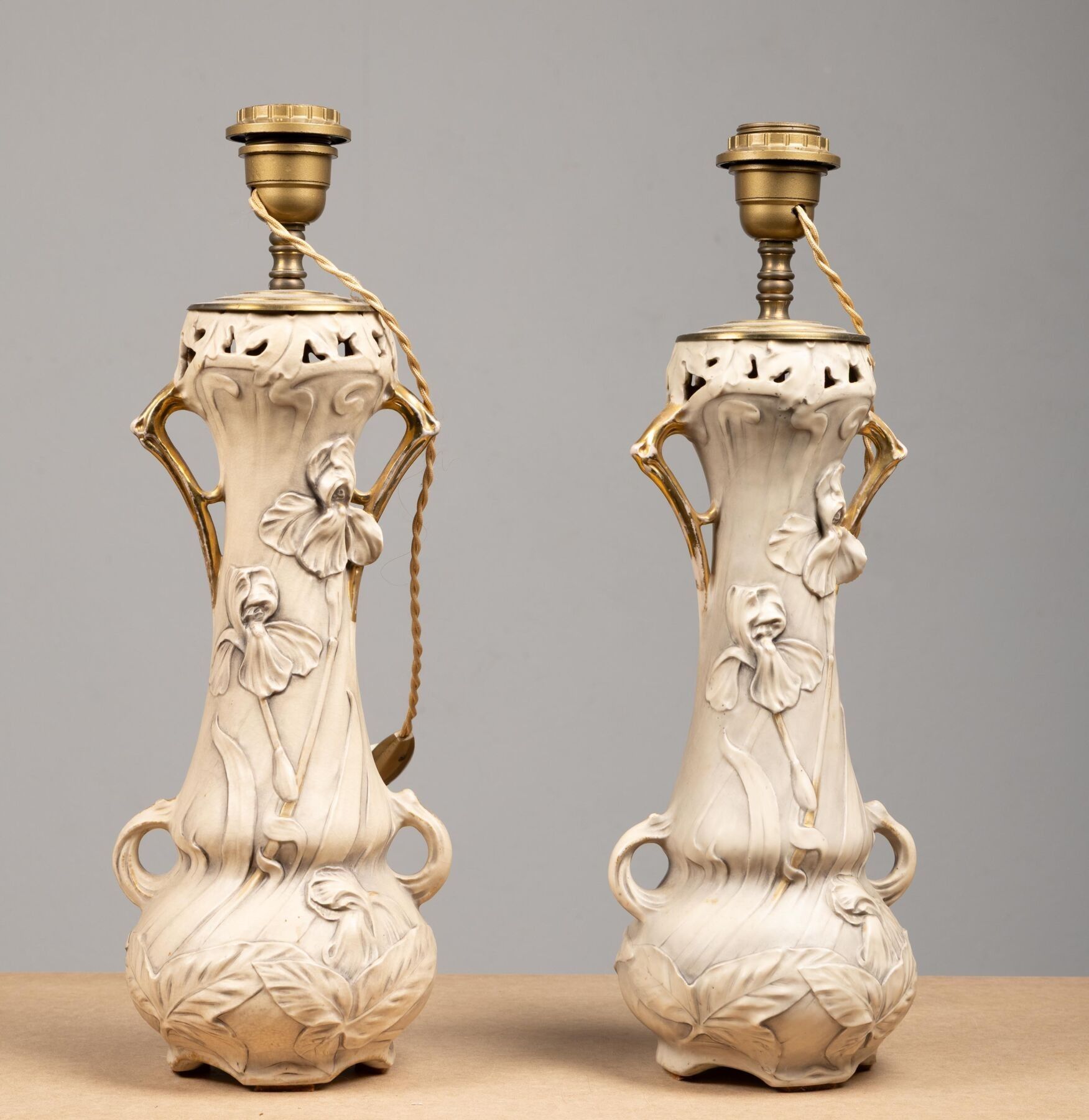 ROYAL DUX Pair of biscuit vases with iris decoration in reli…