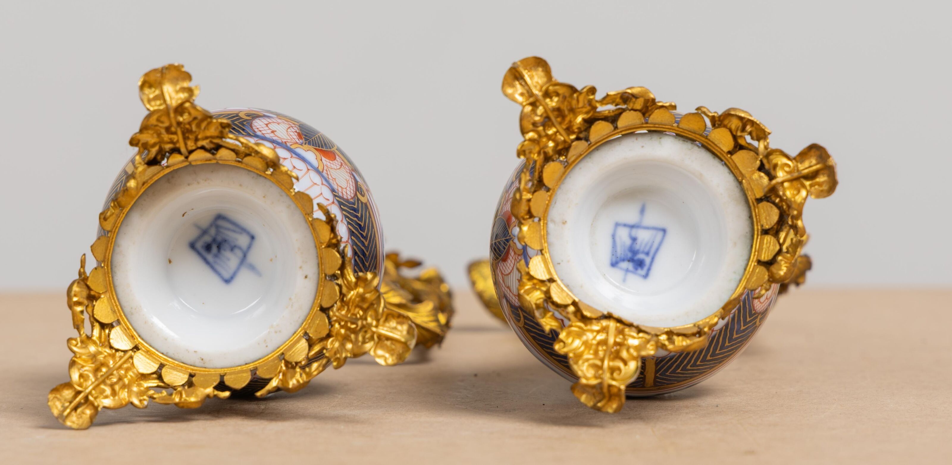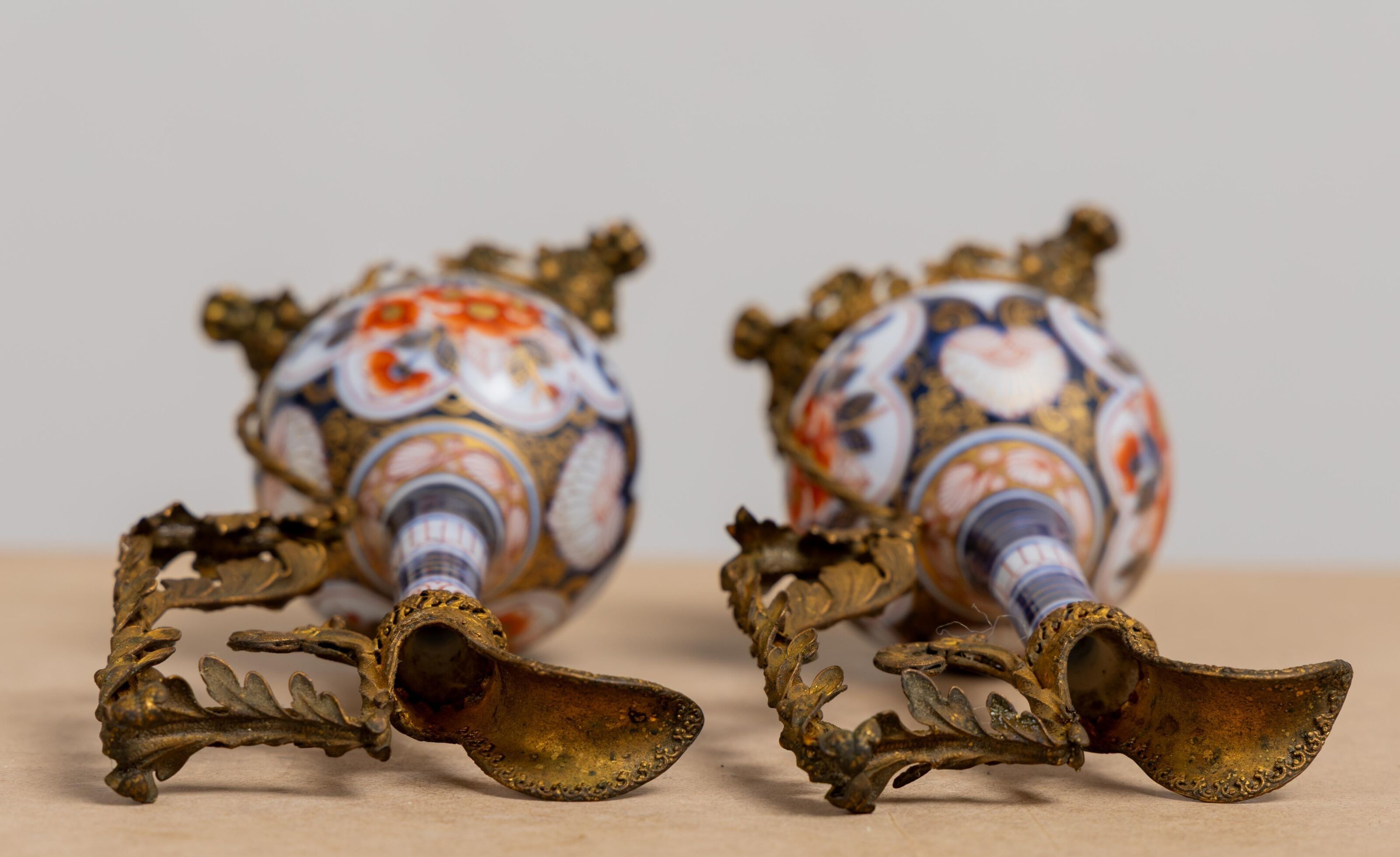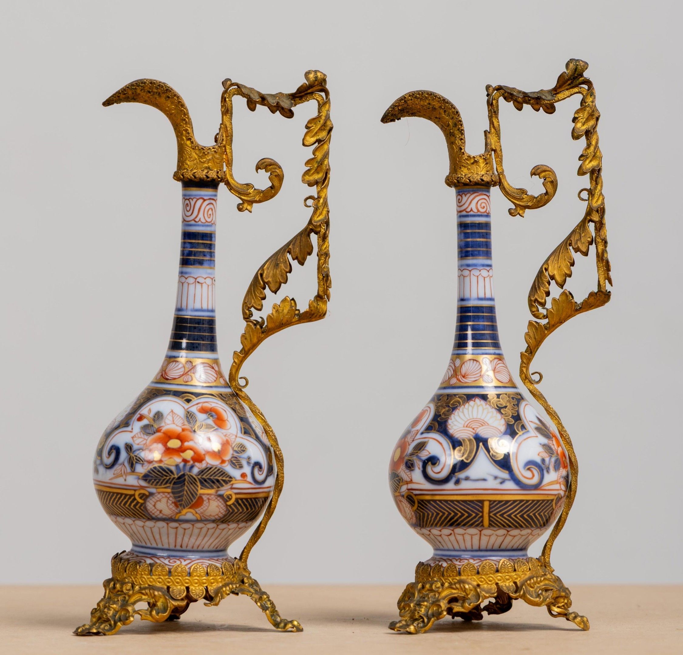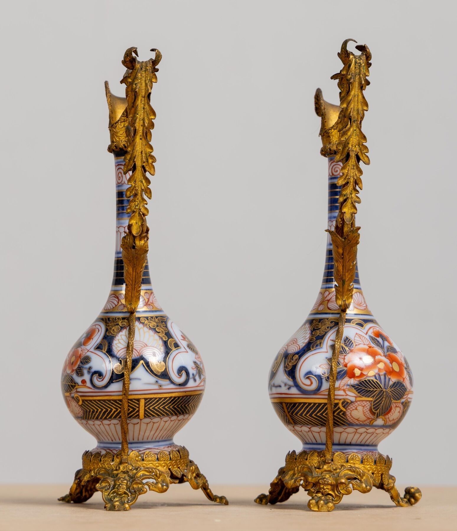 Pair of Bayeux porcelain vases, made by the widow Langlois, mounted as ewers.