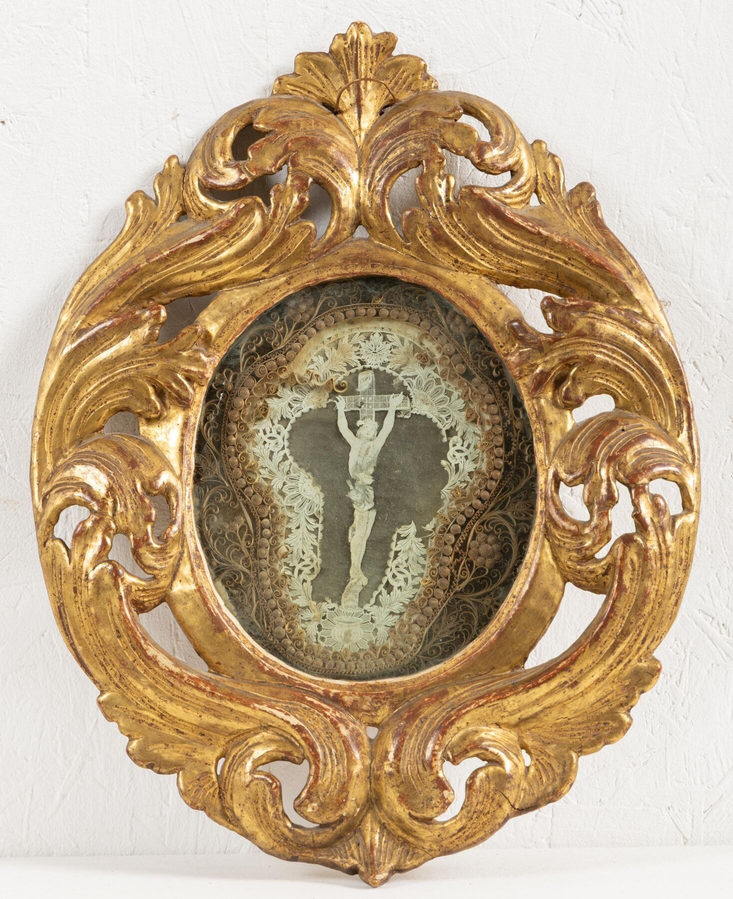 It is presented in a beautiful gilded wood openwork frame of the period.