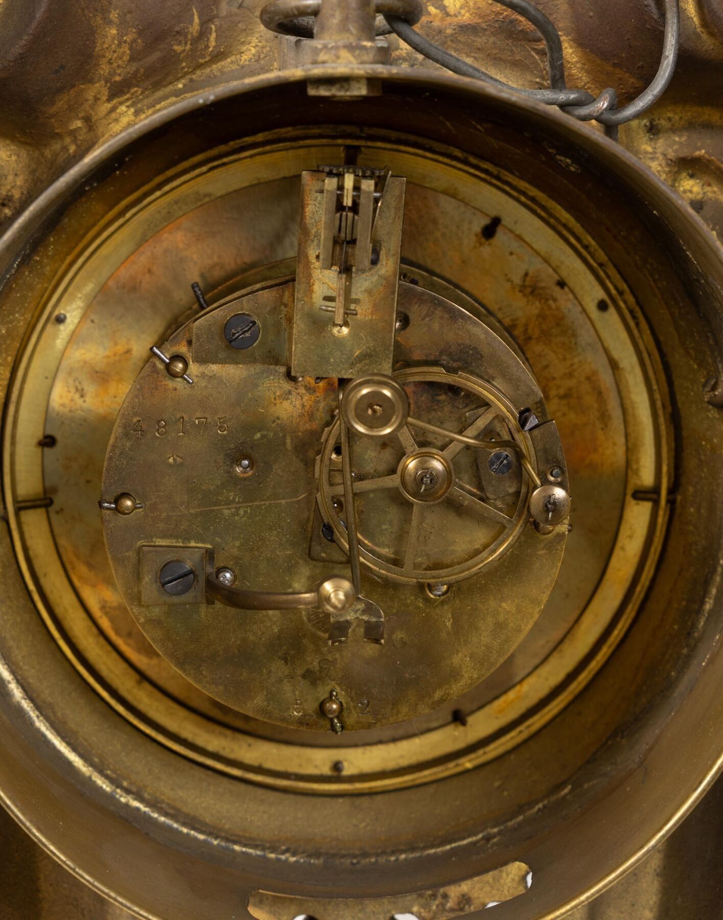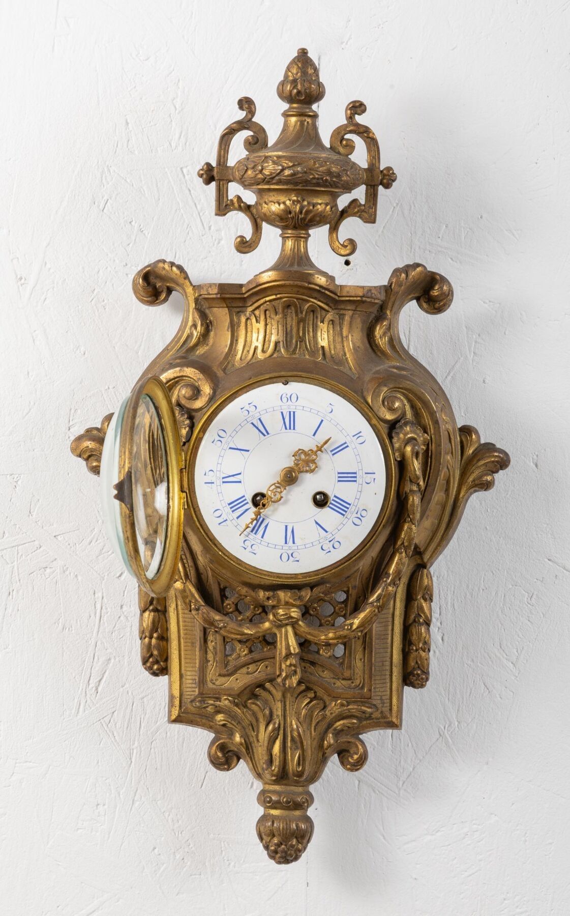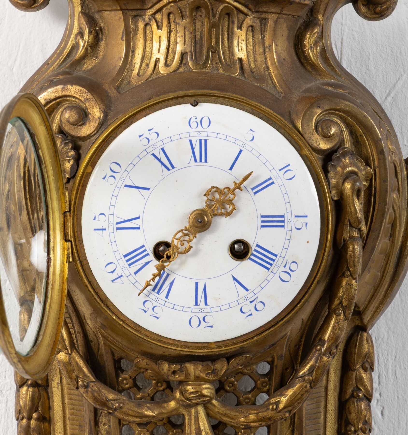Gilt bronze wall clock with carved decoration of garlands of flowers.