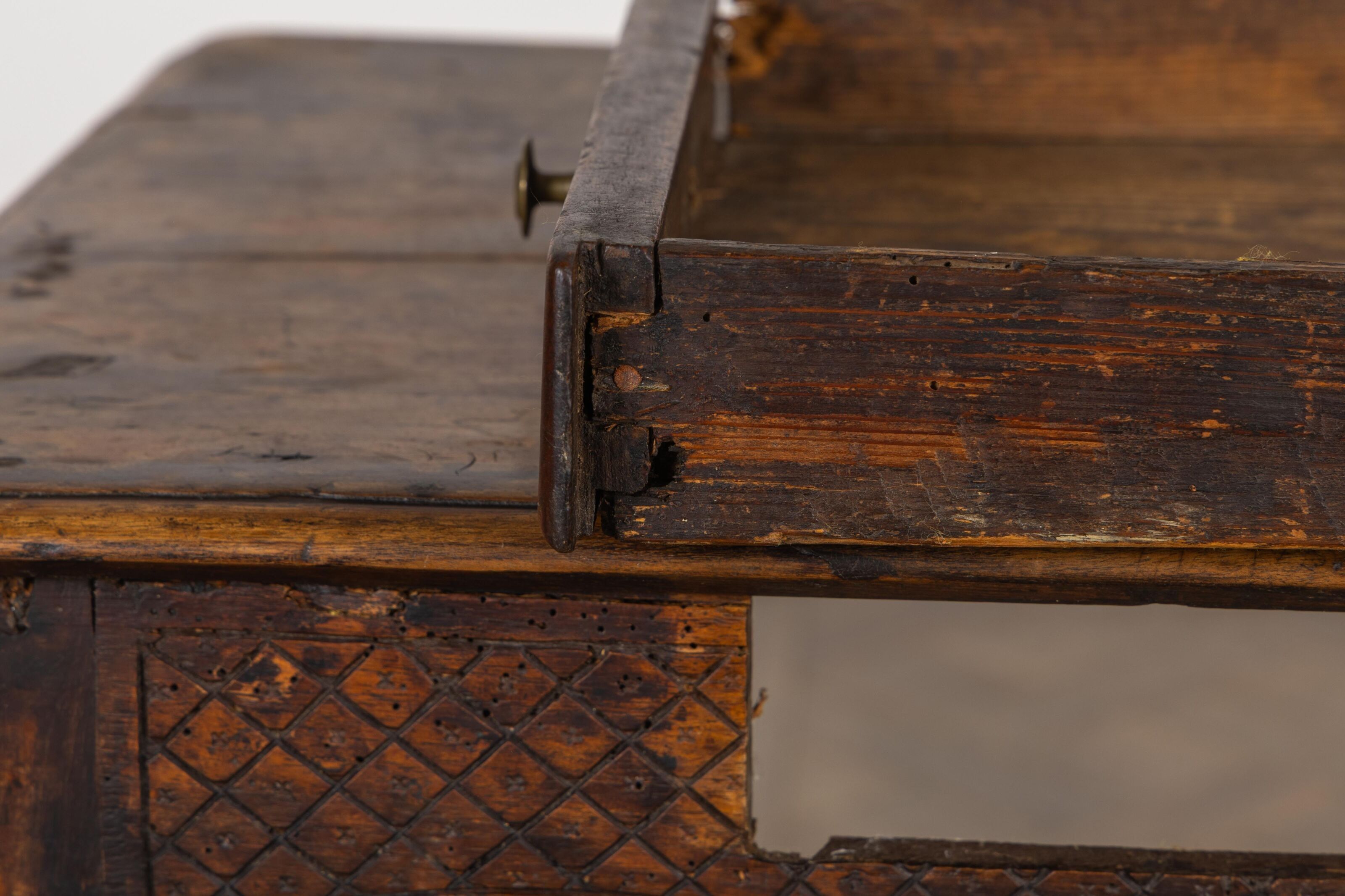 Small writing table in moulded and carved then stained wood,…