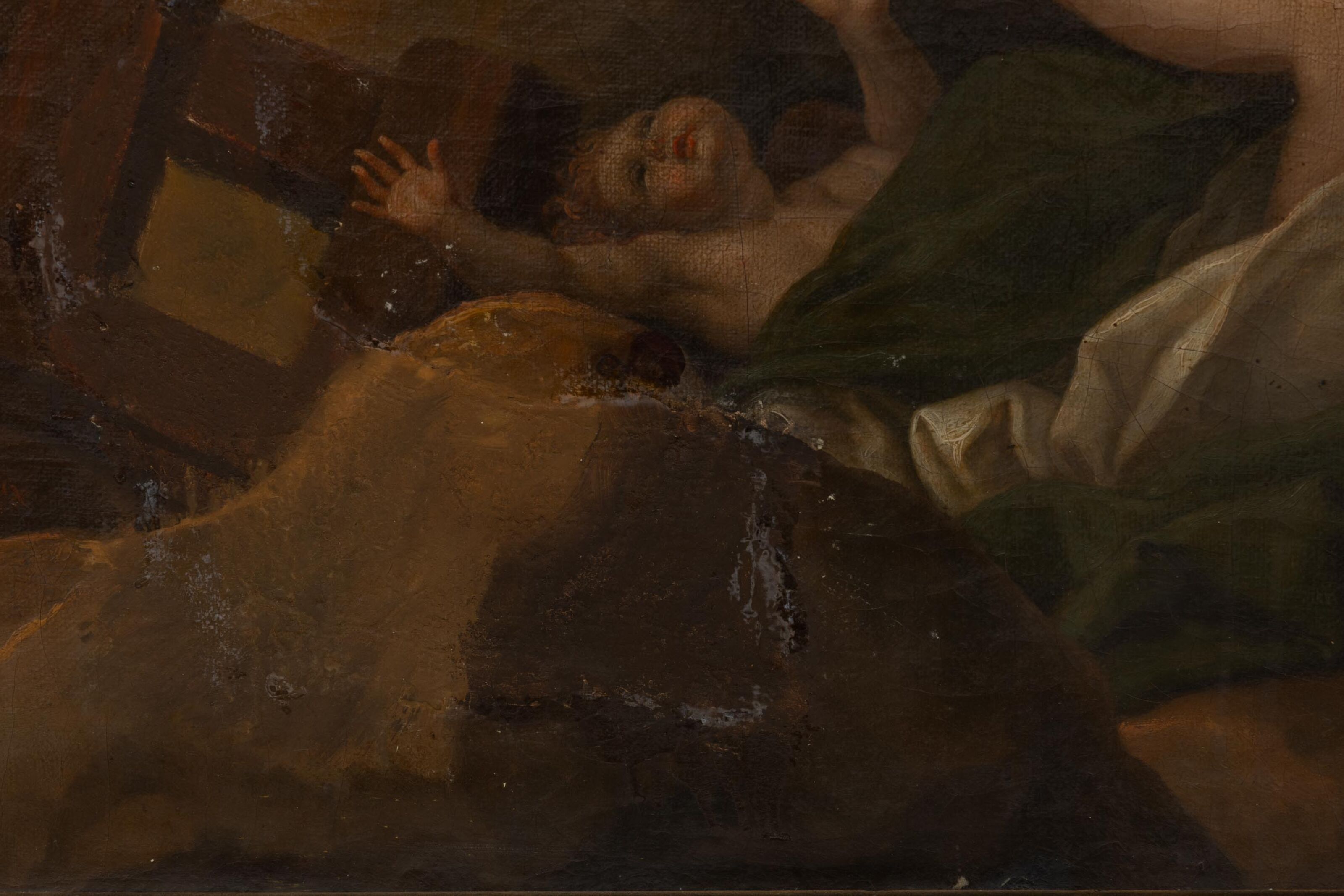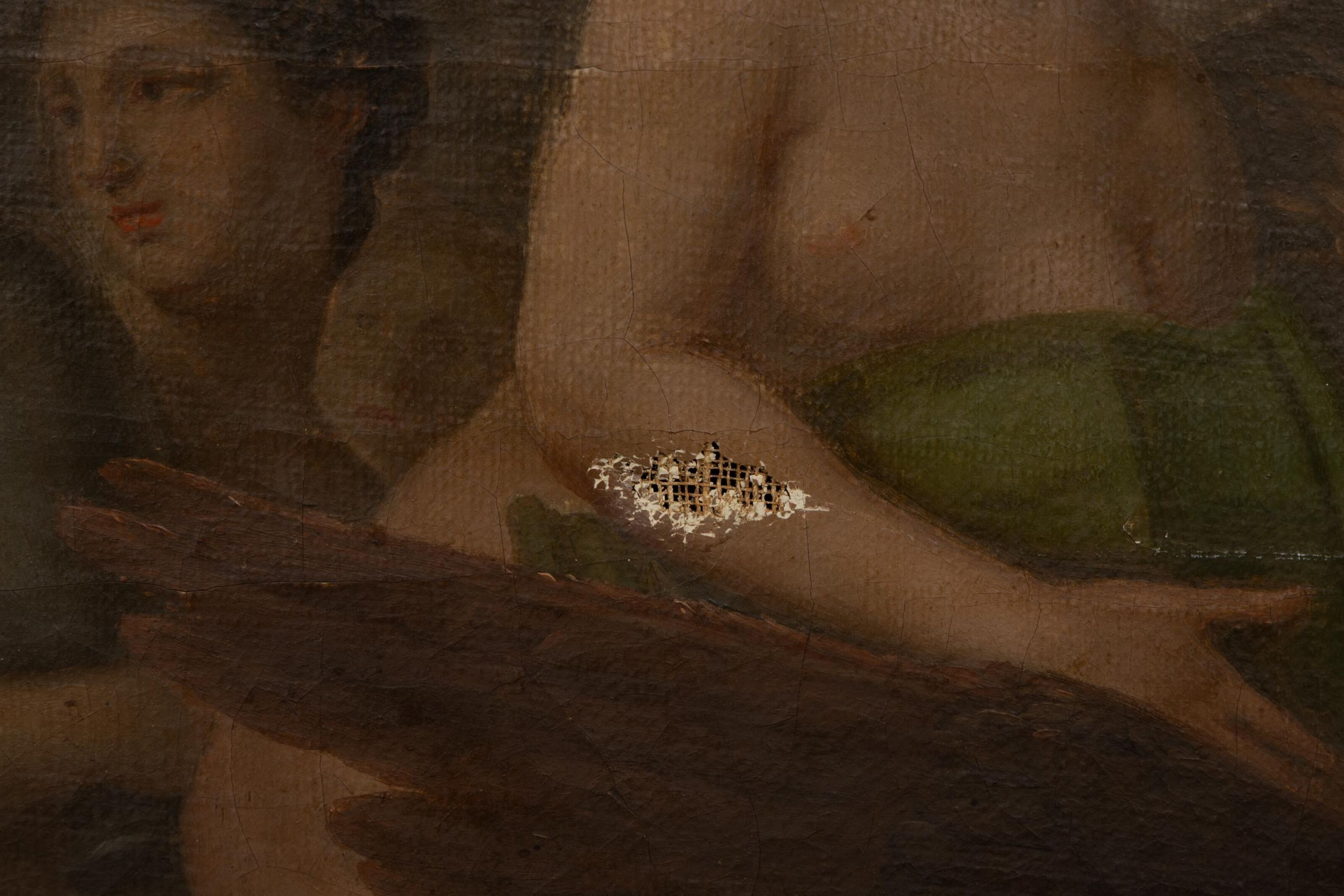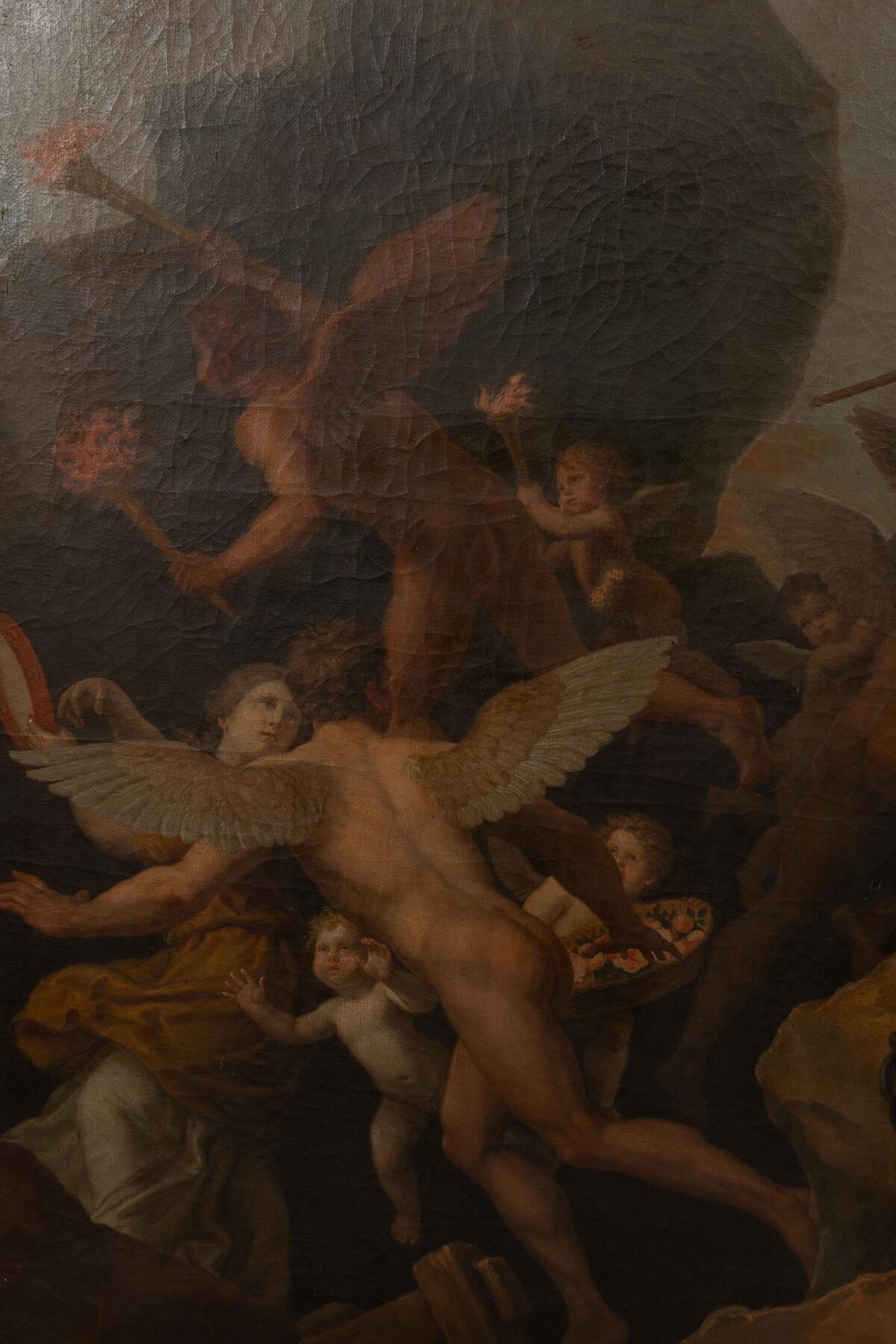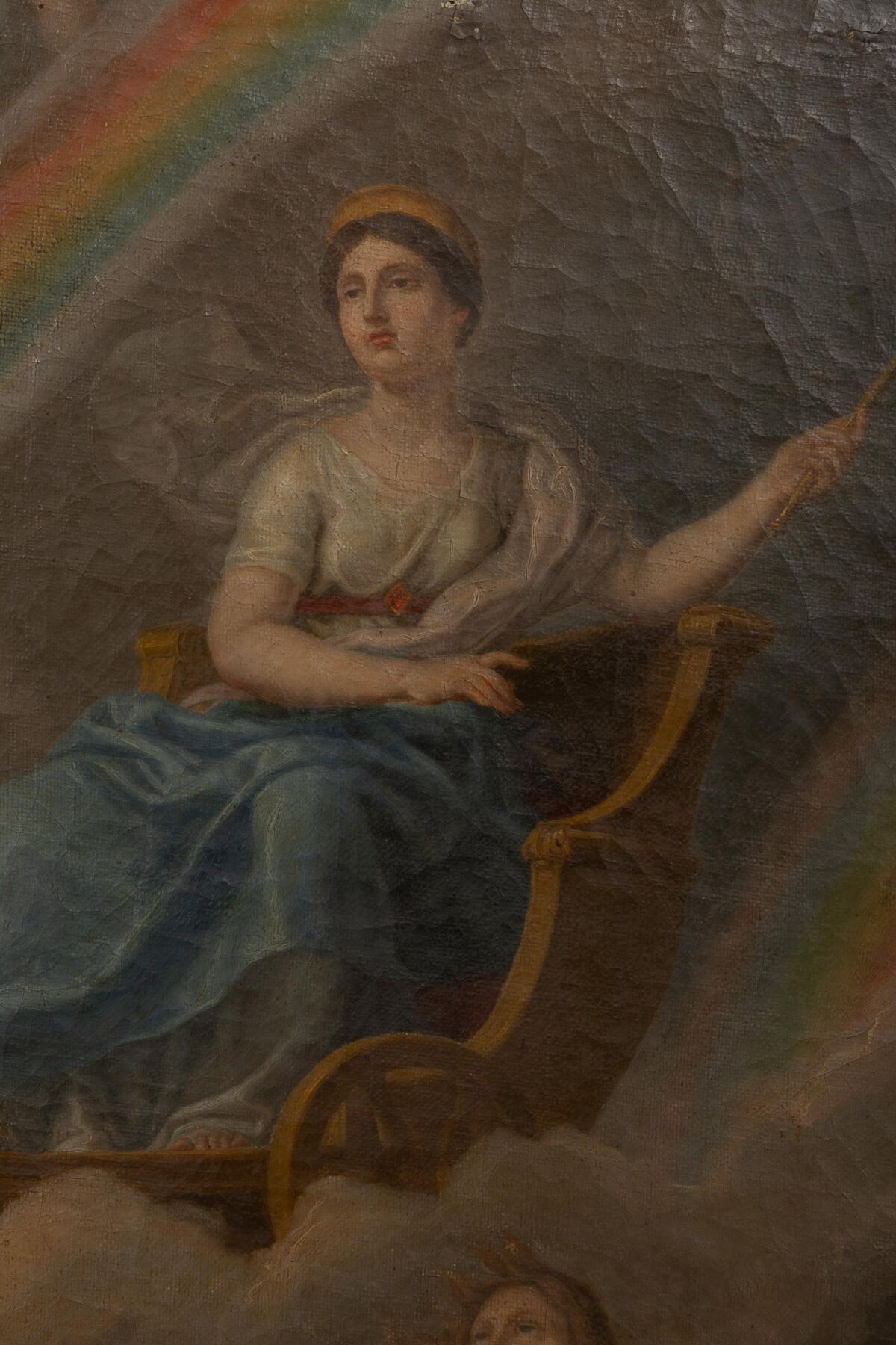 Laurent PÉCHEUX (1729-1821). The Air. Juno asks Aeolus to stir up the winds against Aeneas' fleet and stir up a storm. Large oil on canvas, signed lower middle. H_126 cm L_184,5 cm, accidents, old restorations Painted by Pécheux in 1804, our painting illustrating the air is part of a series devoted to the elements, the four works having so far been listed in an extensive bibliography. Provenance: Collection of Benedetto Pécheux, son of the artist, Paris, in 1808. Acquired by the current owner in the 1970s.