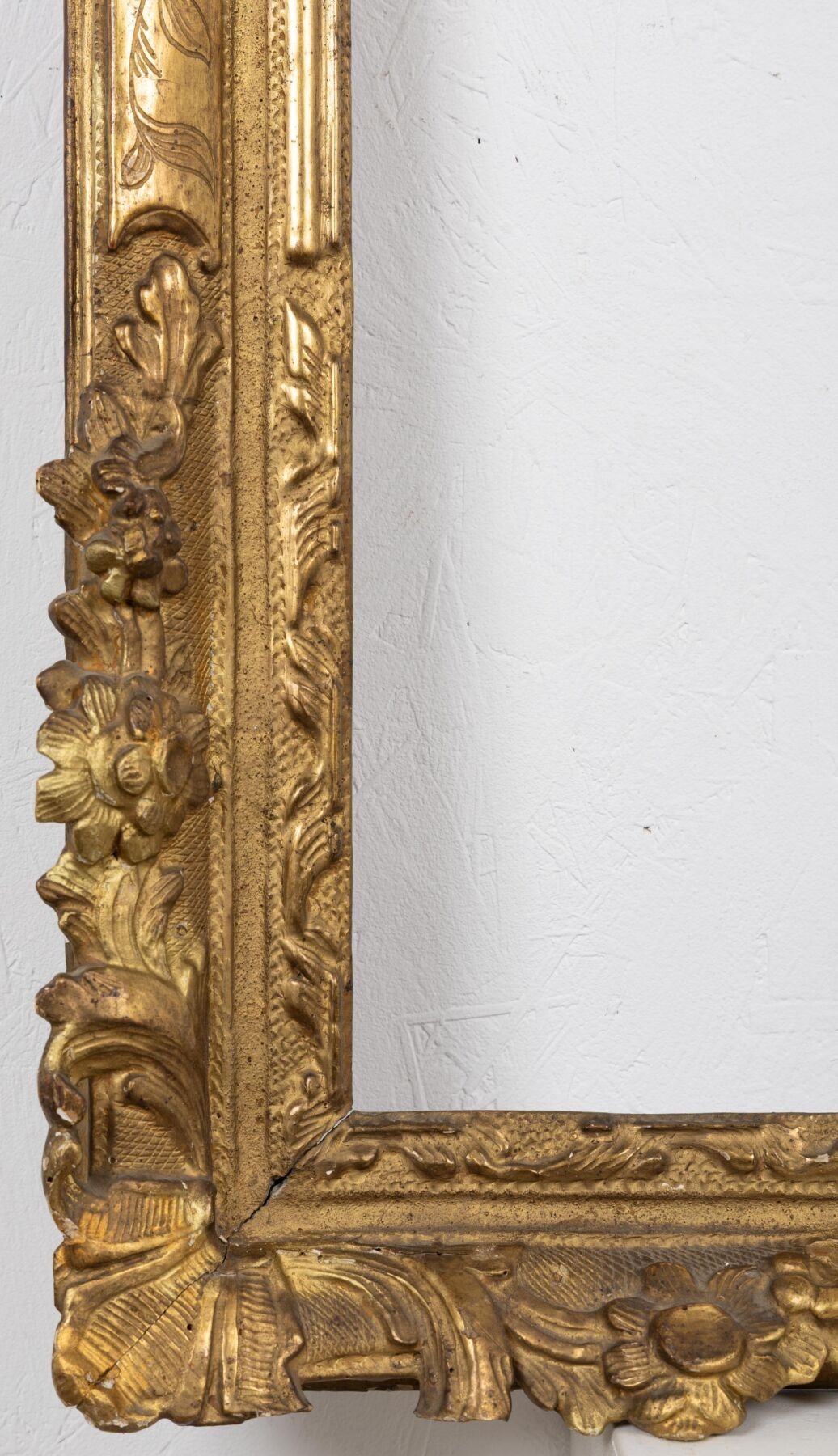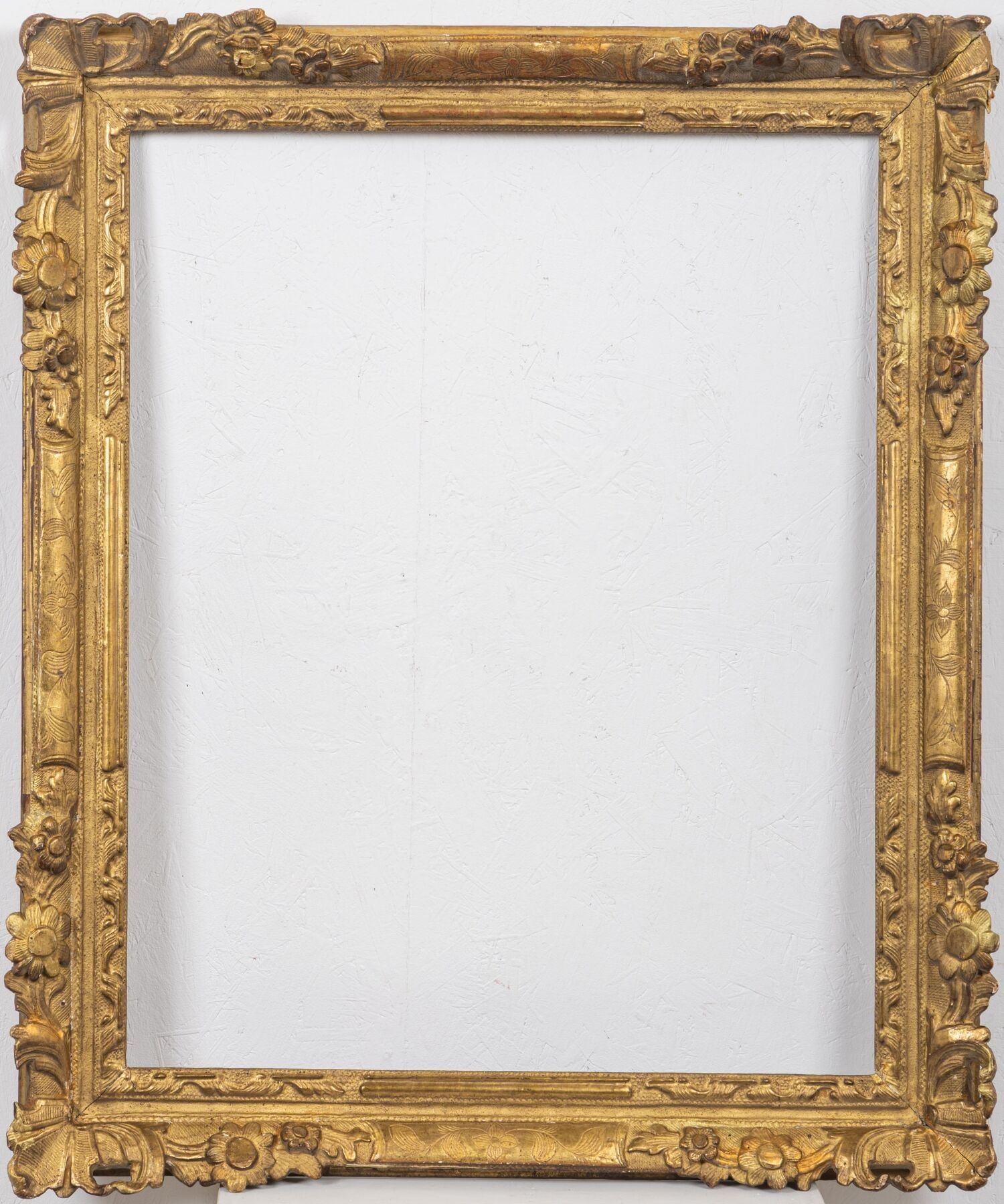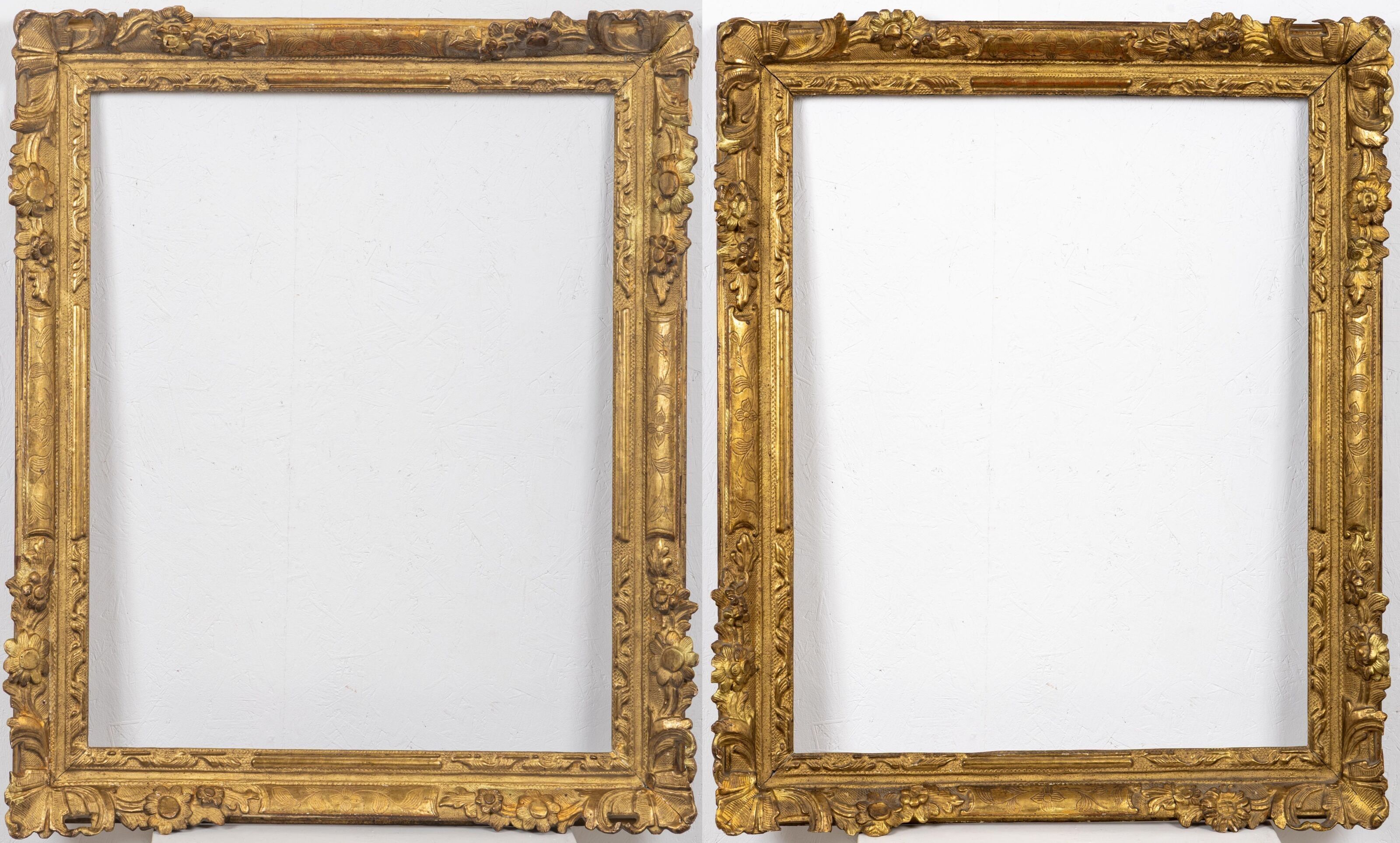 A pair of carved and giltwood frames decorated with flowers and spandrels. 18th century period. H_98 cm W_82 cm (outside) H_81,5 cm W_65 cm (inside)