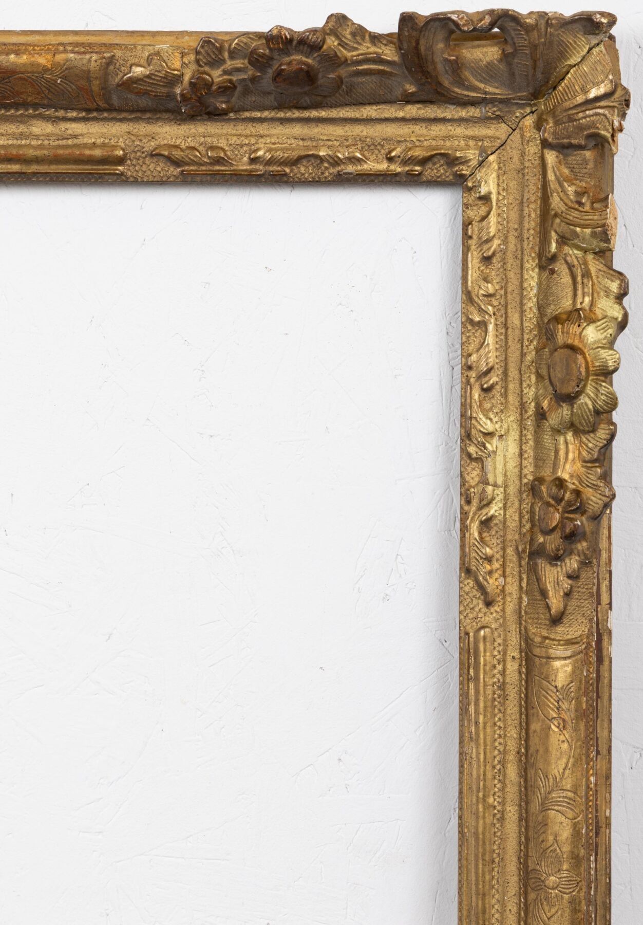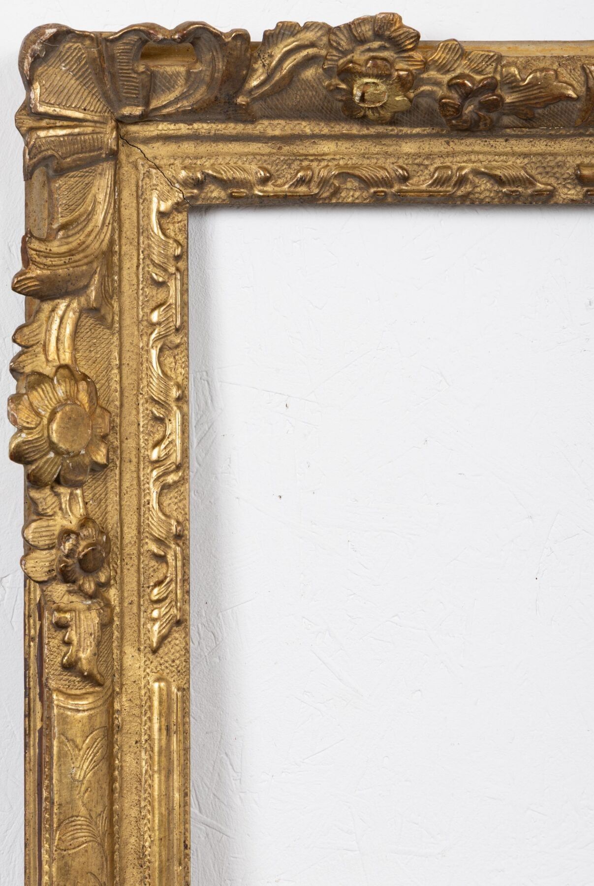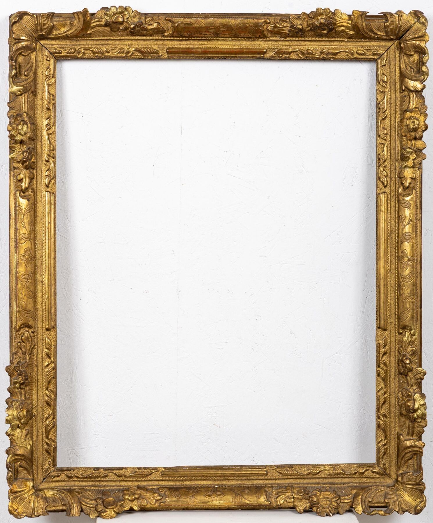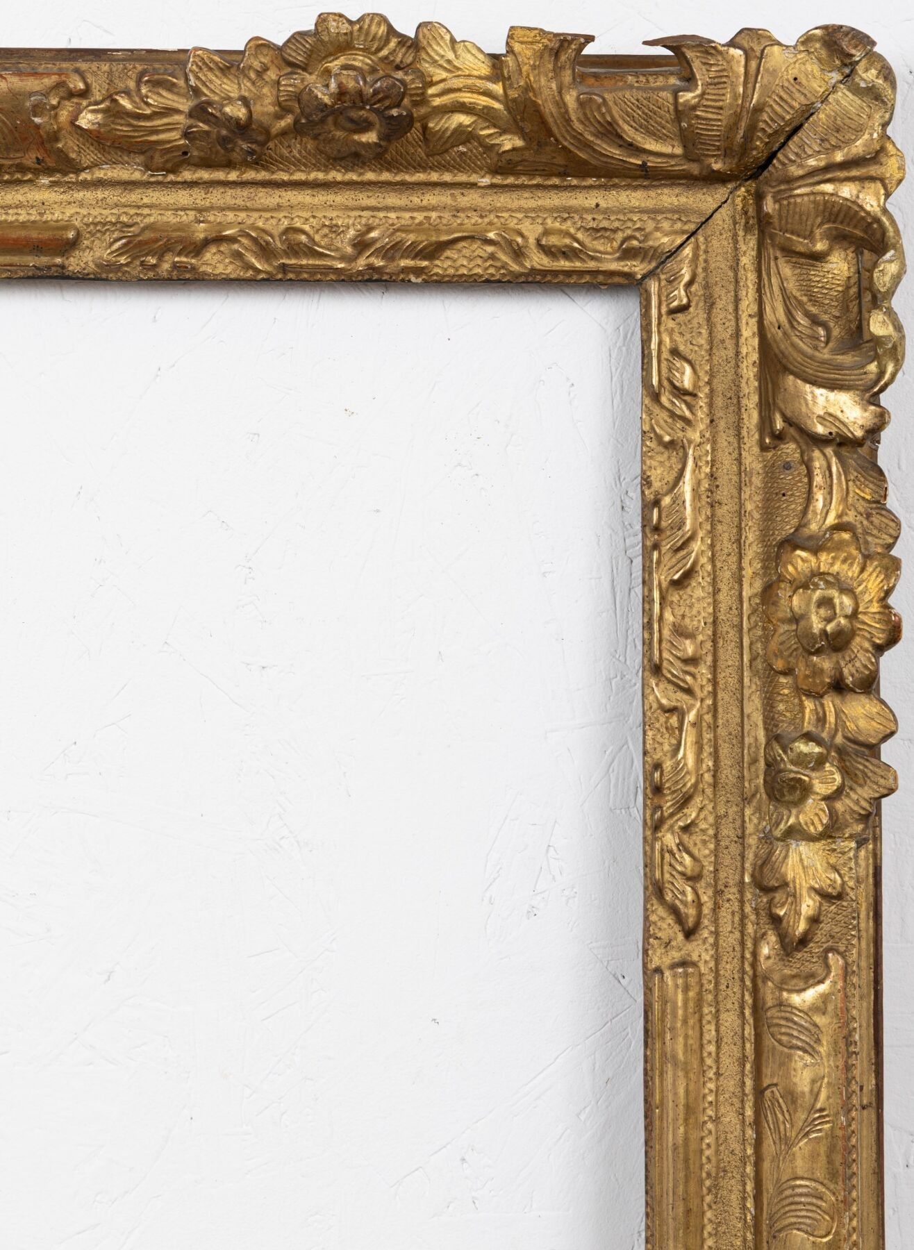 A pair of carved and giltwood frames decorated with flowers and spandrels. 18th century period. H_98 cm W_82 cm (outside) H_81,5 cm W_65 cm (inside)