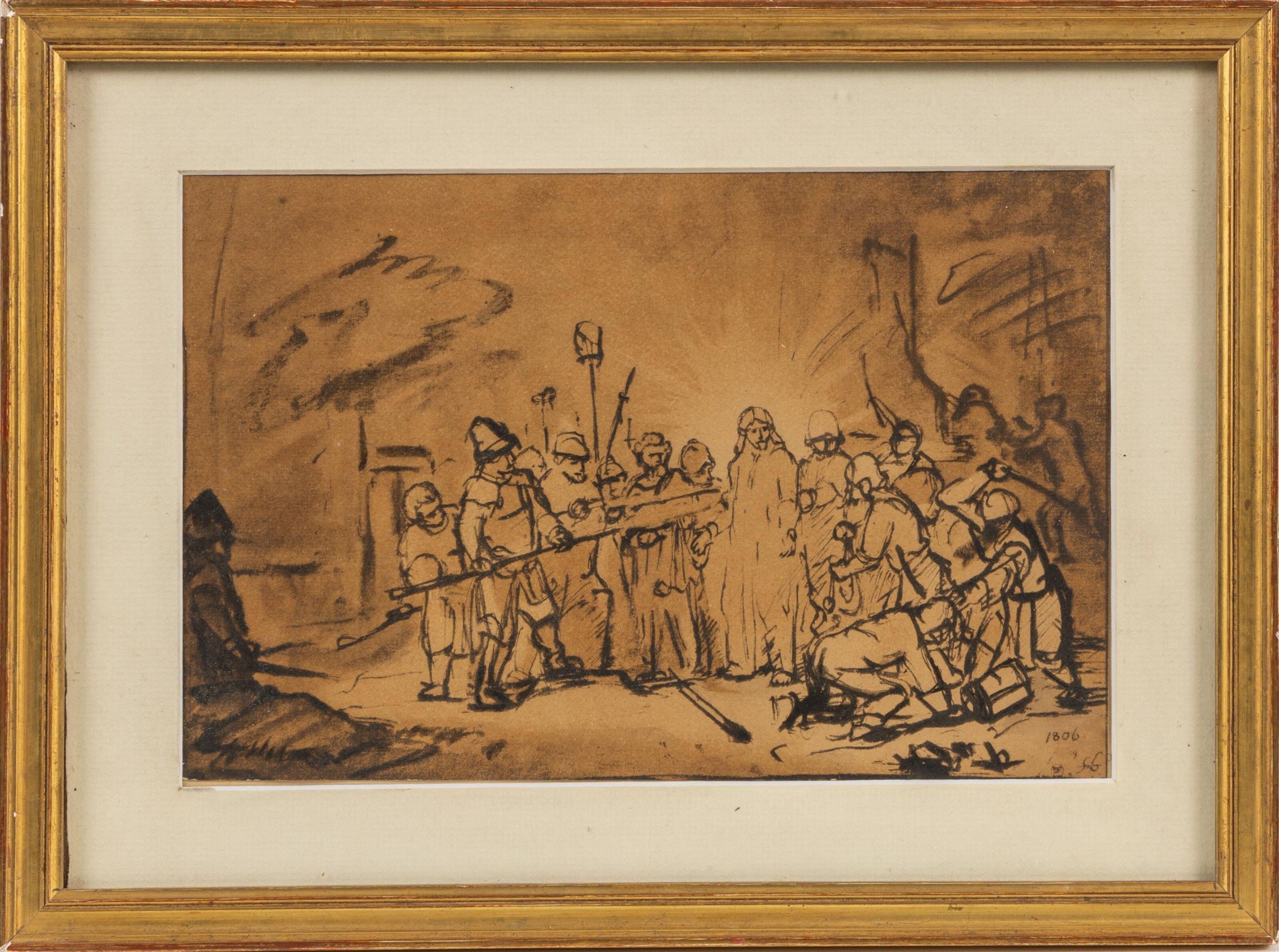 Ink and ink wash on paper, dated 1806 lower right and monogrammed.