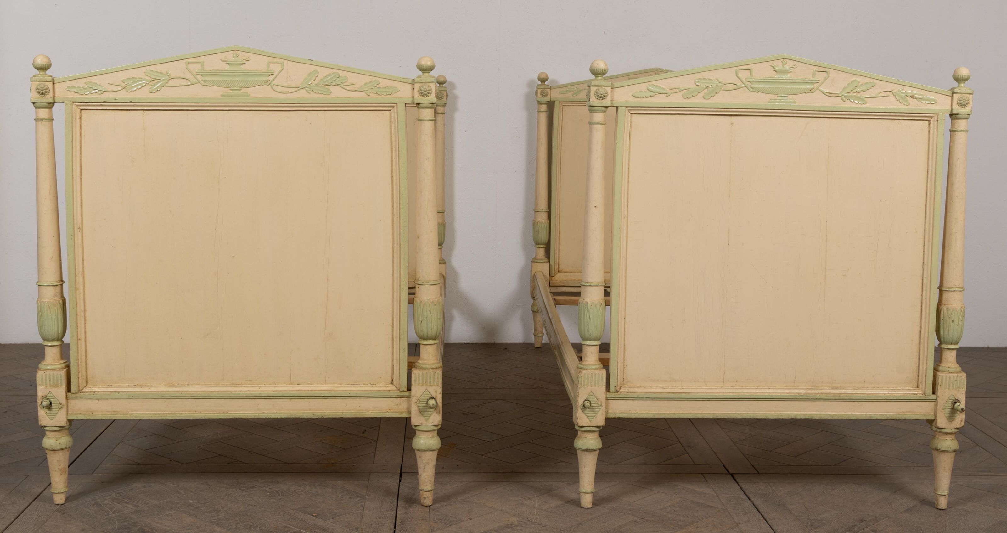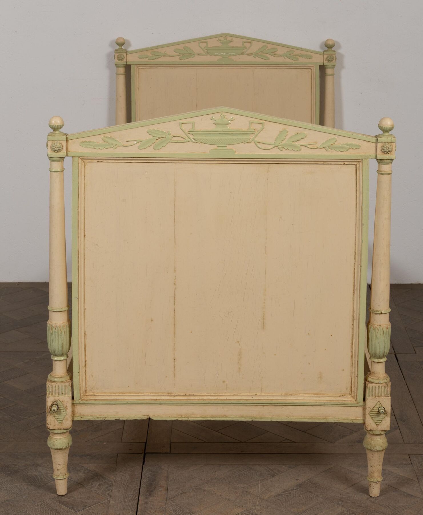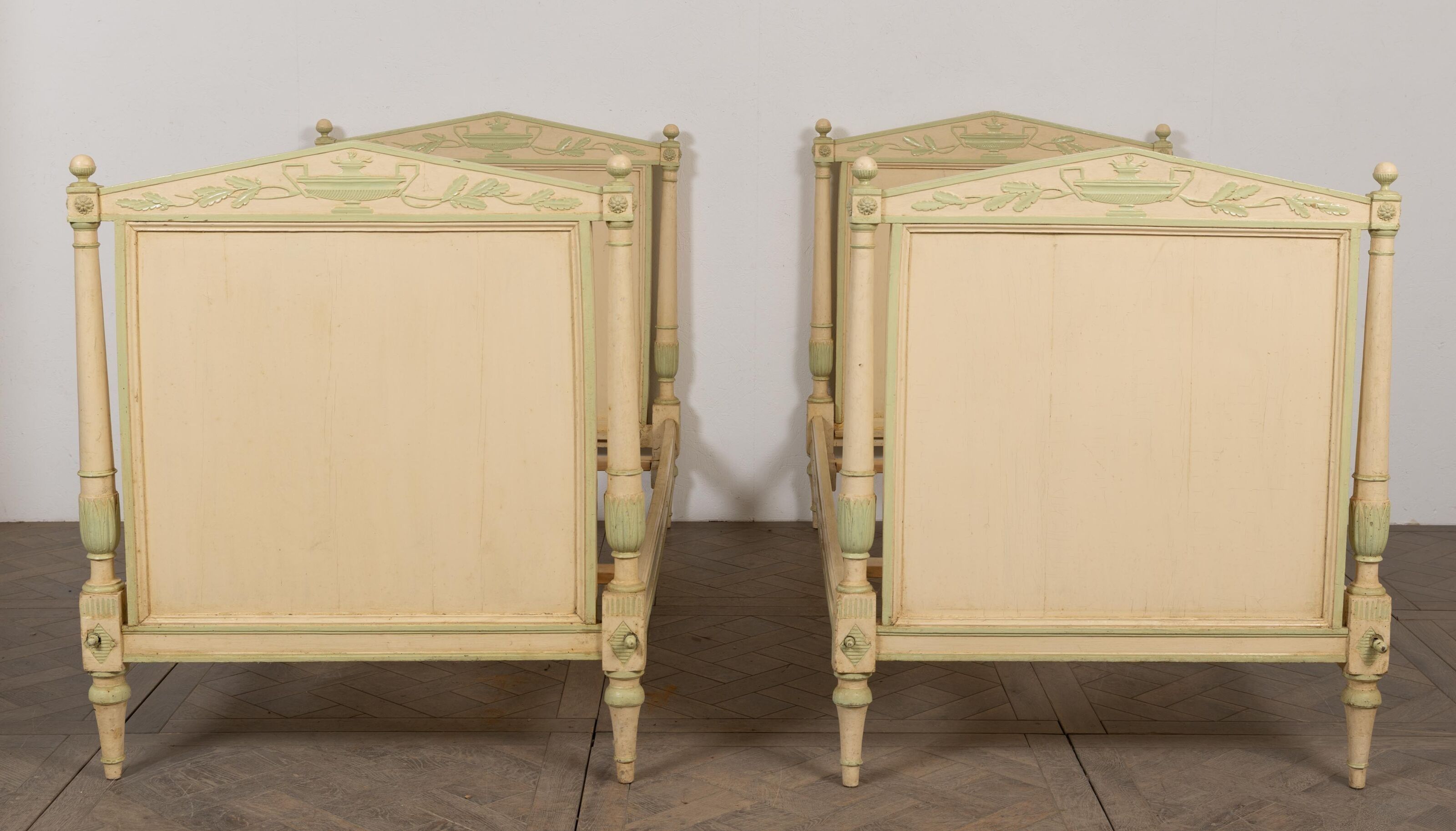 Pair of twin beds in beige lacquered wood and au green rechampi.