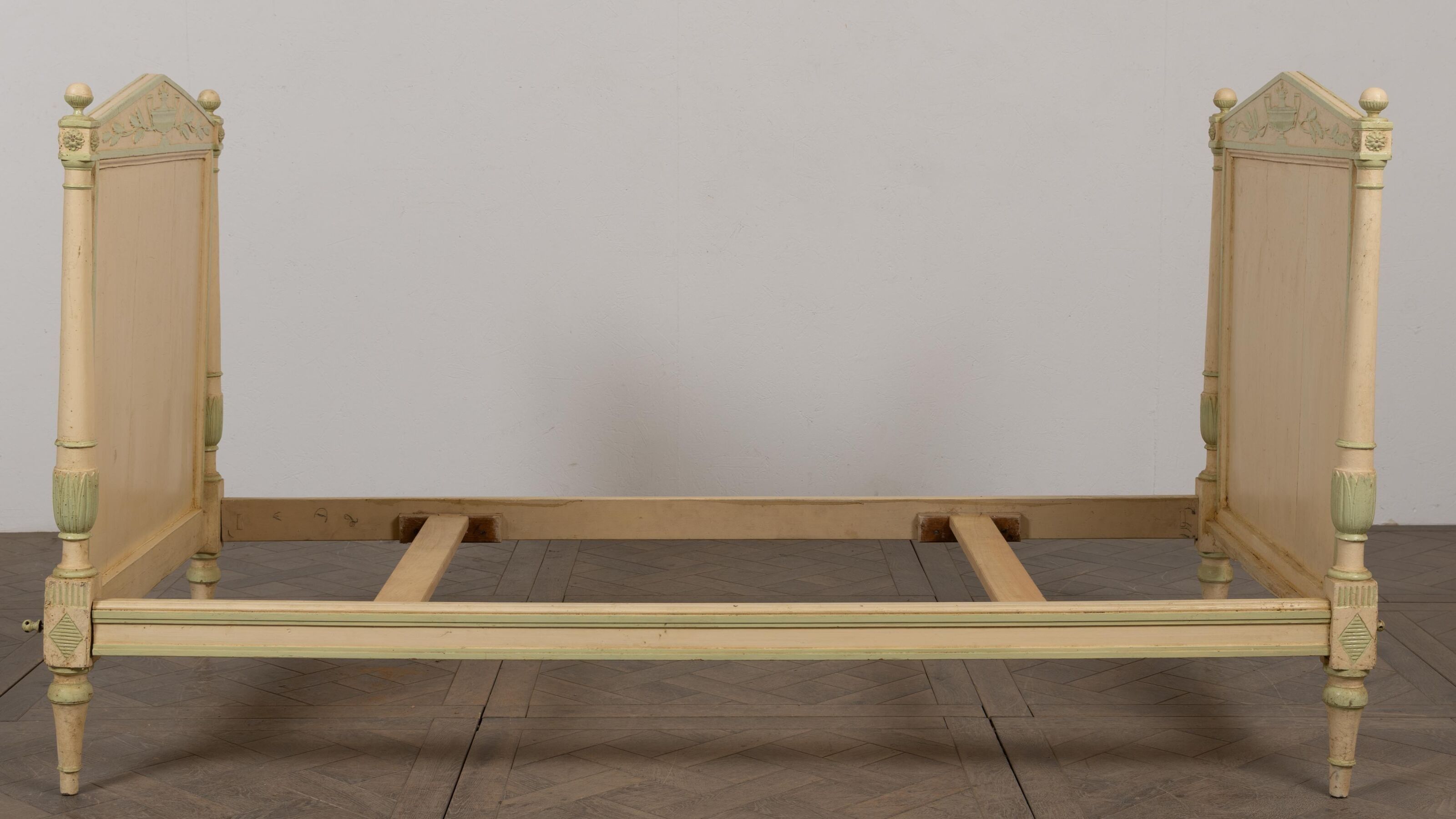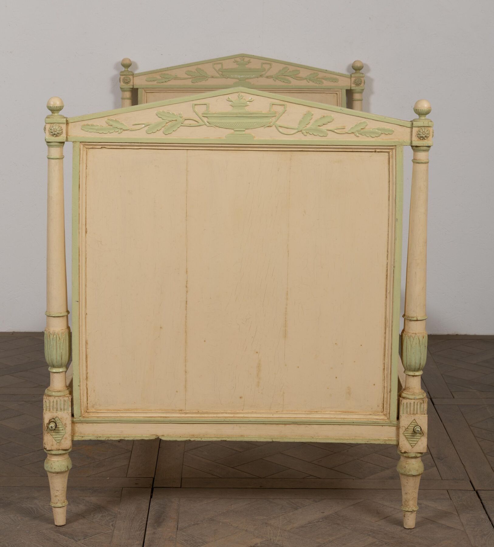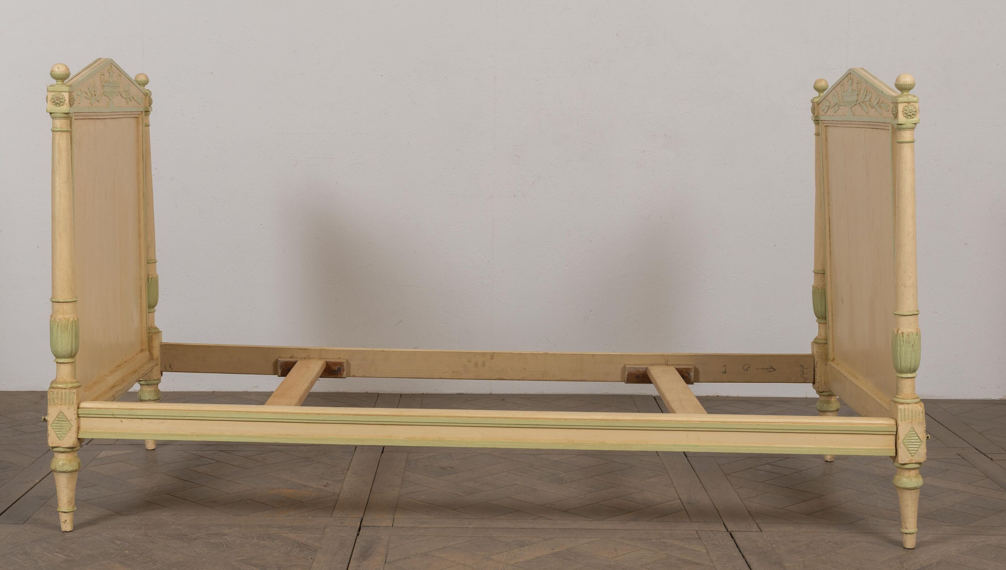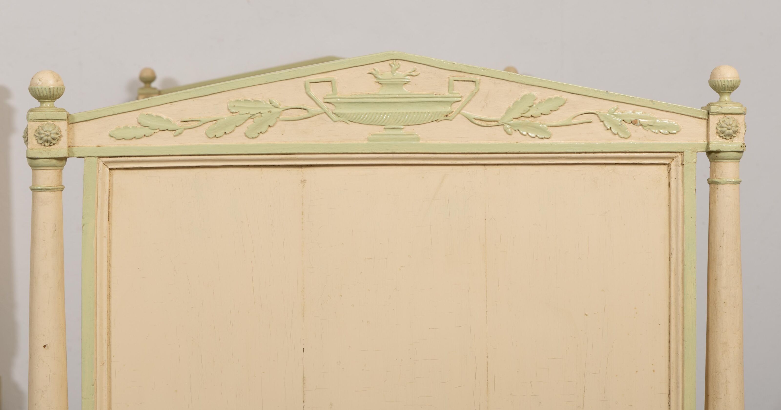 Pair of twin beds in beige lacquered wood and au green rechampi.