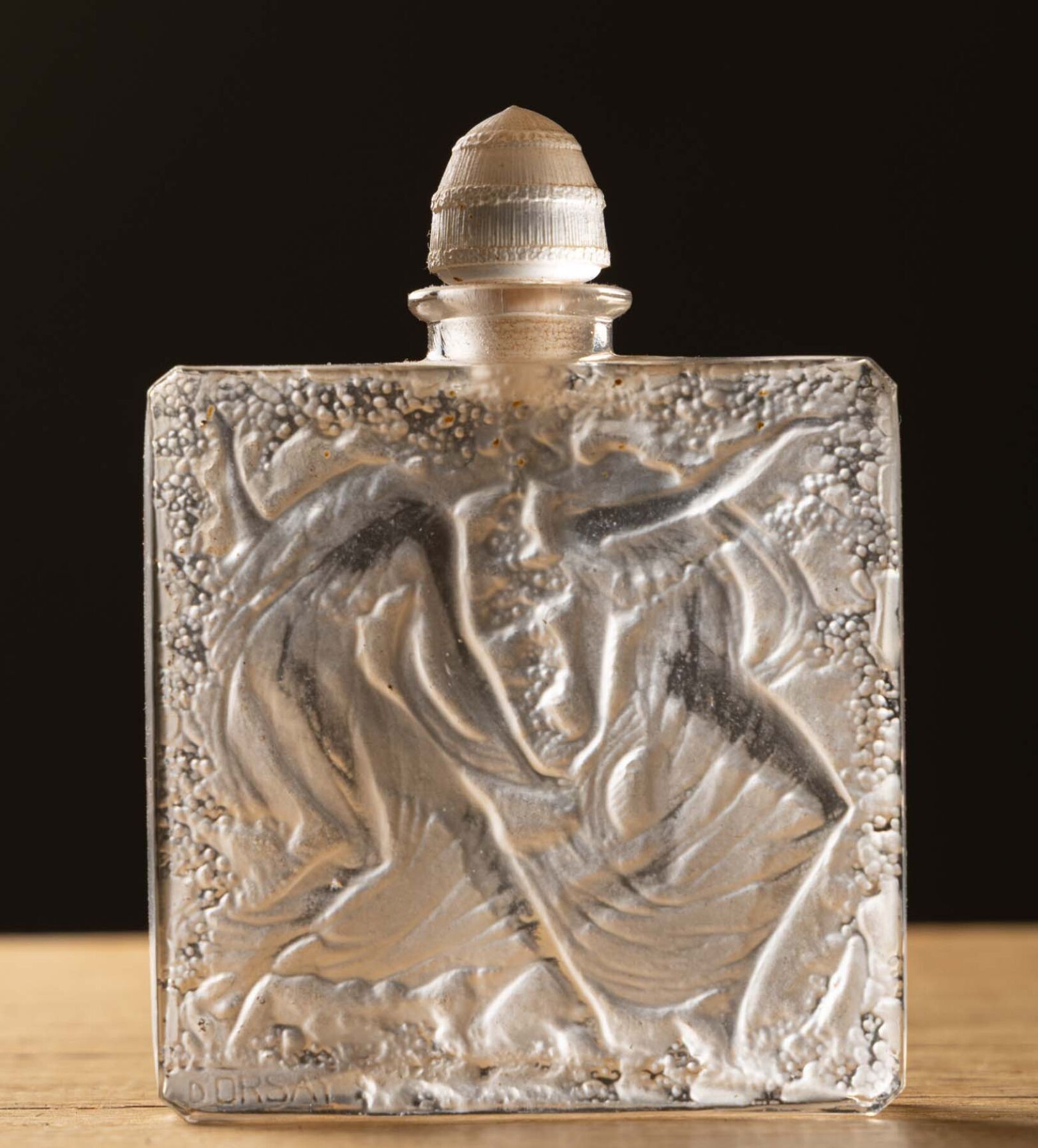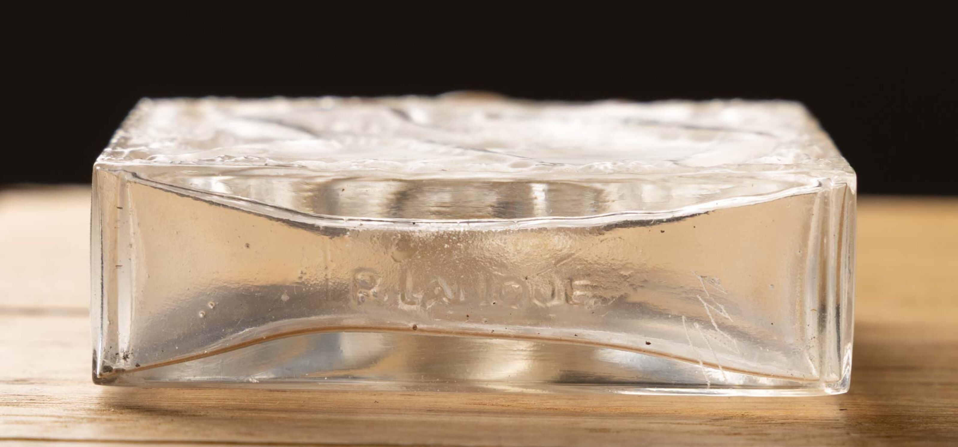 René LALIQUE. L'élégance. Pressed moulded glass perfume bott…
