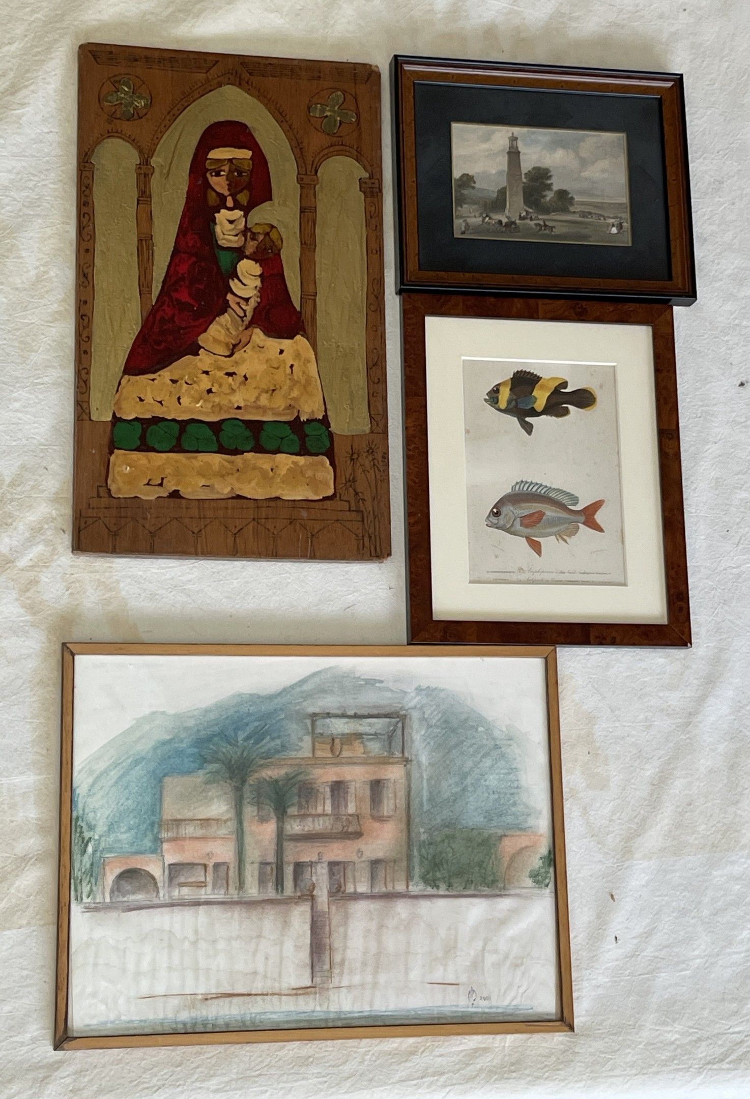 Set of eight framed pieces