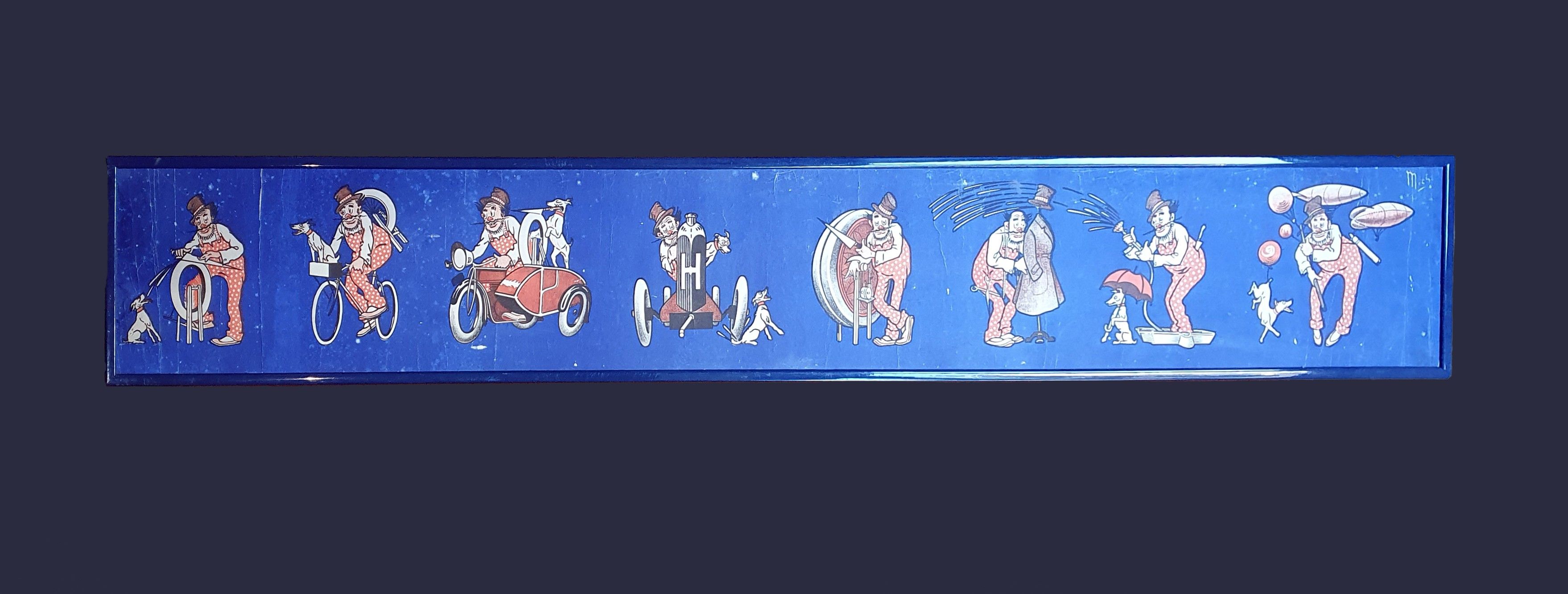 Cardboard advertising banner, monogrammed M. Ch top right in the plate