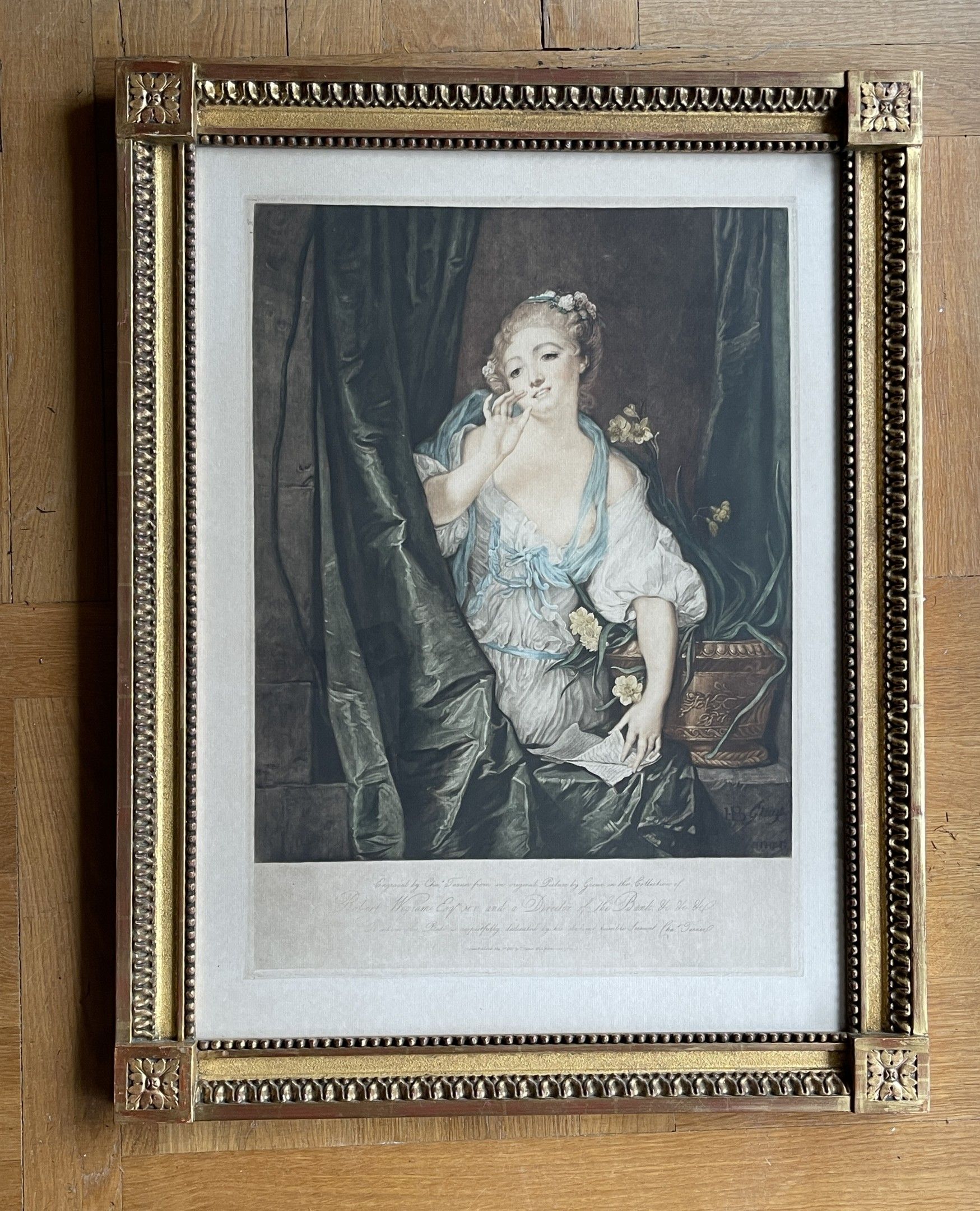 56.5 x 40.5 cm (under glass, gilded wood frame in the Louis XVI style)