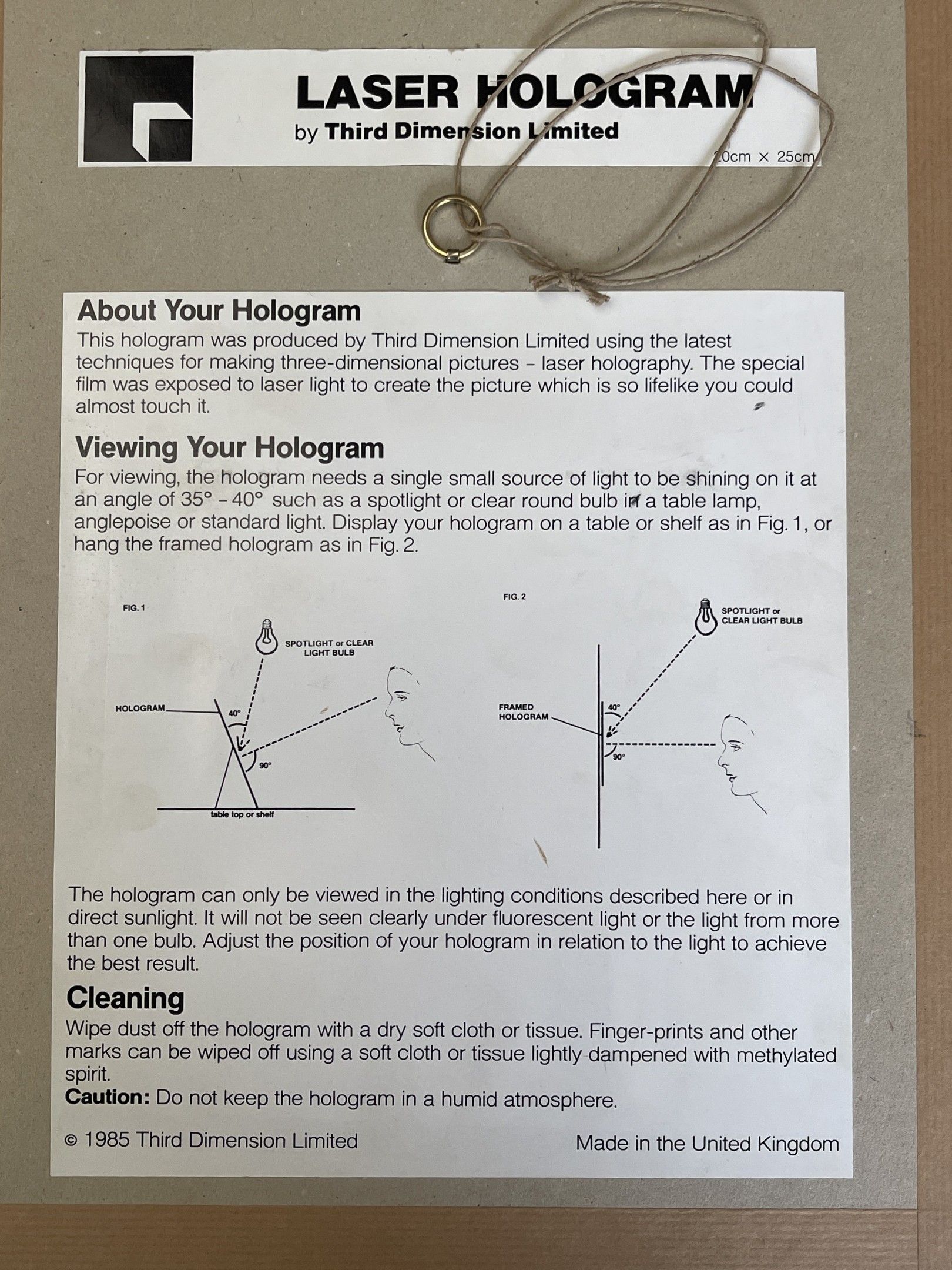 Laser Hologram England, 1985 20 x 25 cm (under Plexiglas)