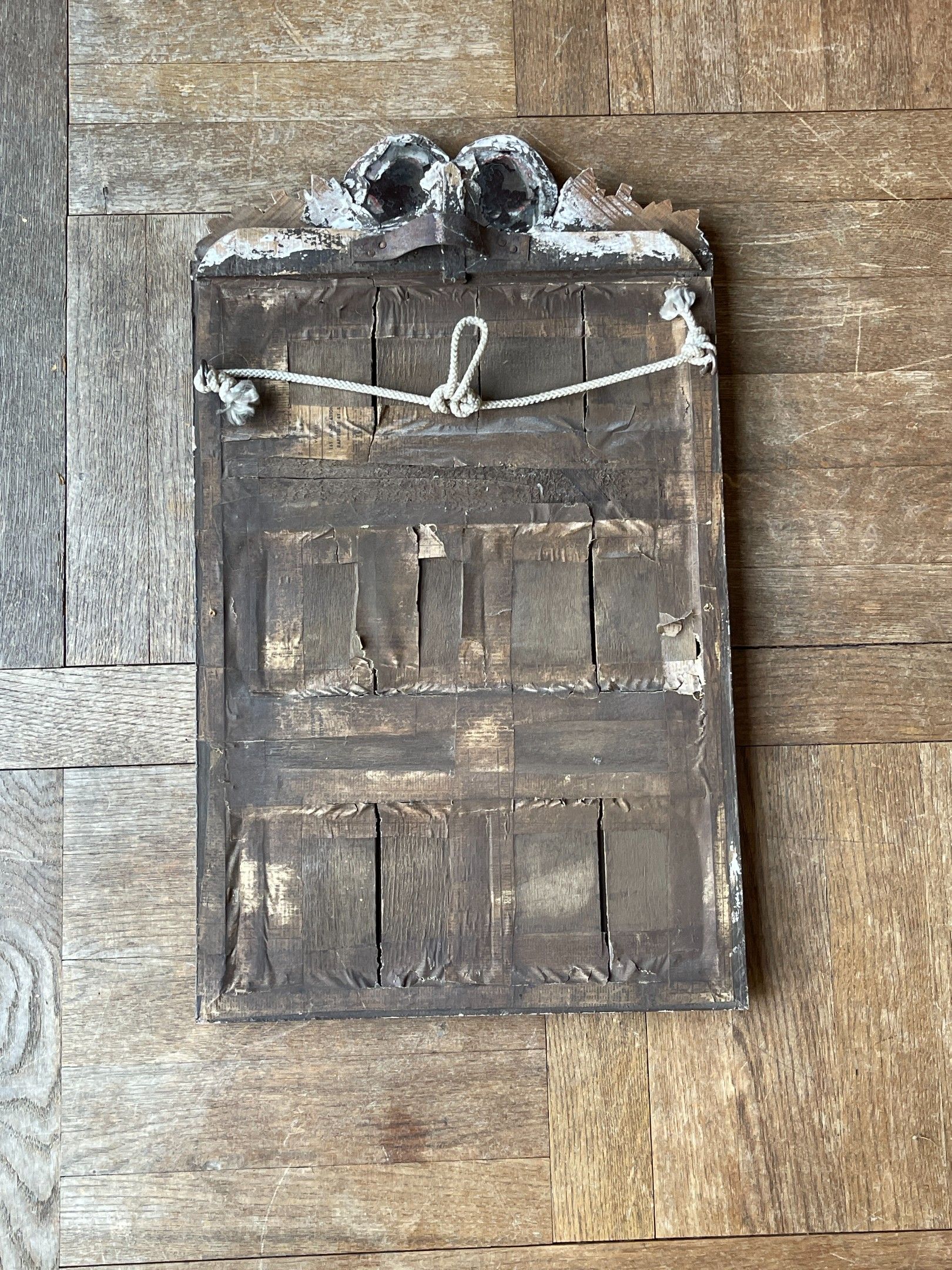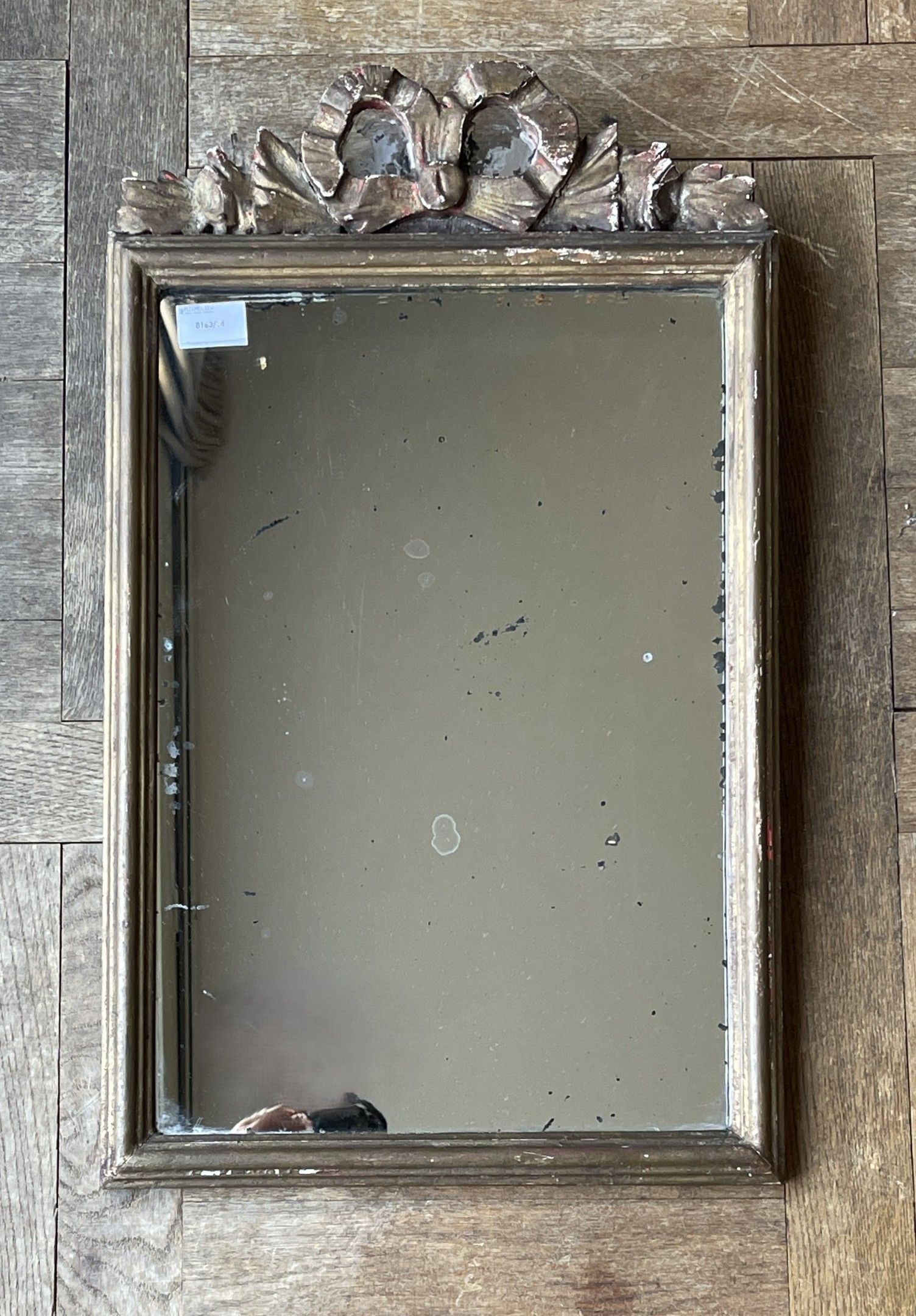 Small rectangular giltwood mirror with pediment decorated with knotted ribbons and foliage