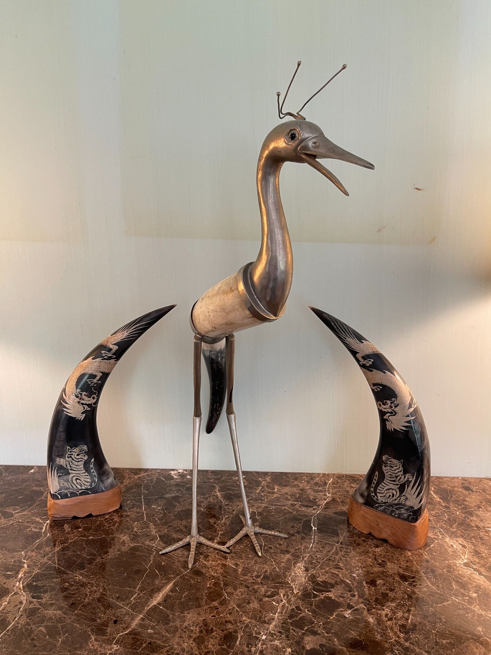 Stilt-walker, metal and horn, circa 1970 (H 58 cm)