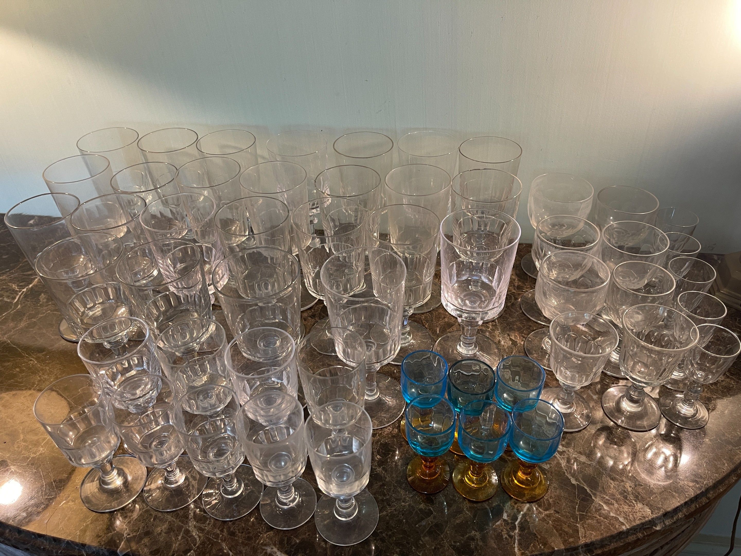 and miscellaneous including six liqueur glasses in yellow and blue glass