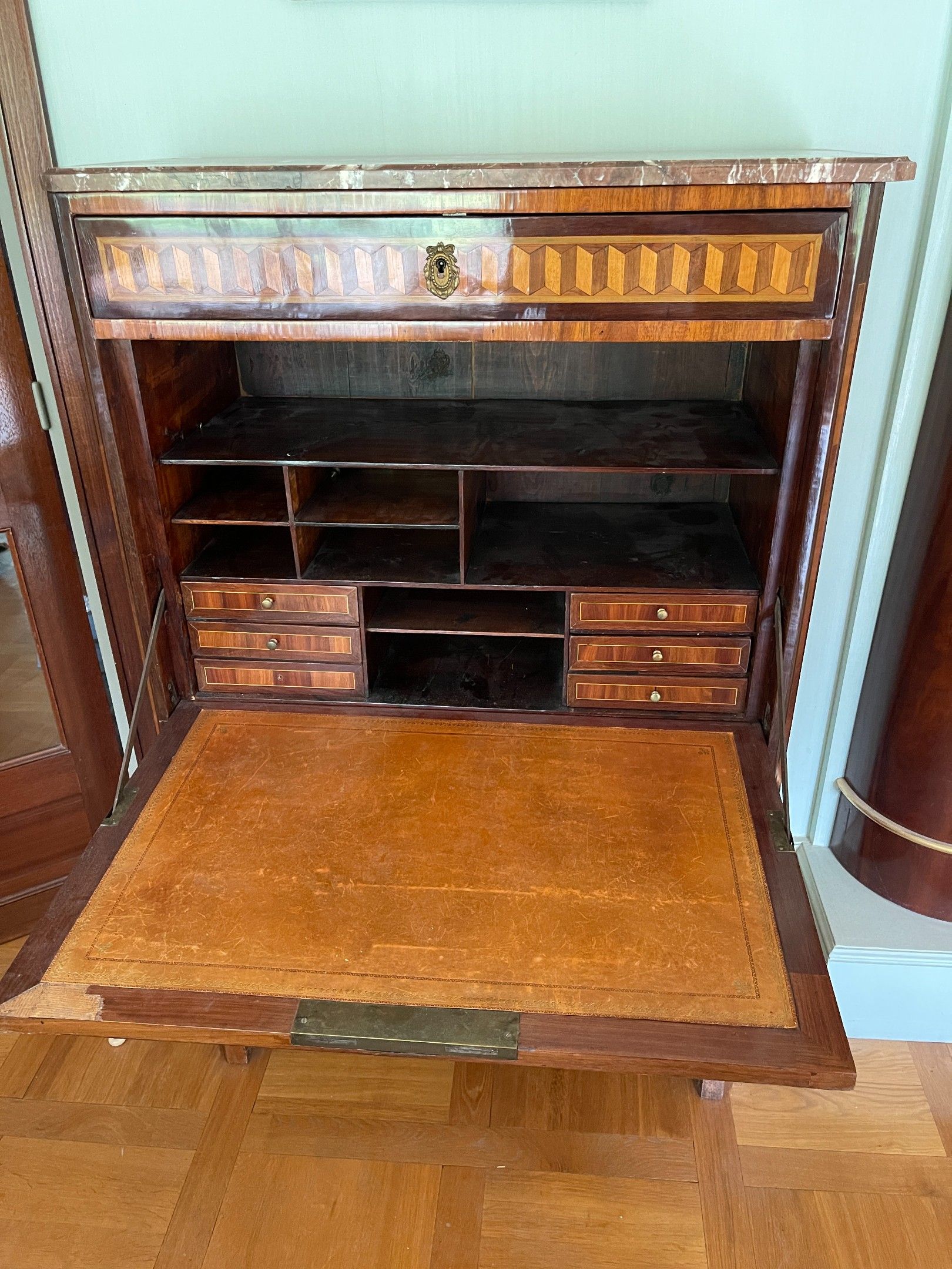 Restored marble top, bronze lock escutcheons, the locks do not work, accidents and lifting.