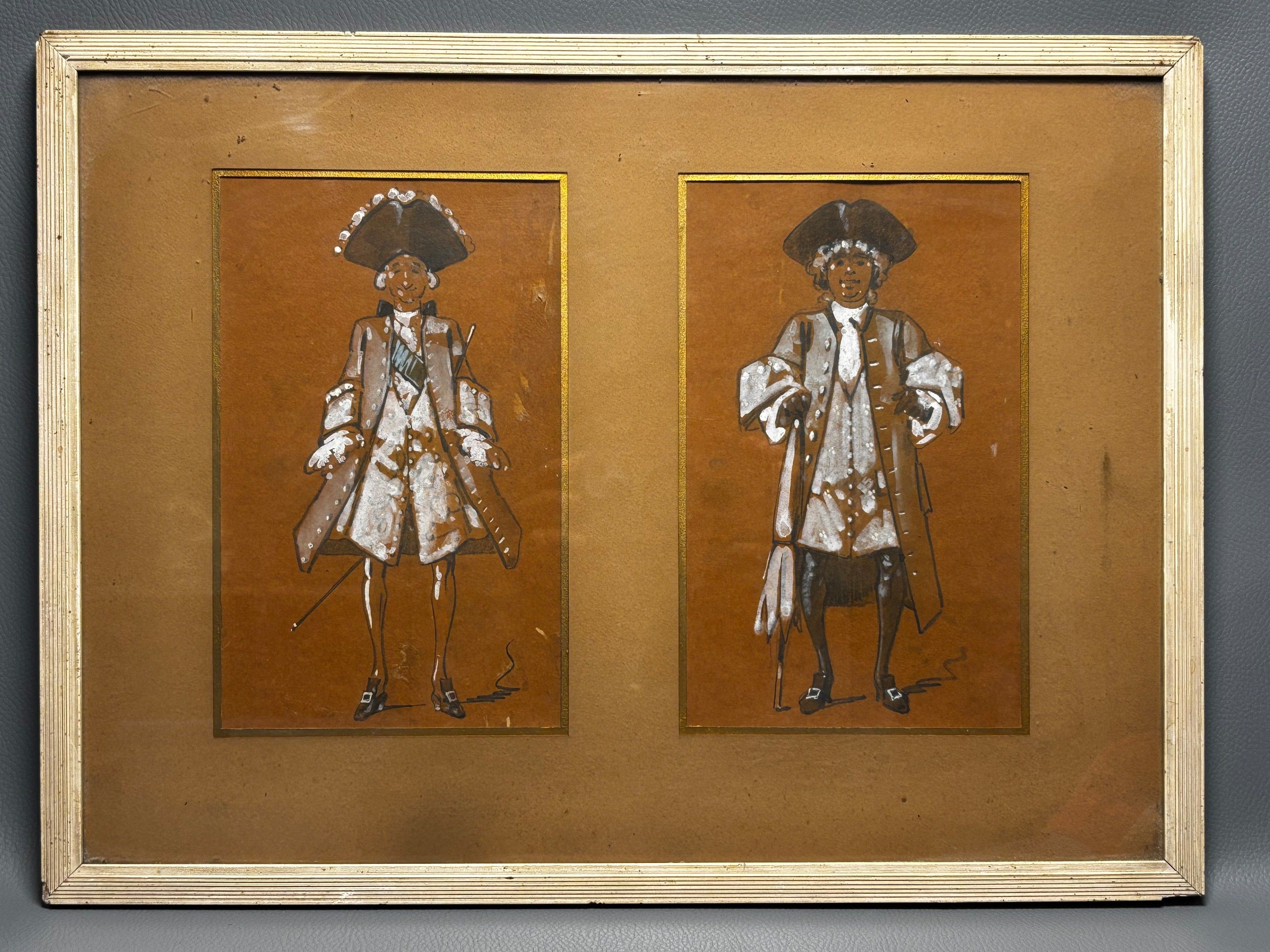 TWO GENTLEMEN Two pencil drawings with white highlights; in …