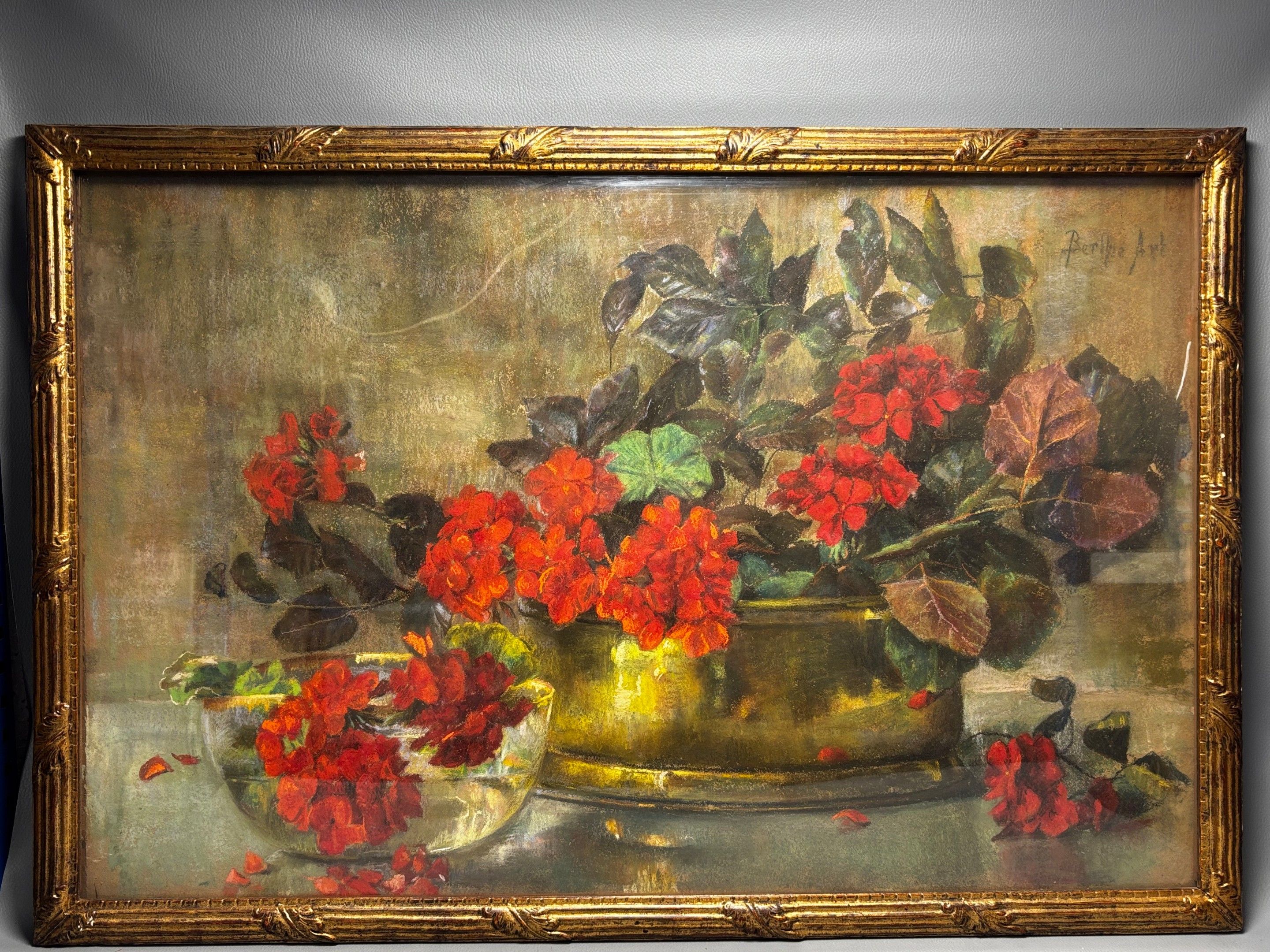 ART Berthe (1857-1934) Flowers in a Copper Basin and Cup