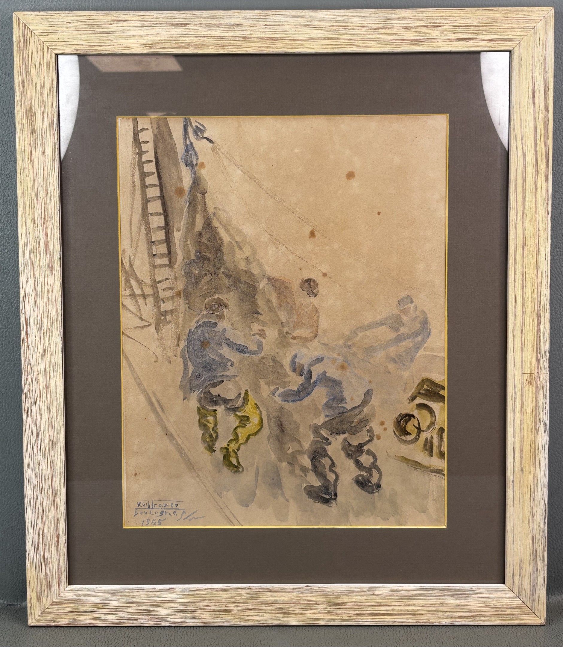 Watercolour, signed, dated 1955 and situated in Boulogne sur Mer