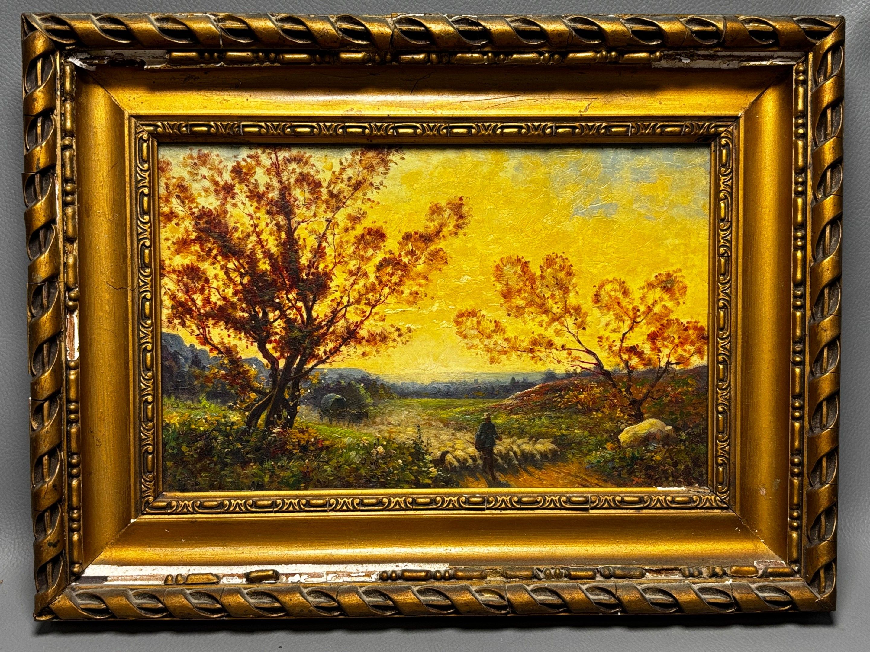 HINGRE Léon (1860-1926) Landscape with herd and caravan
